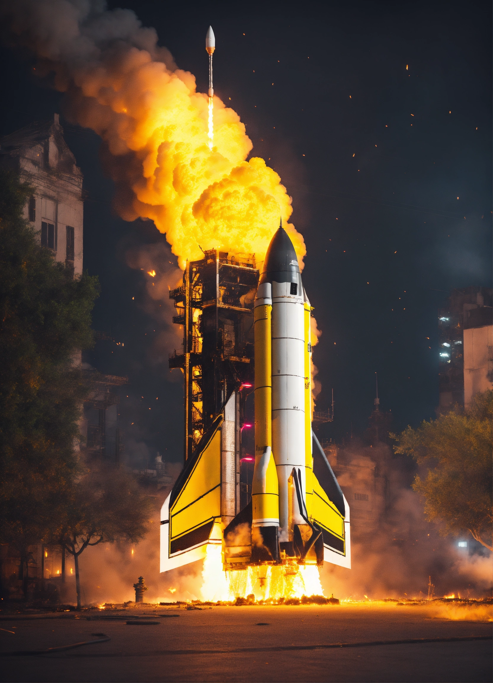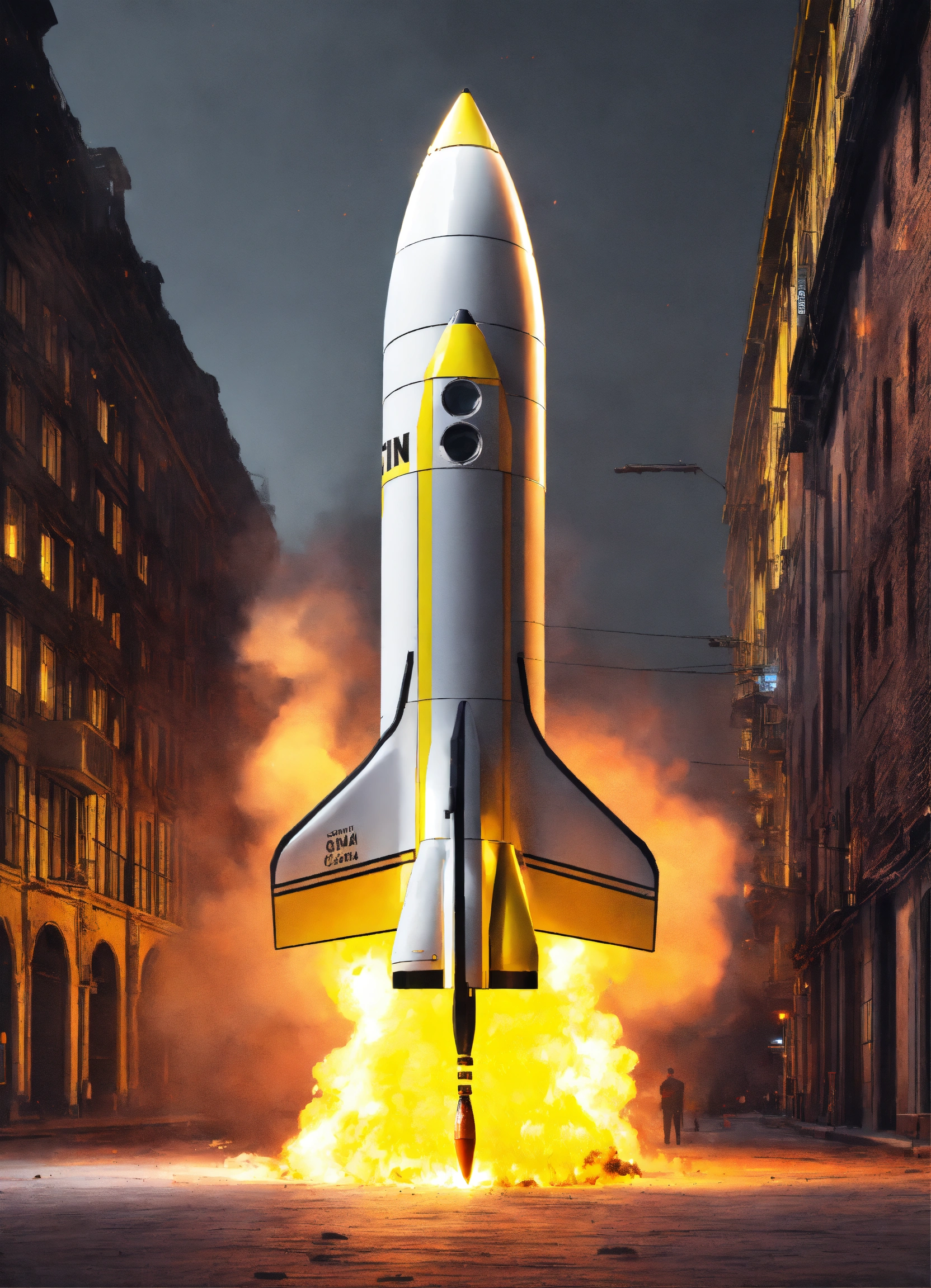 Bombe rocket on fire with yellow and gray color with neon 8k