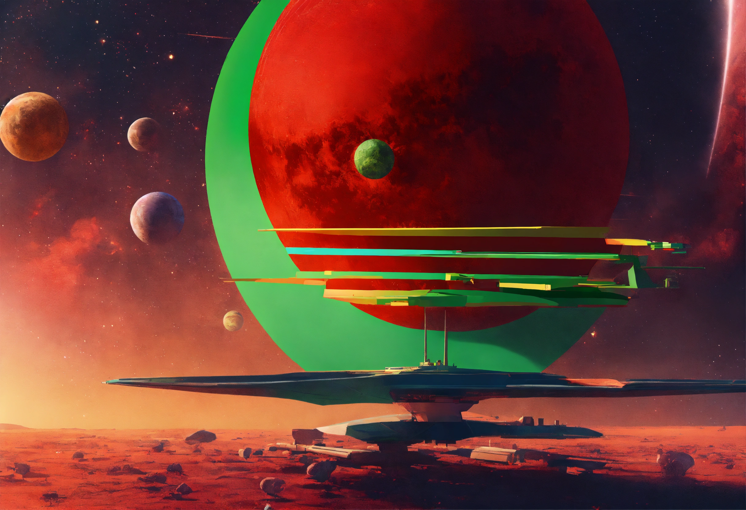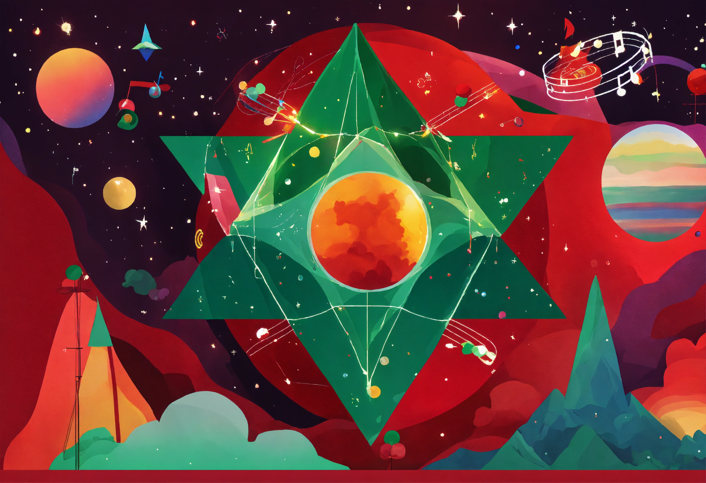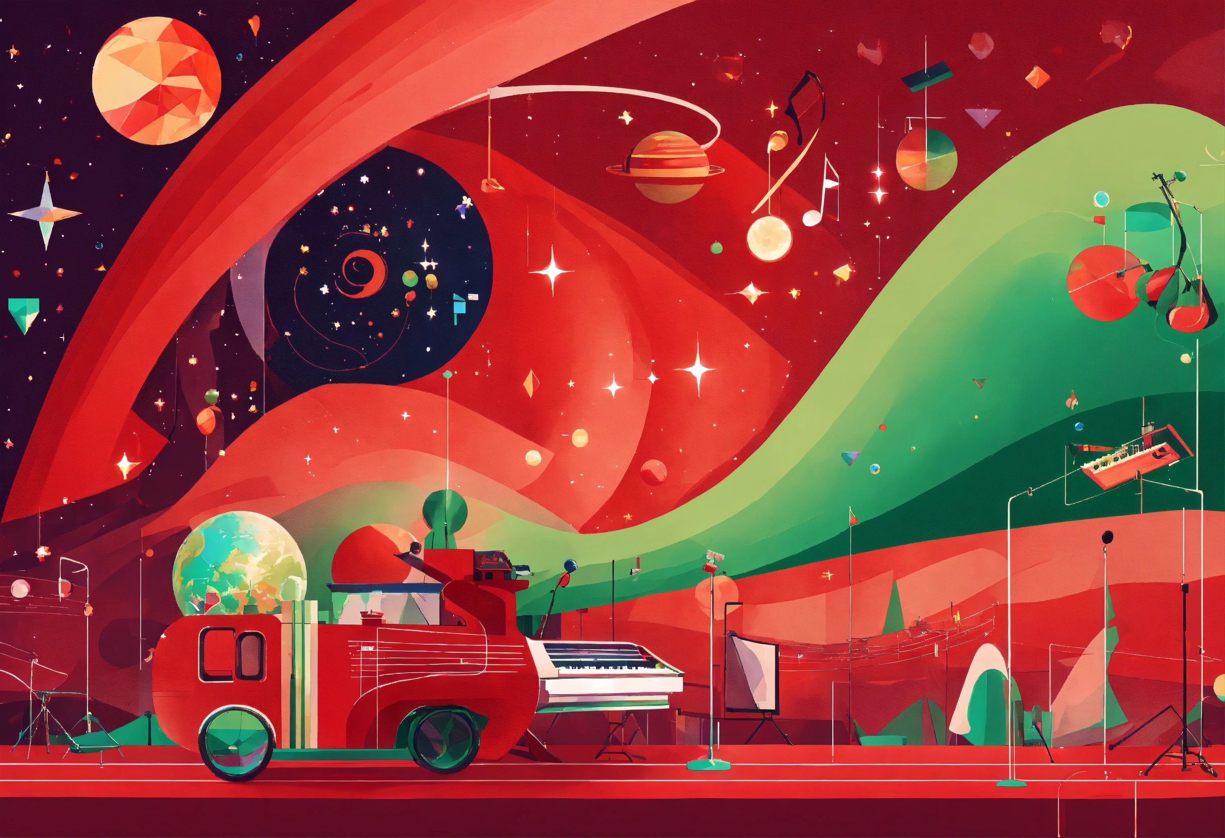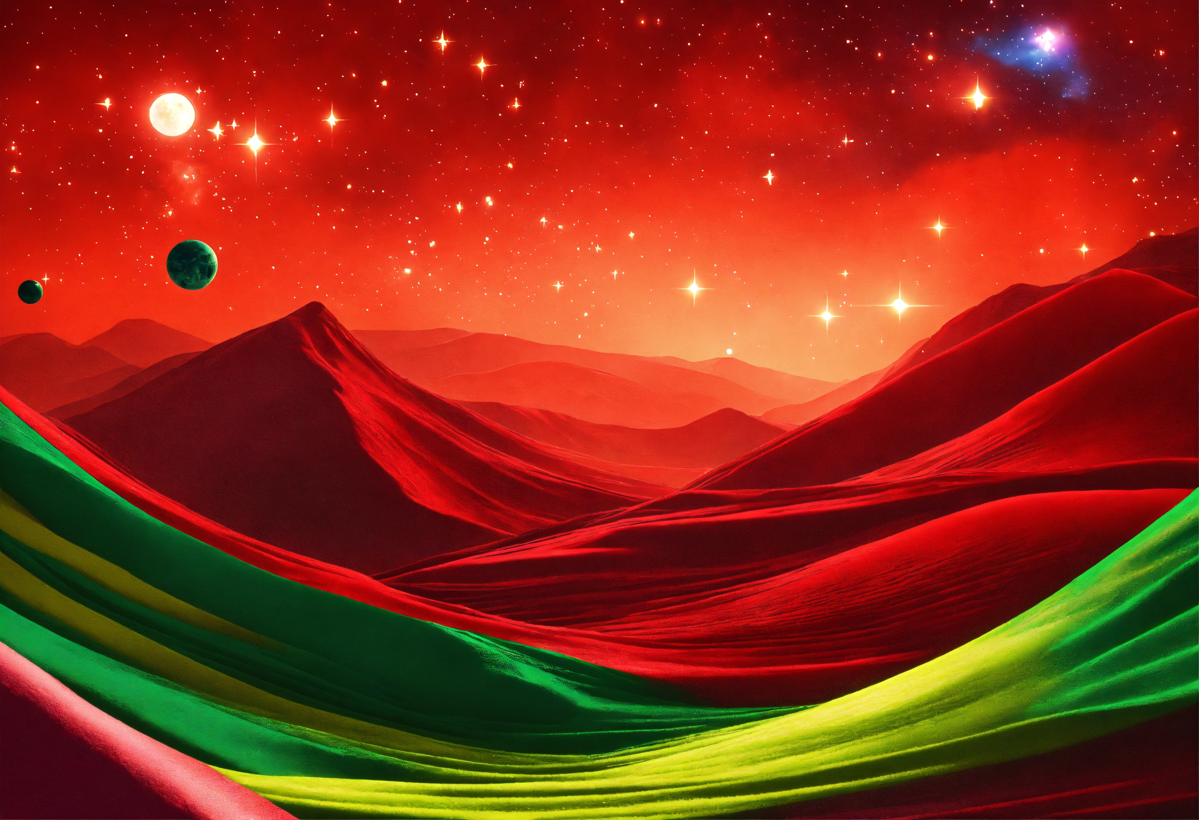 Image with elements such as the colors red and green flag and a musical and galactic aesthetic