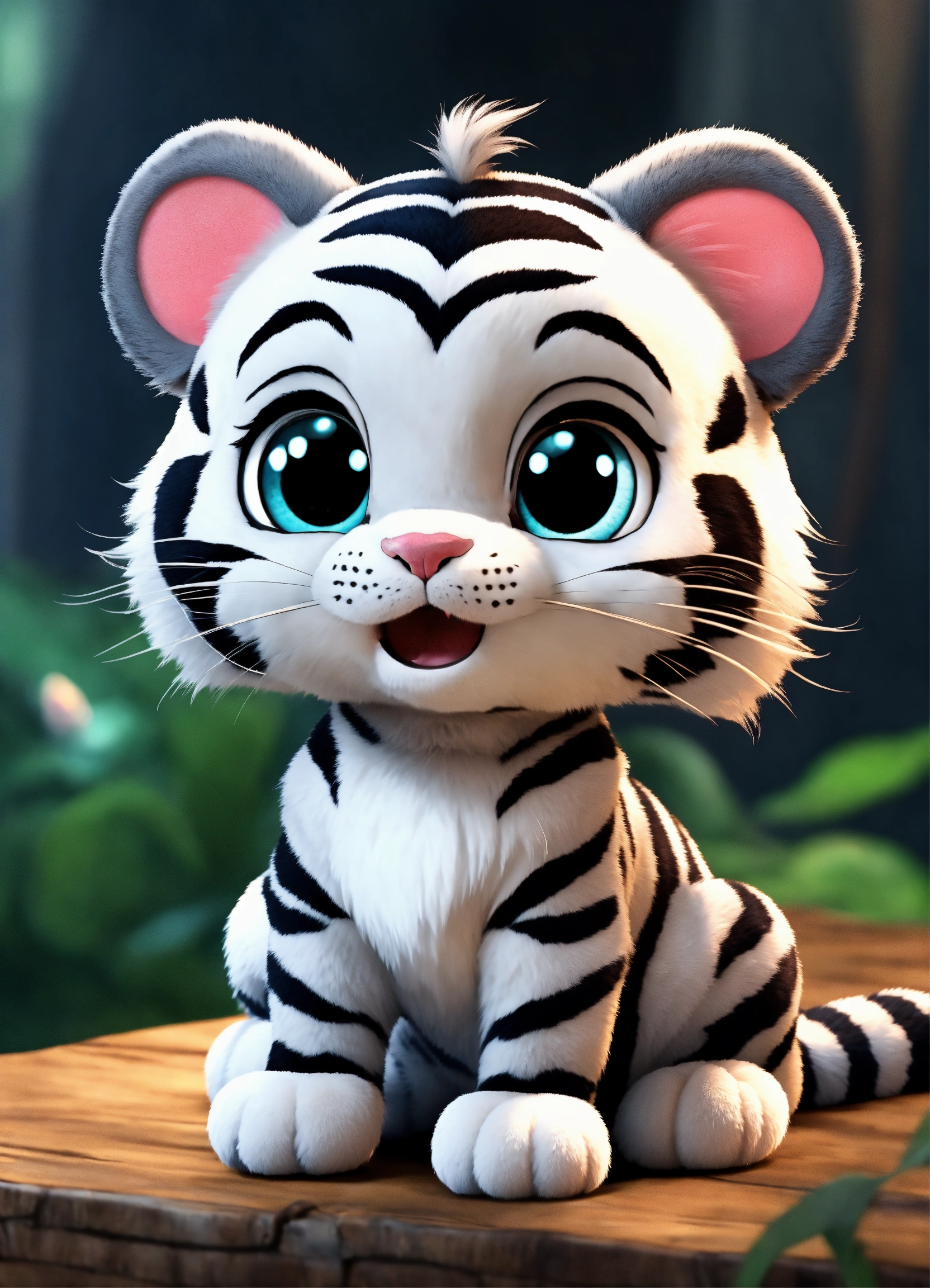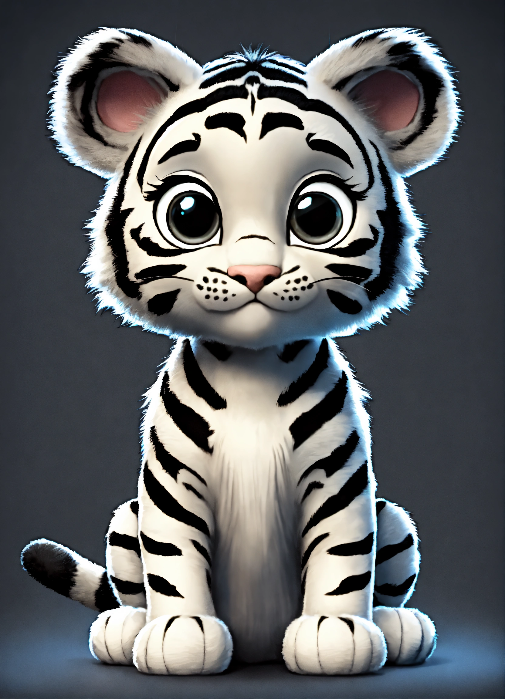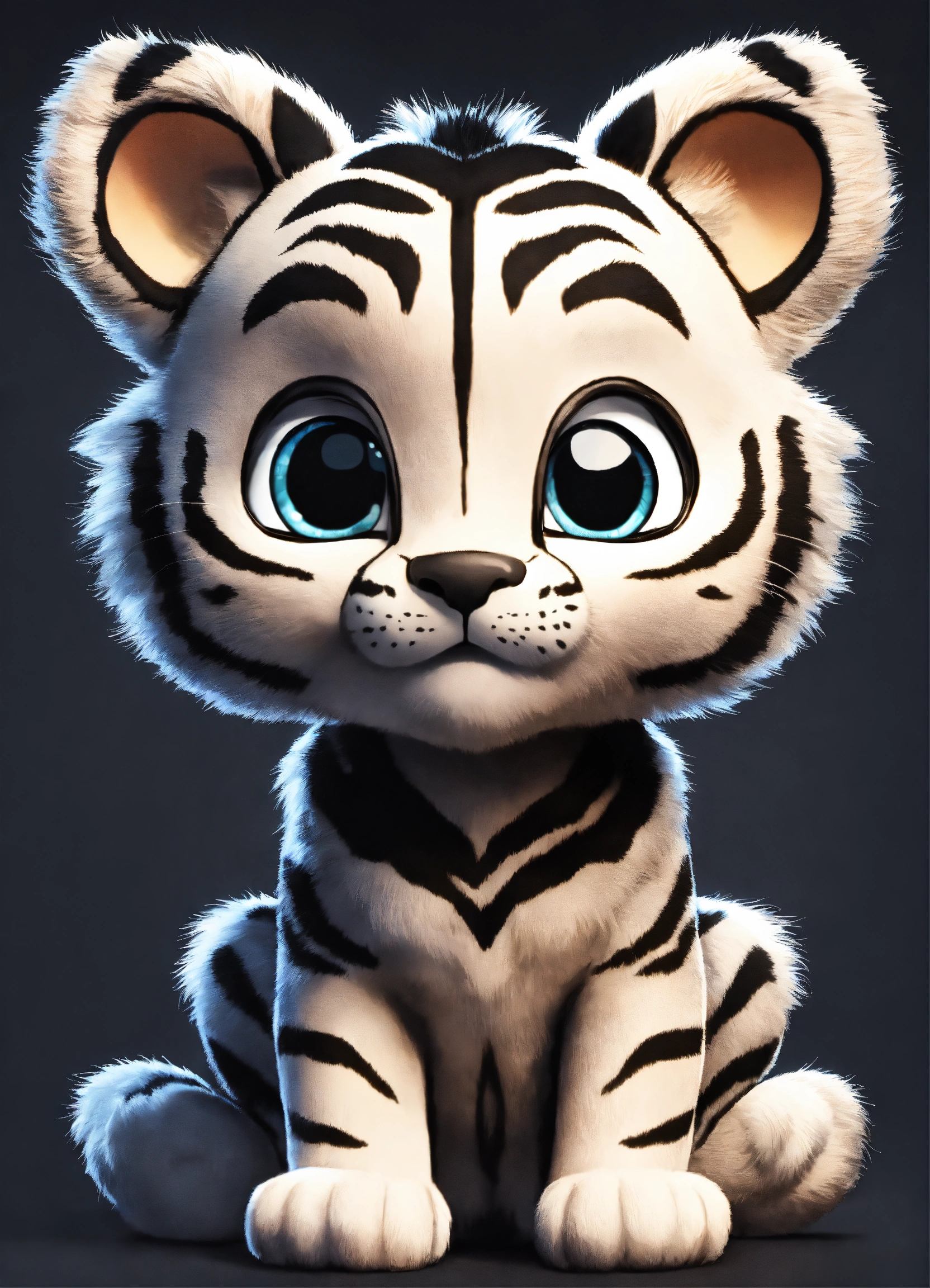 A cute gray and black baby tiger with big eyes