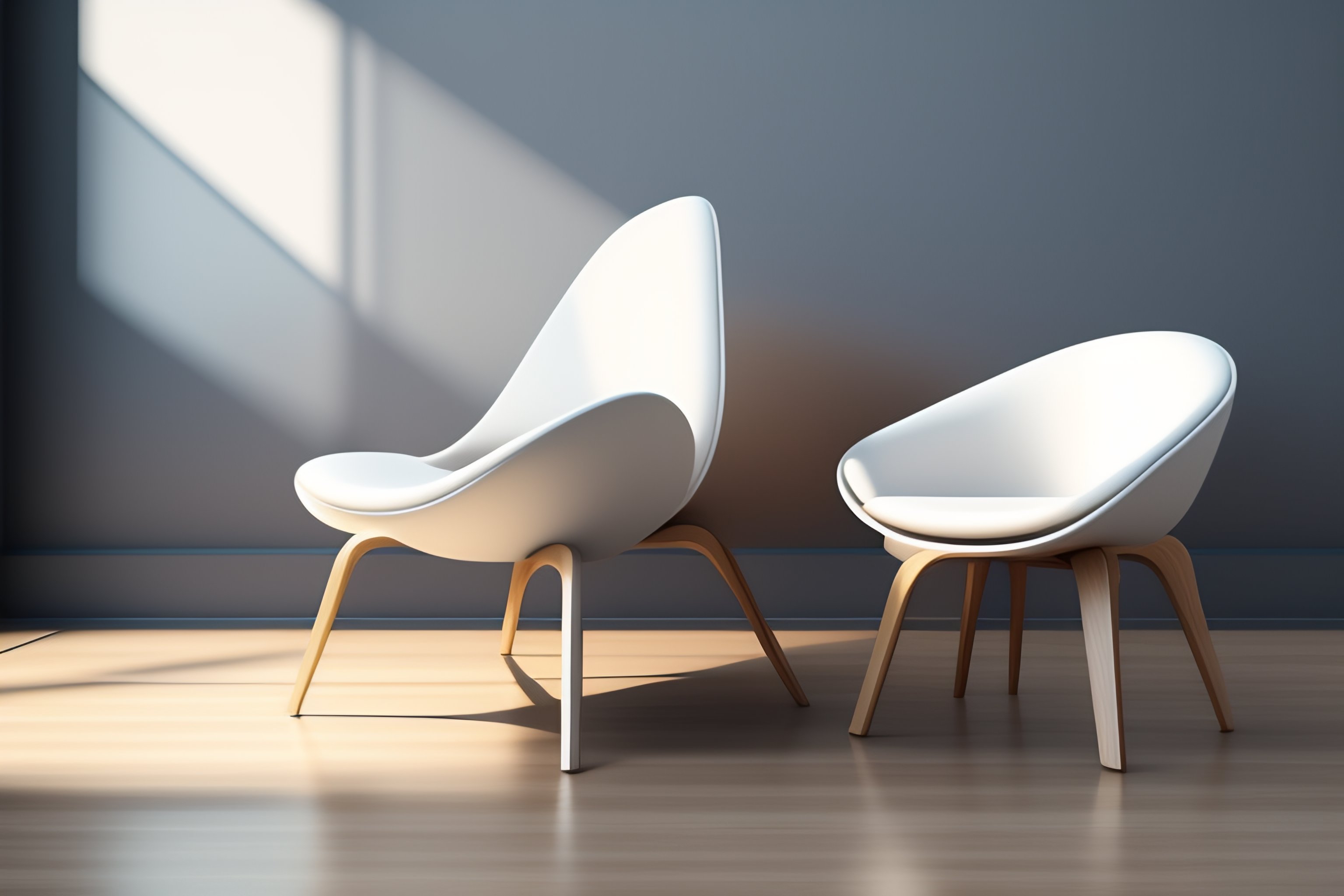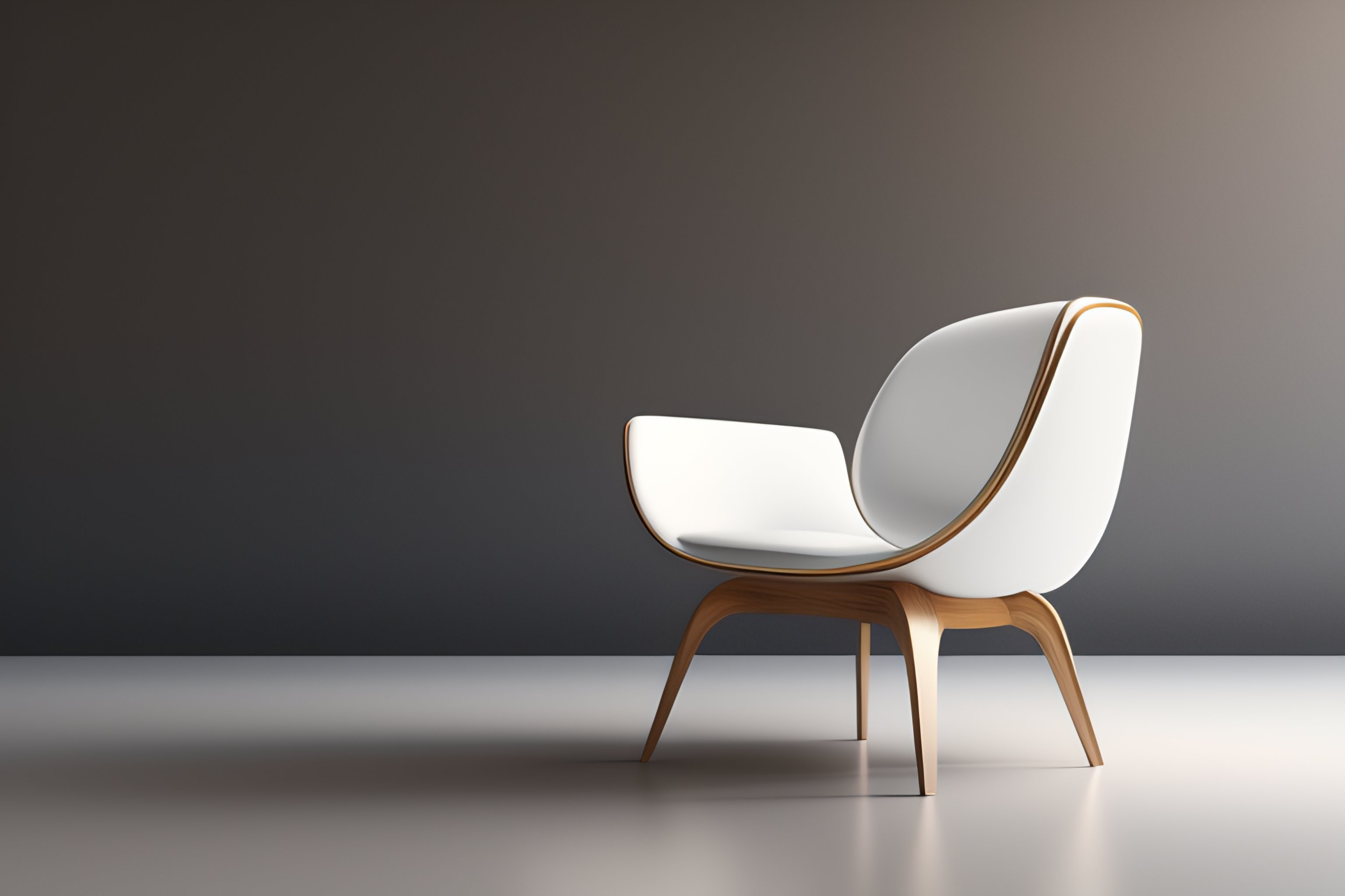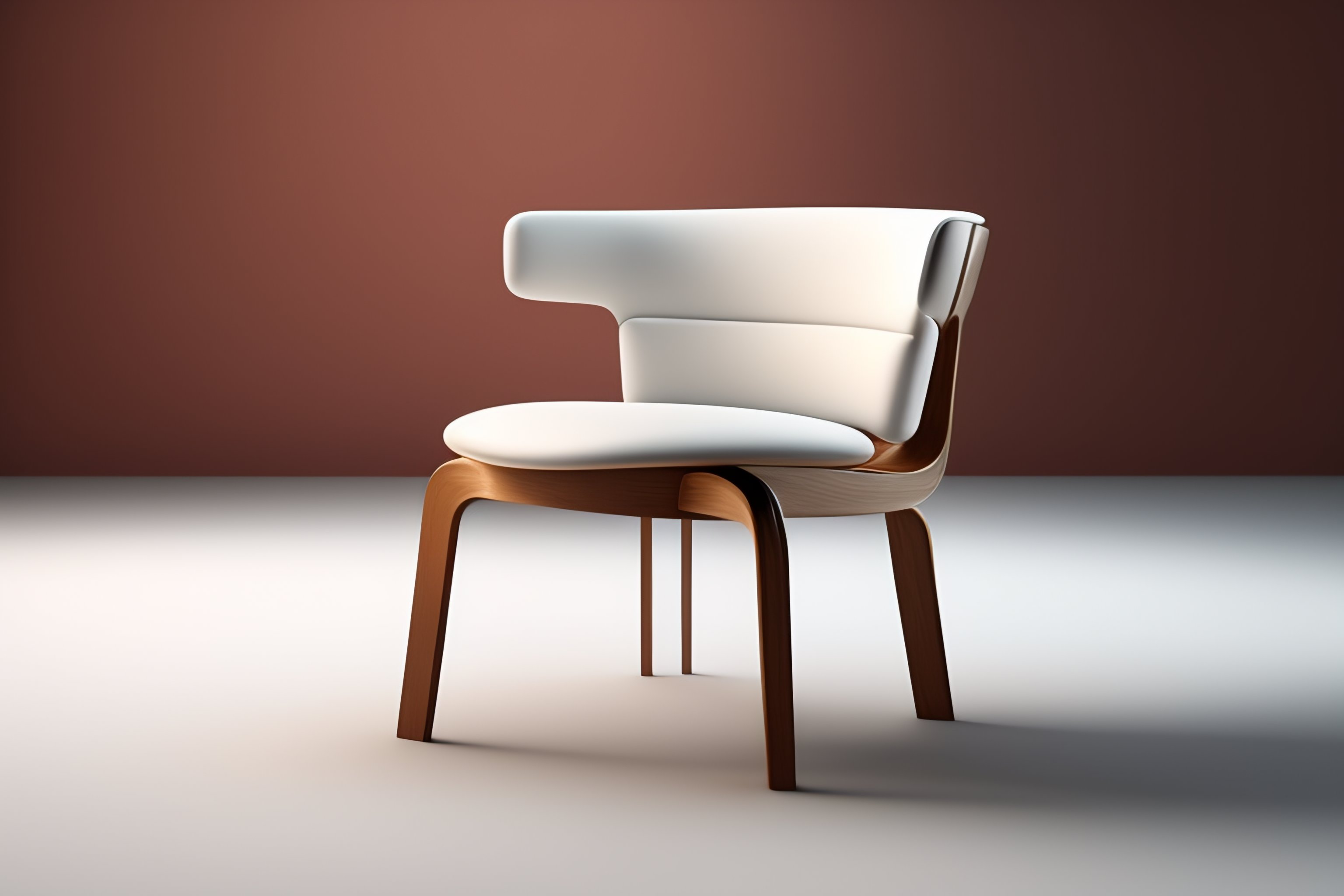 Chair with wooden frame and white upholstered seat, 3d render by ned m. seidler, trends in behance, gutai group, render by maya, art deco