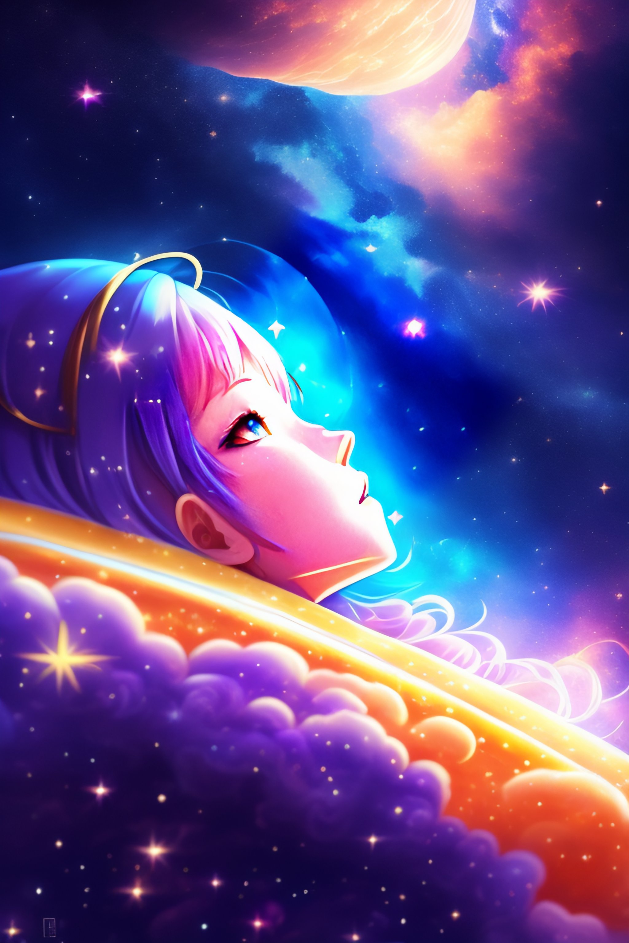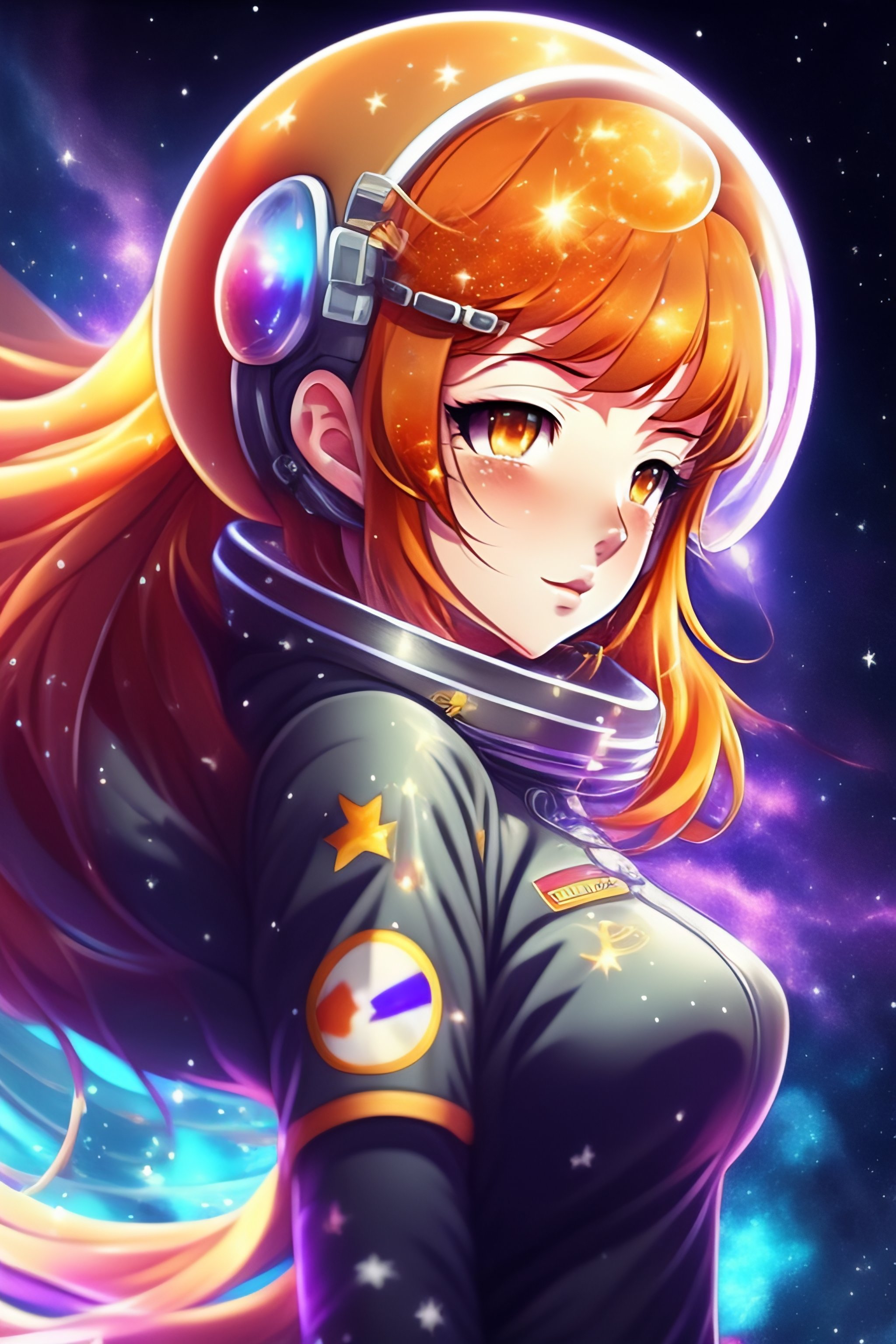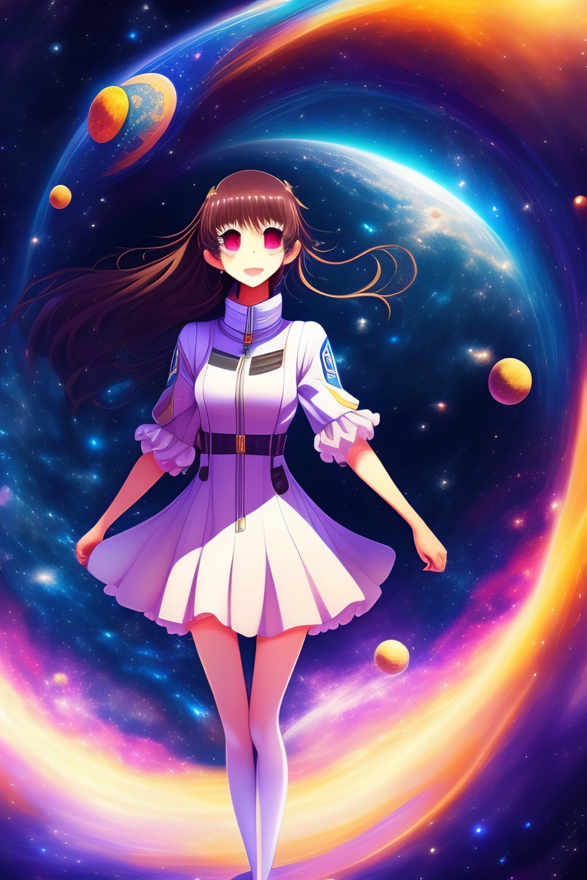Anime girl falling in space, distant in space suit beautiful stars and galaxys full human digital art soft
