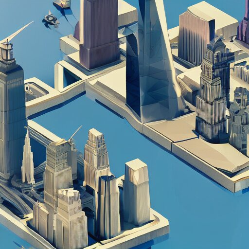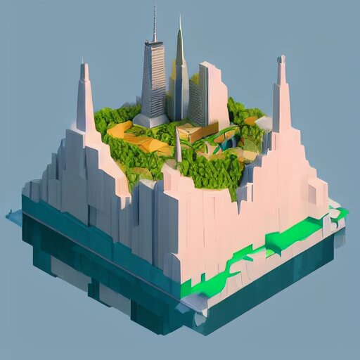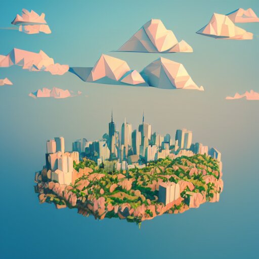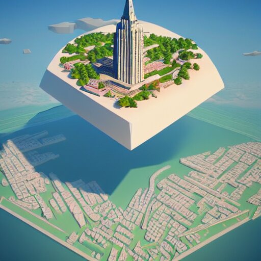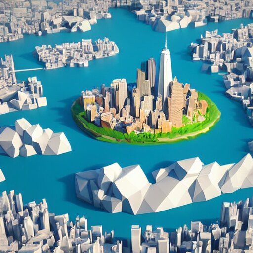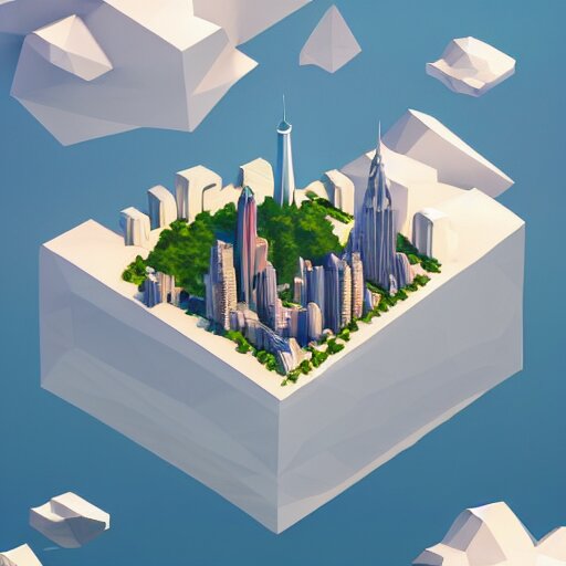 Floating island with new york city in the sky, low poly, isometric art, 3d art, high detail, artstation, concept art, behance, ray tracing, smooth, sharp focus, ethereal lighting