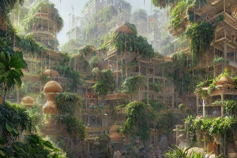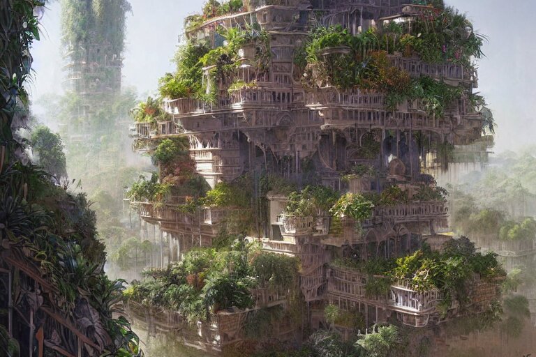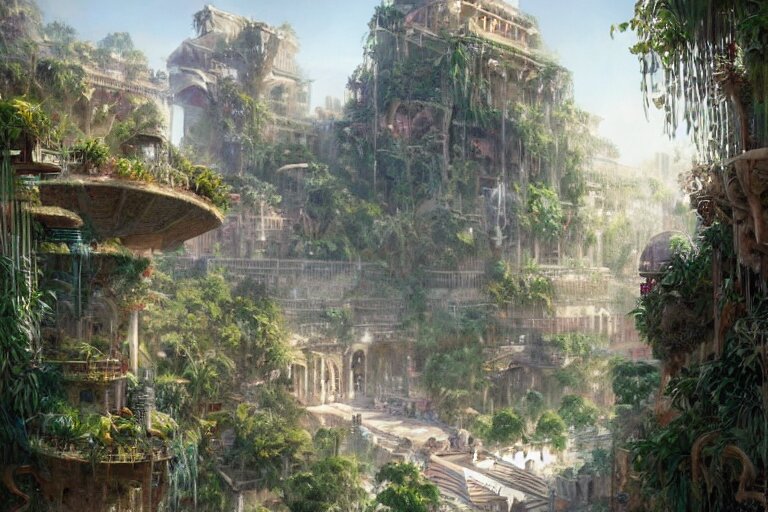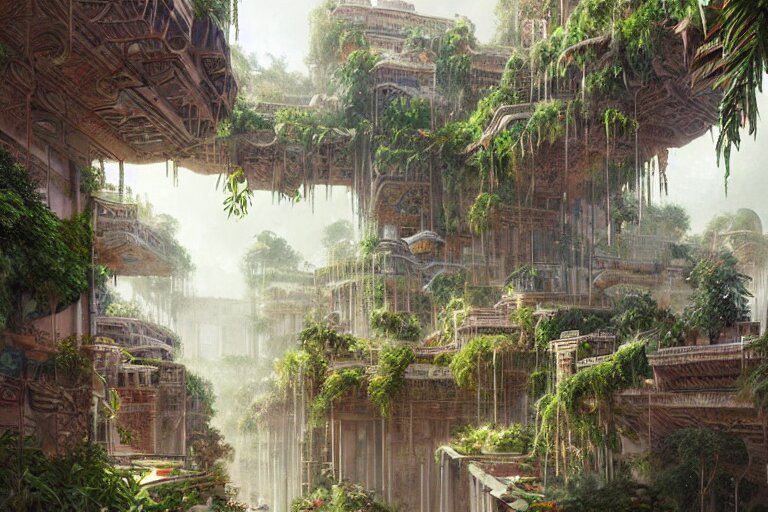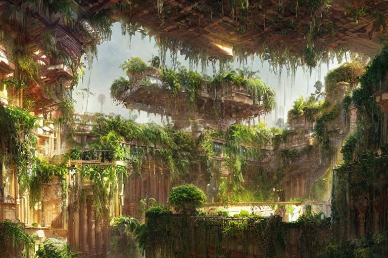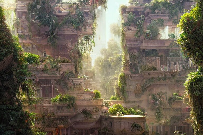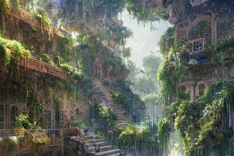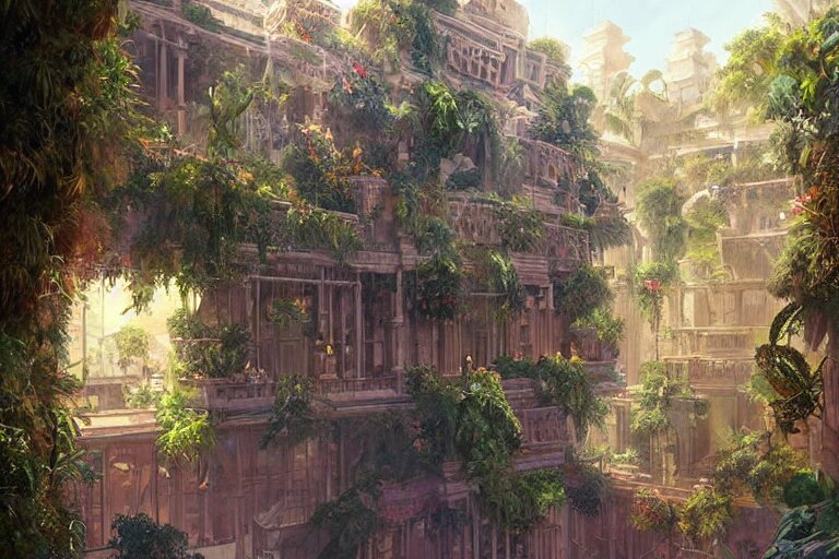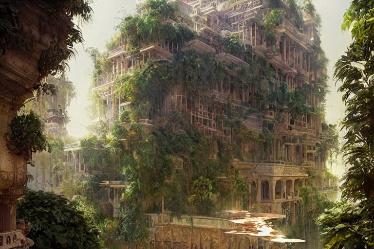 Hanging gardens of babylon, highly detailed, digital painting, artstation, concept art, sharp focus, illustration, art by artgerm and greg rutkowski and magali villeneuve