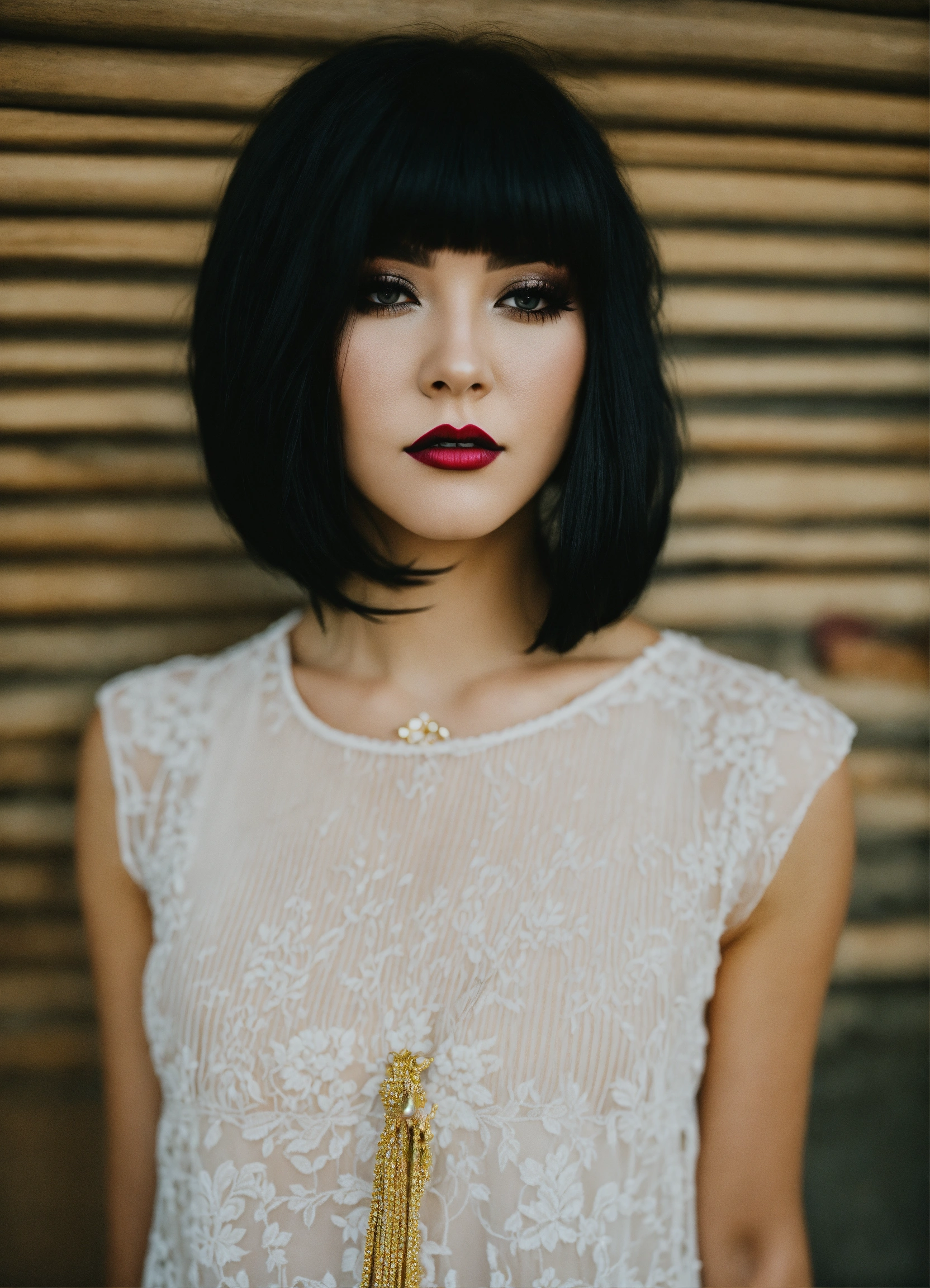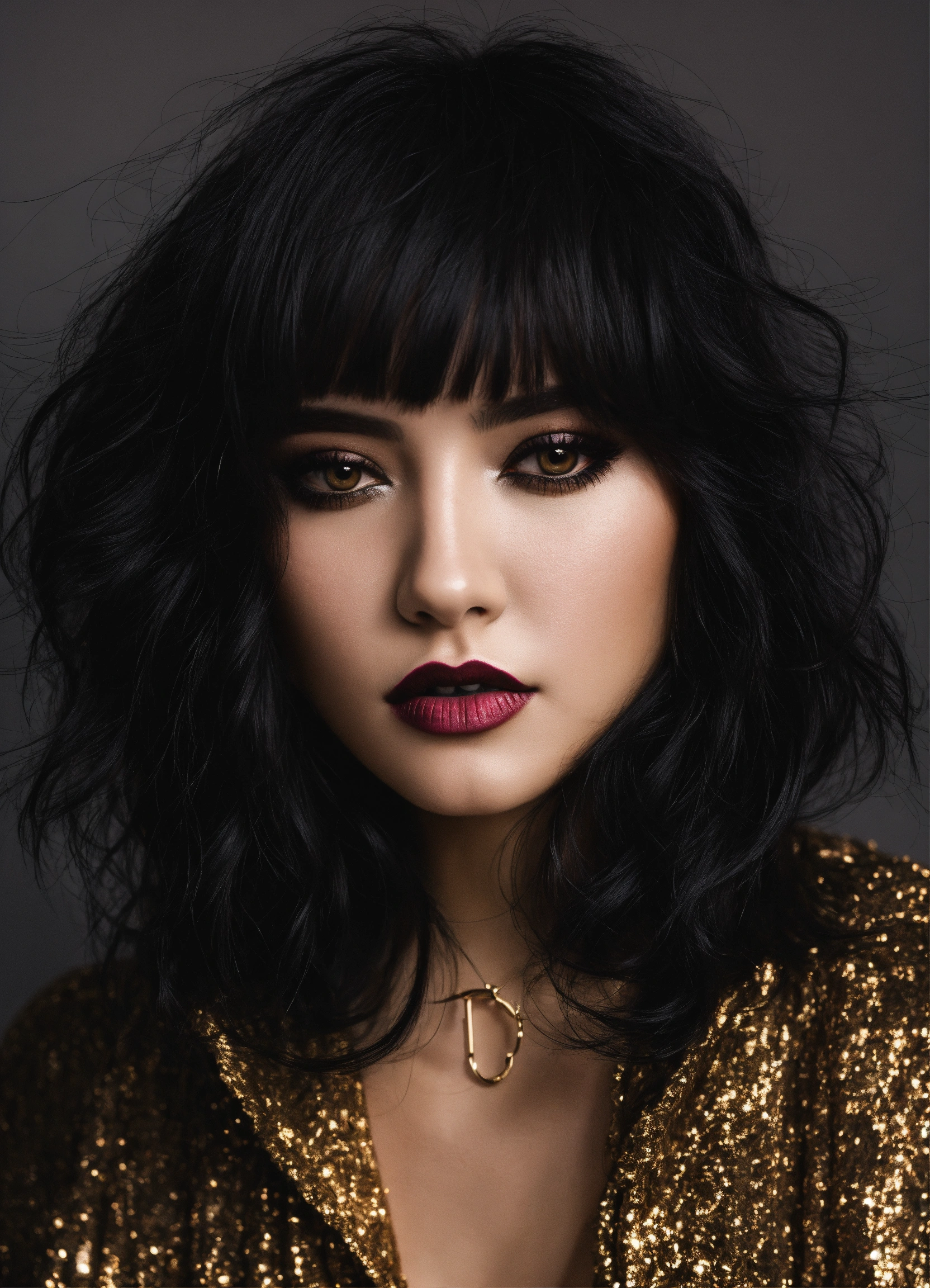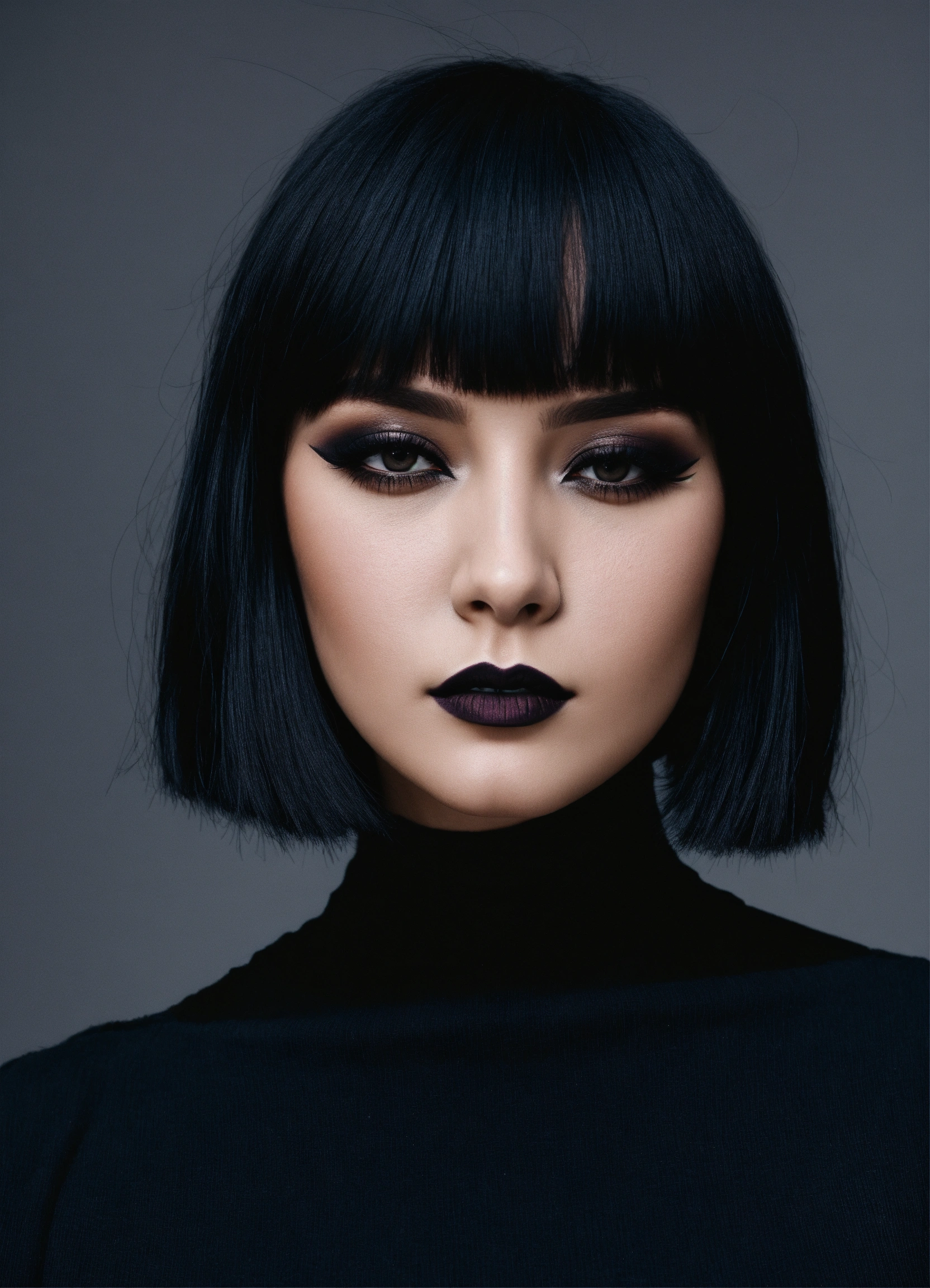 Woman with black hair and dark makeup