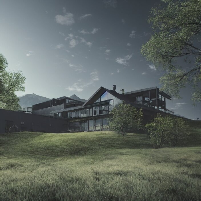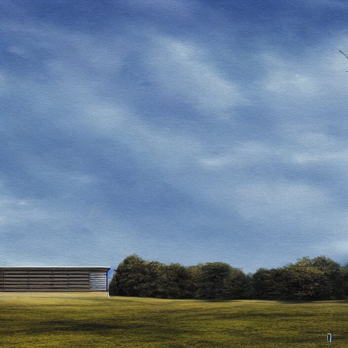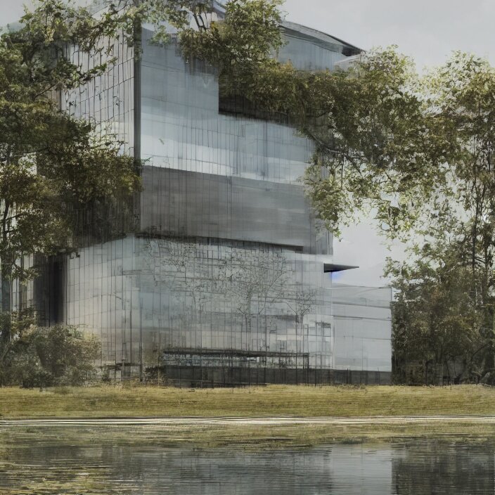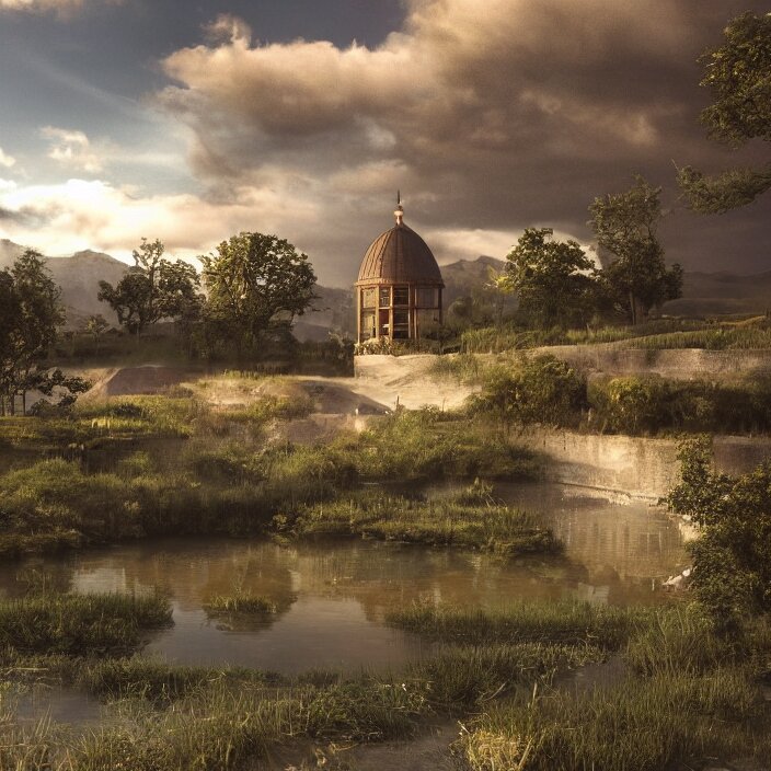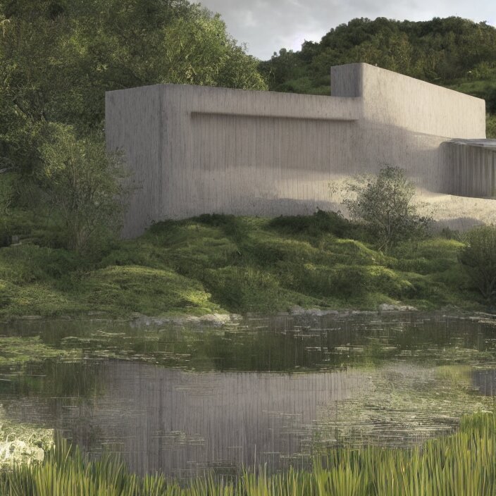 A building in a serene landscape