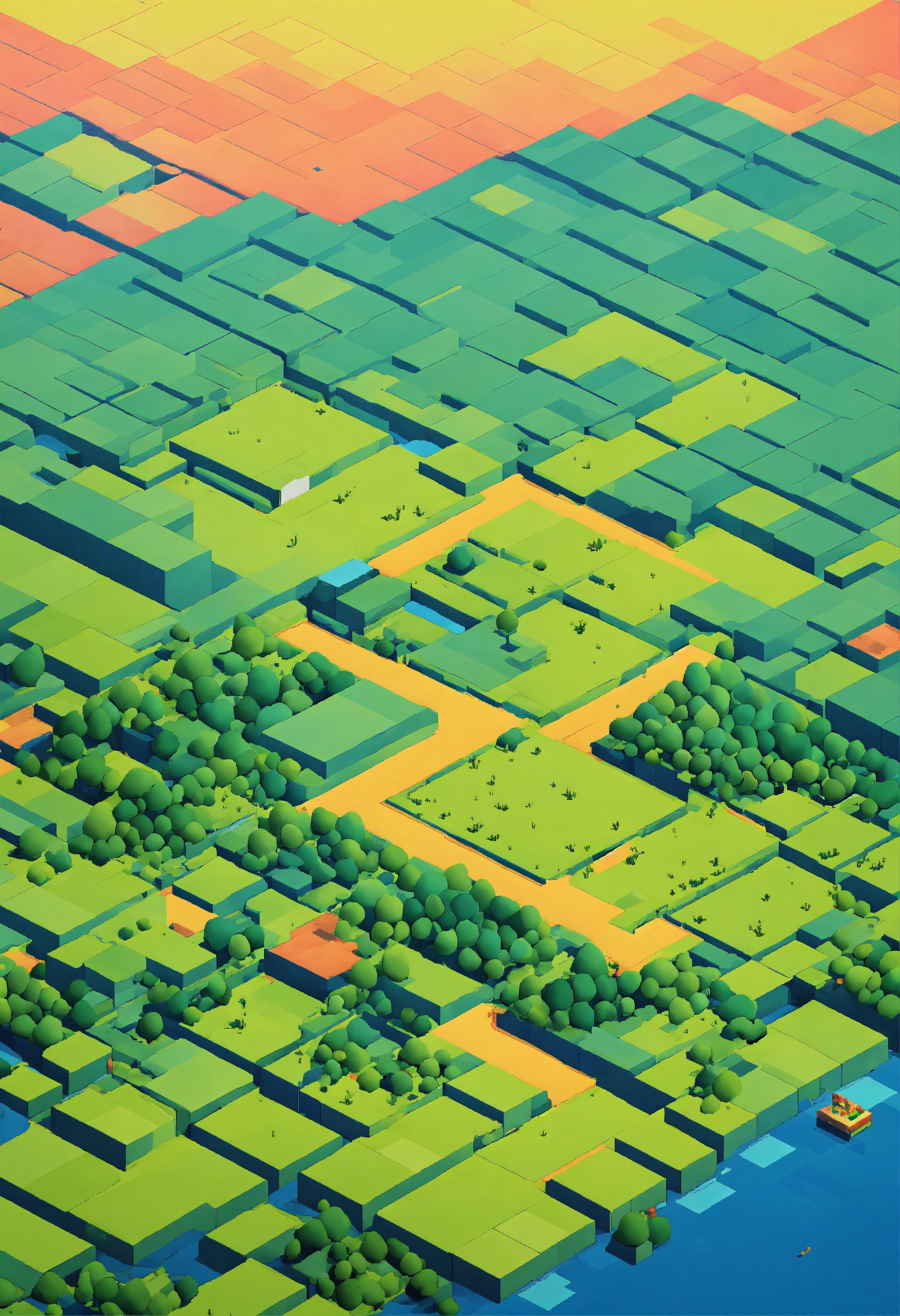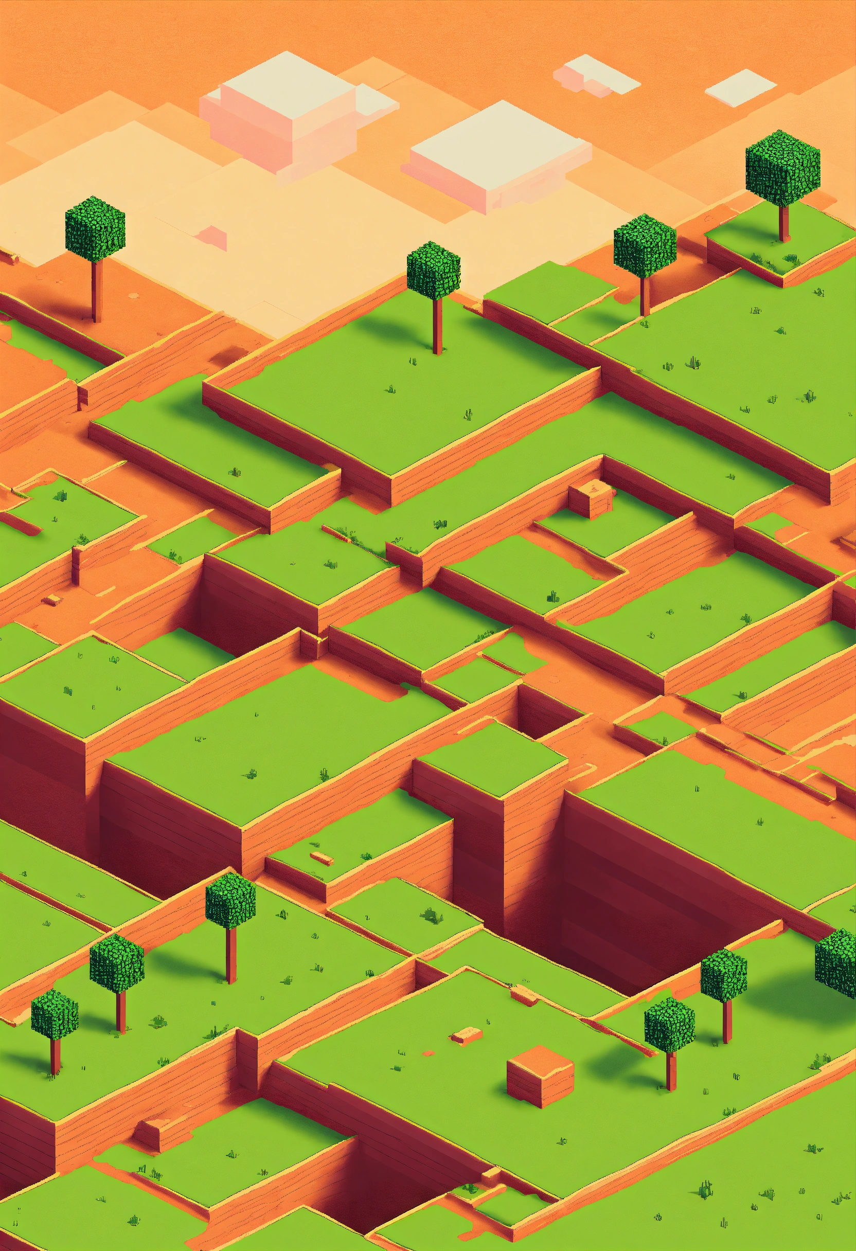 Simple blocky pixel 2d isometric flat empty plain landscape empty middle