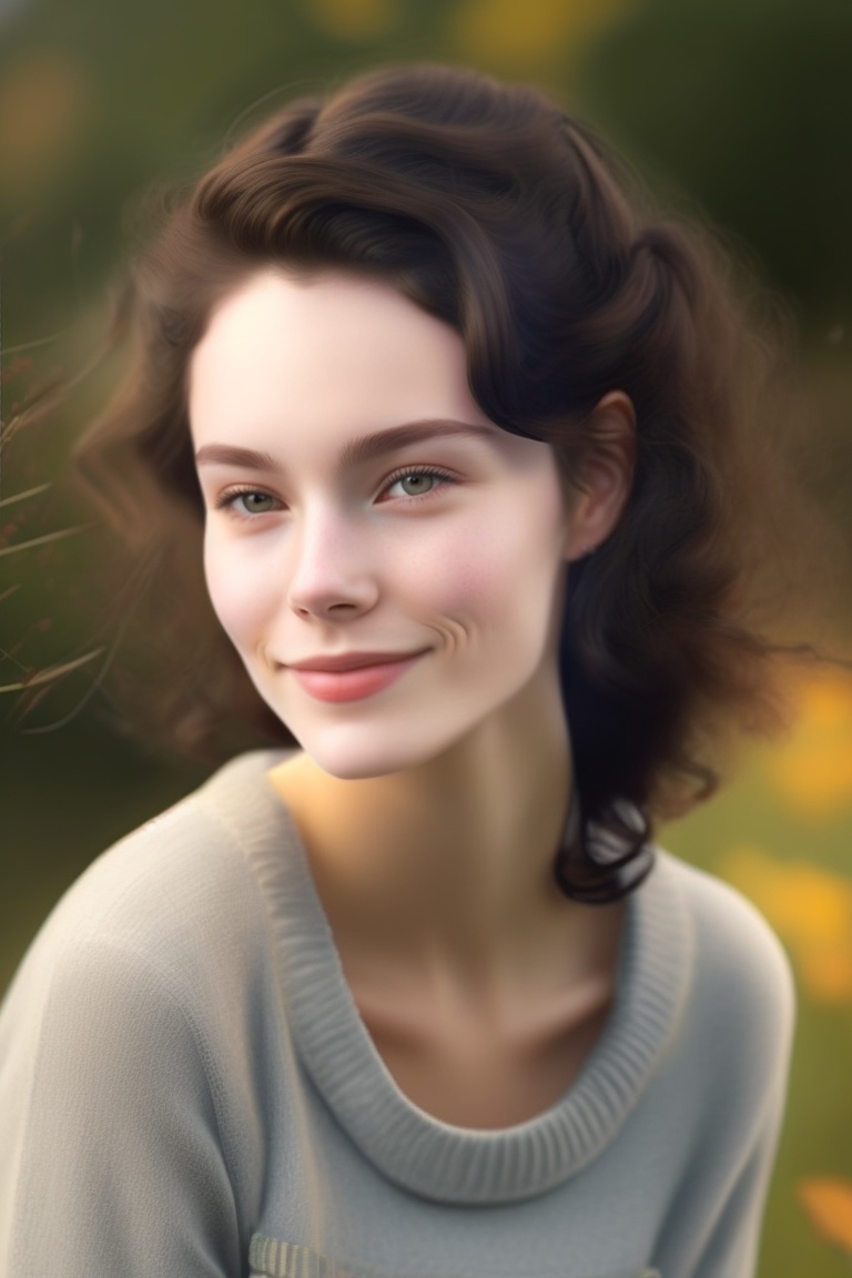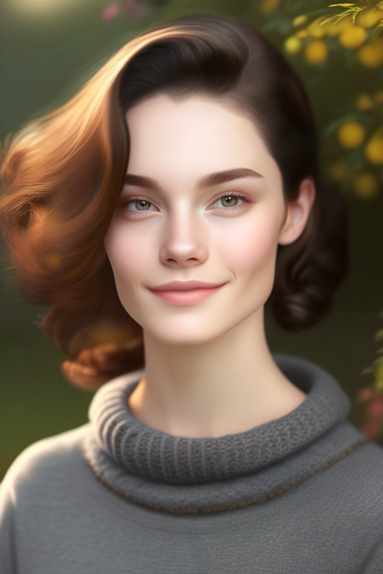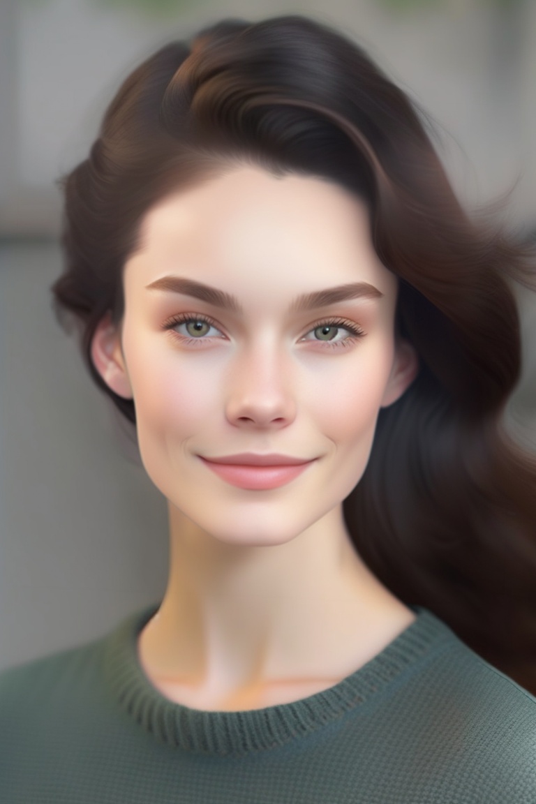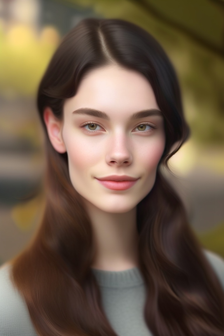 Simple girl, no make-up, strong jawline, slightly underweight, messy dark hair, very pale skin, innocent quirky smile, crazy eyes, freckles