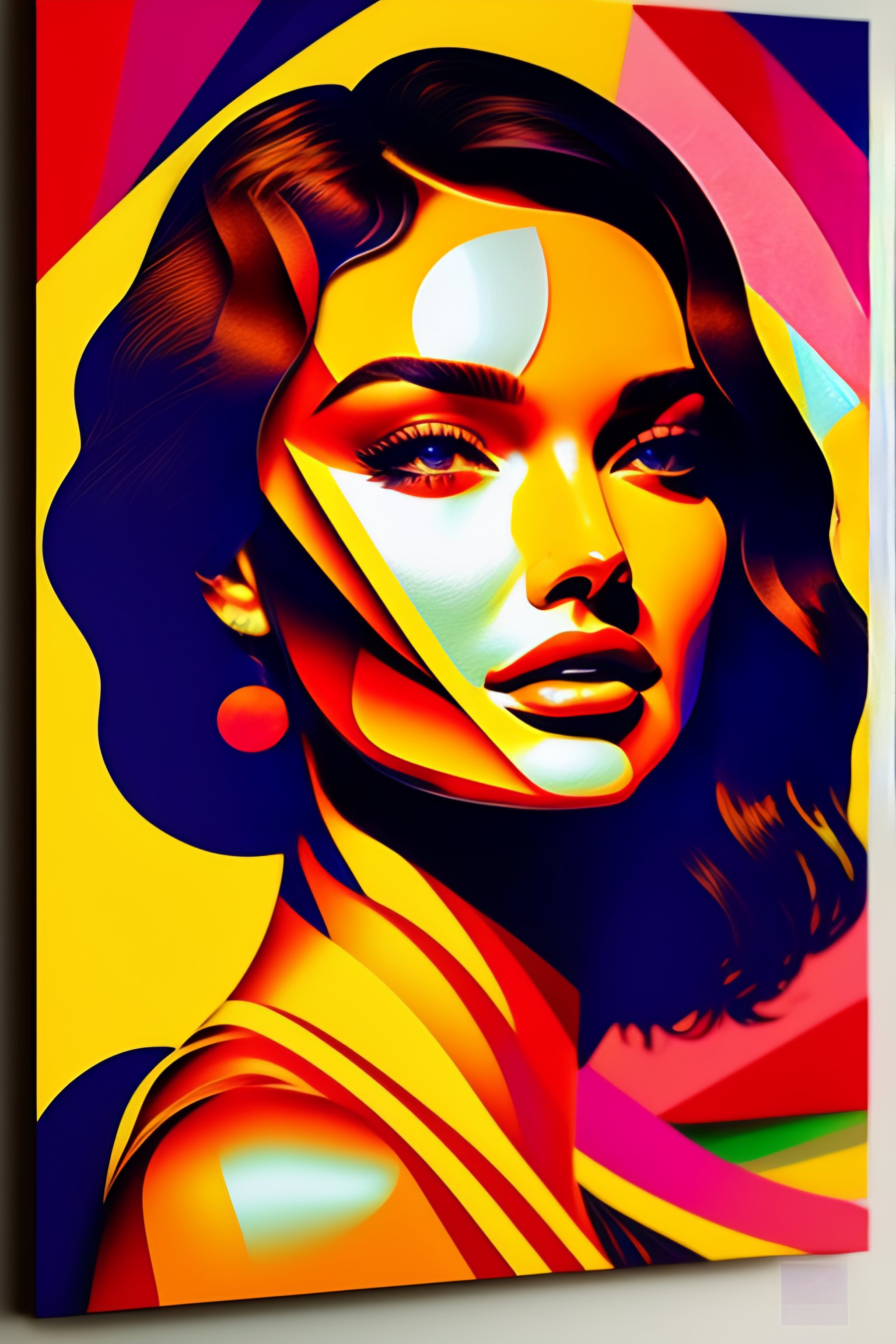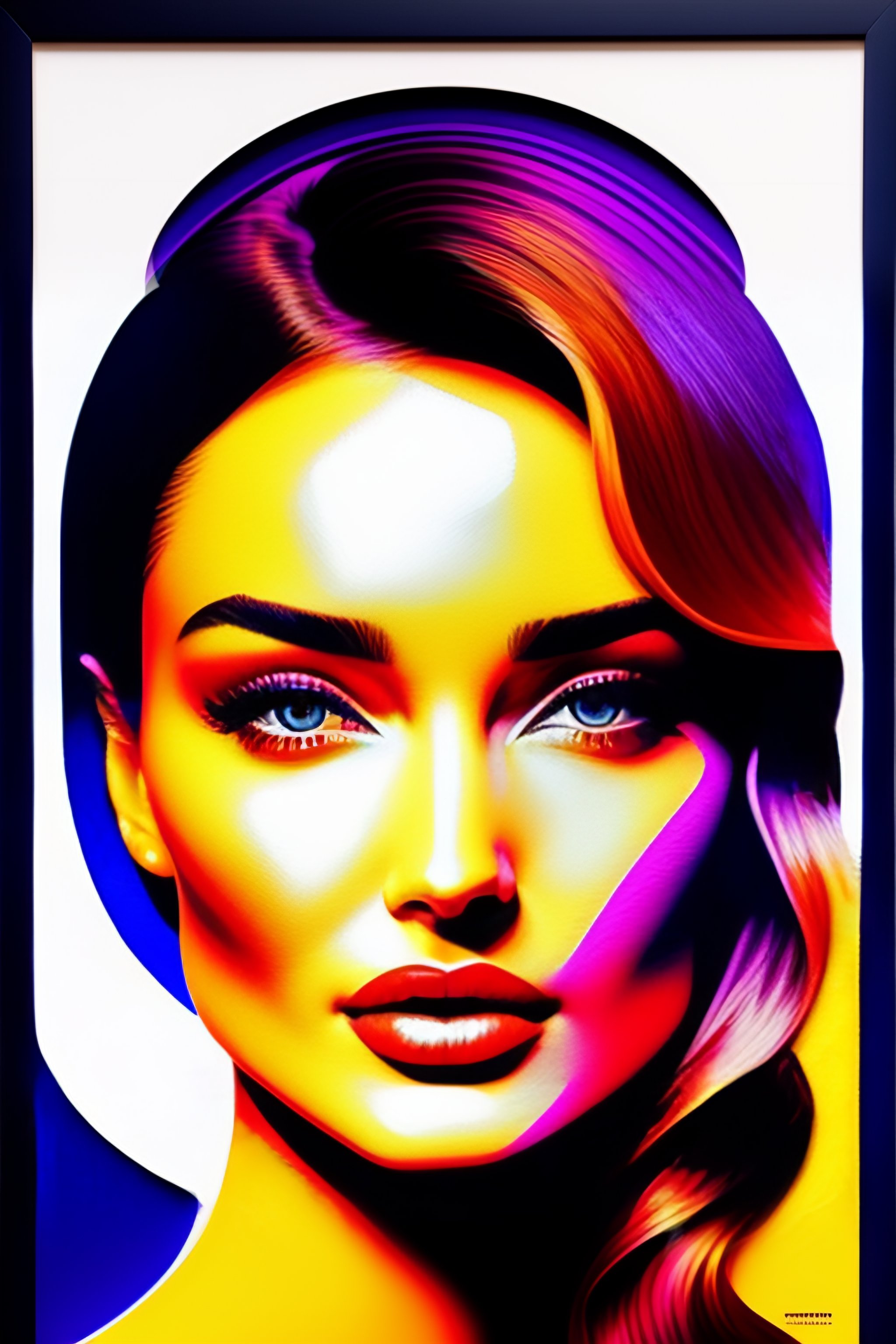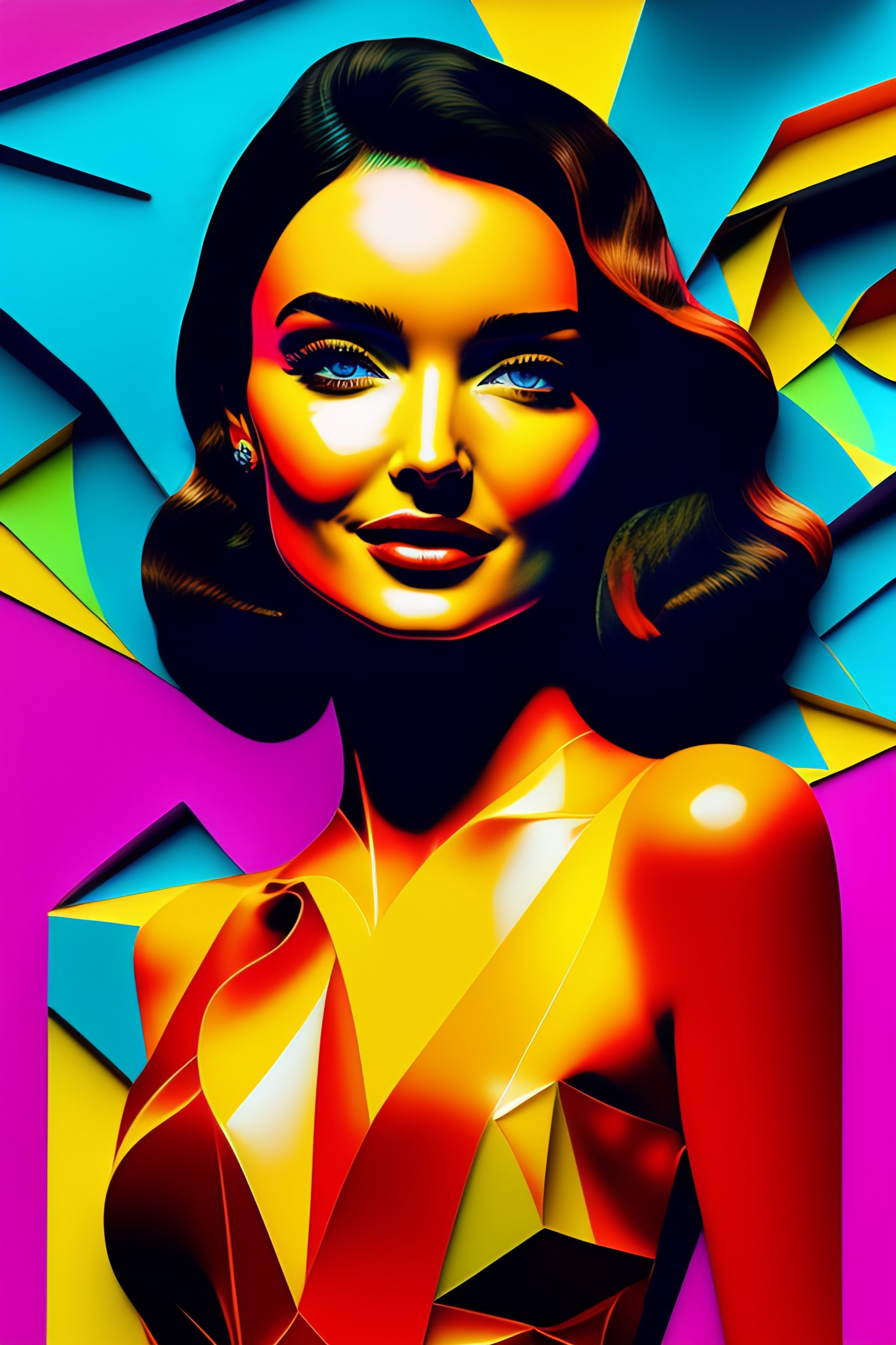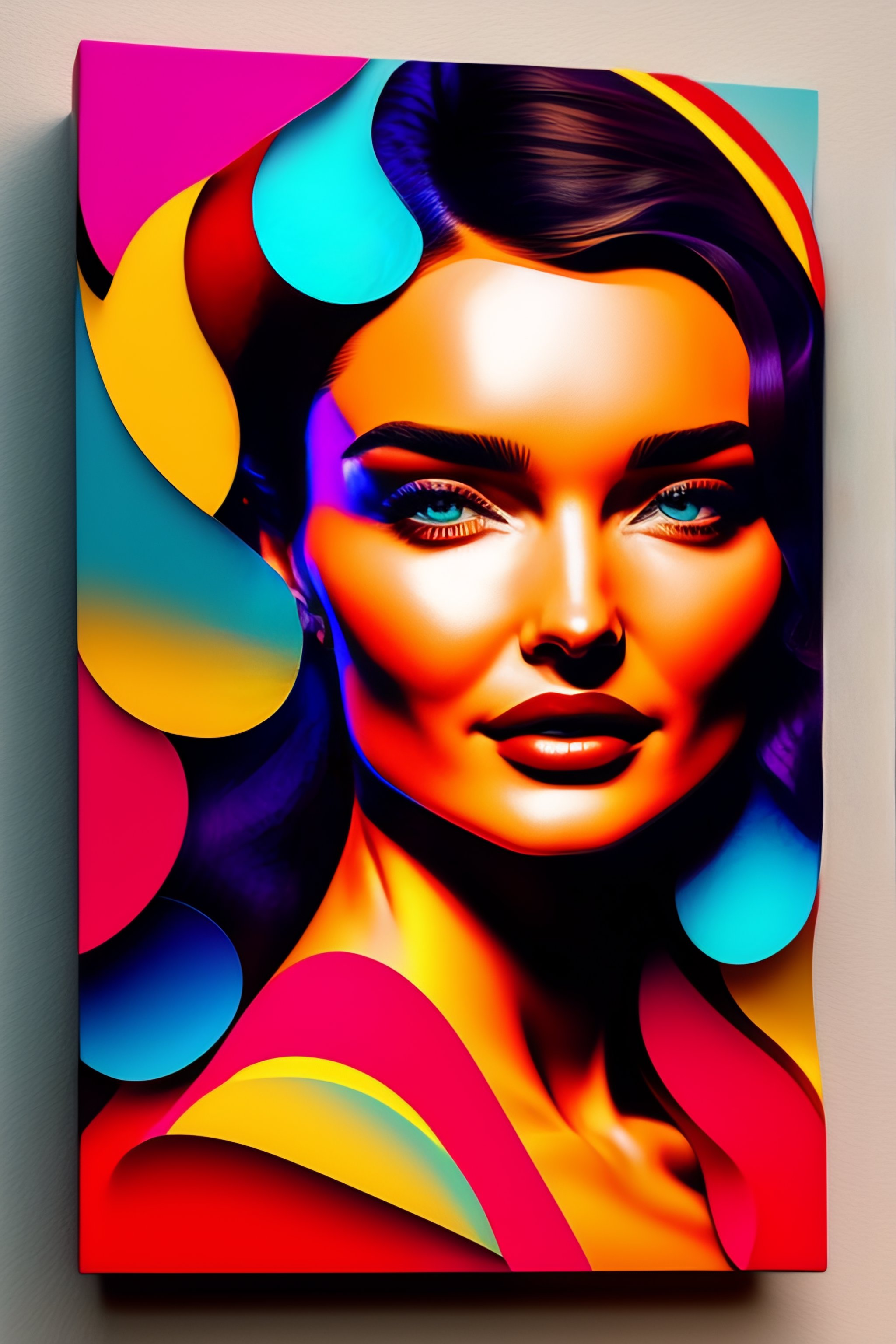 Portrait of miranda kerr, high relief, cut paper portrait 3d highly stylized in a box german expressionism pop art colors