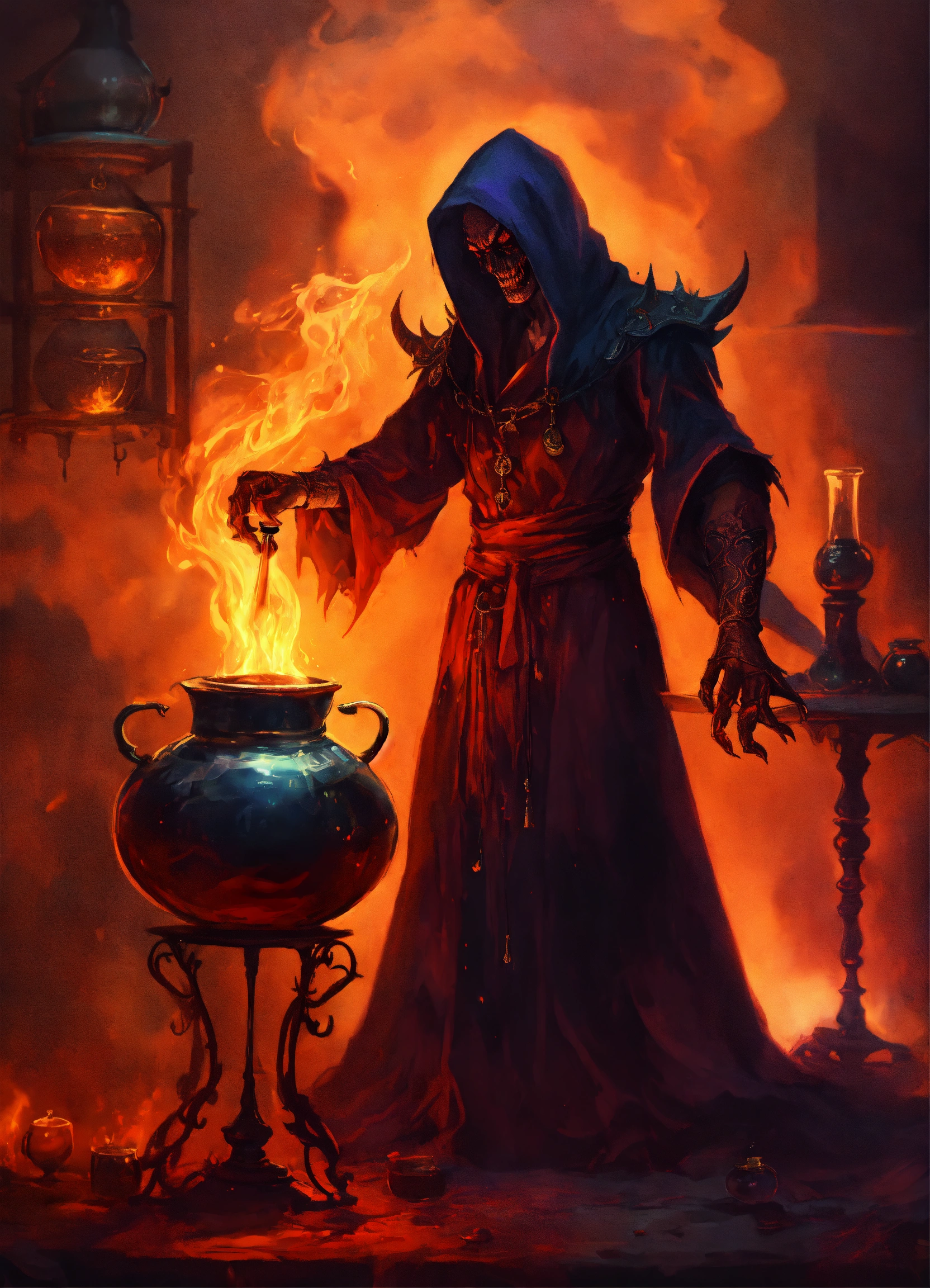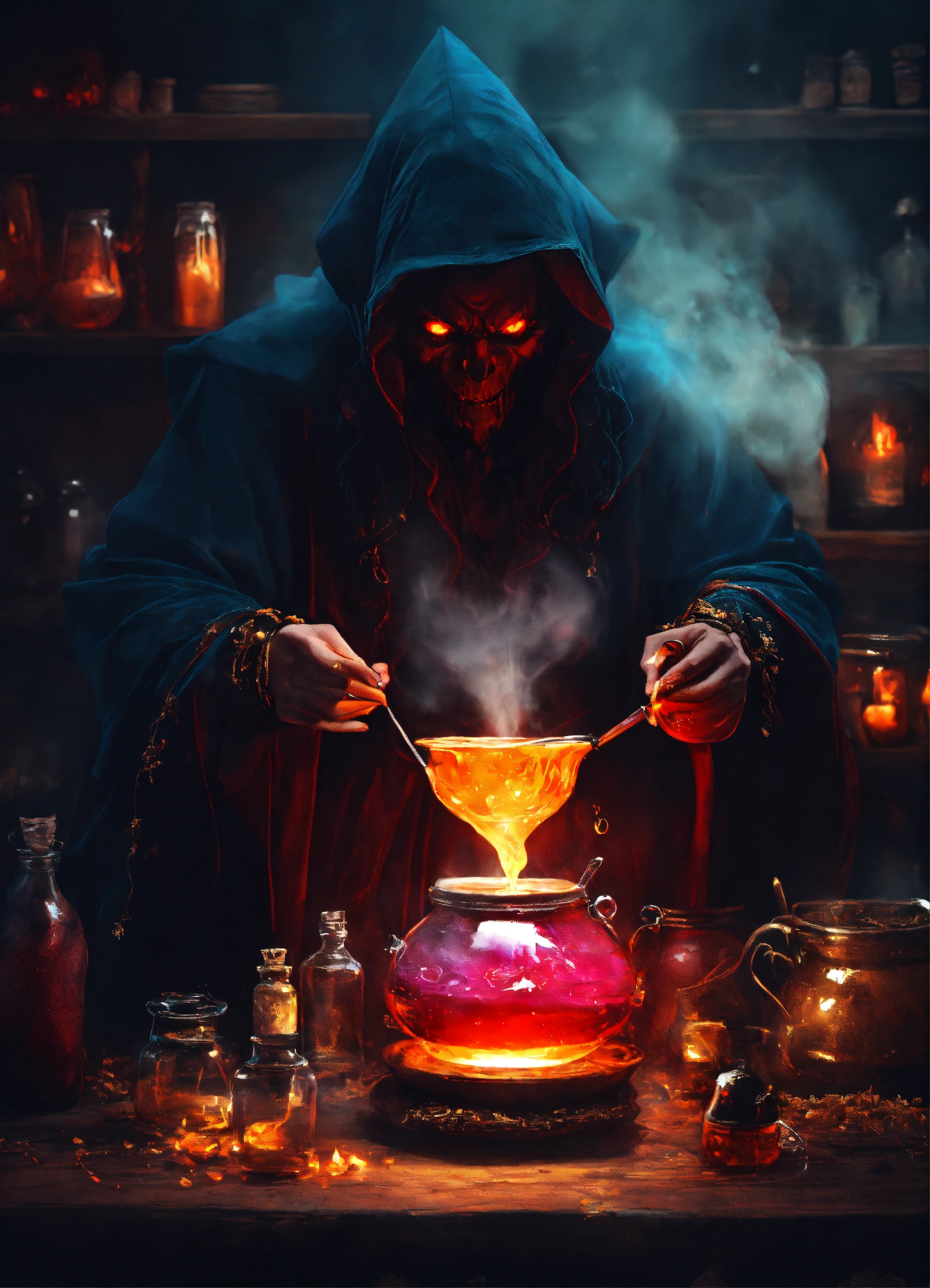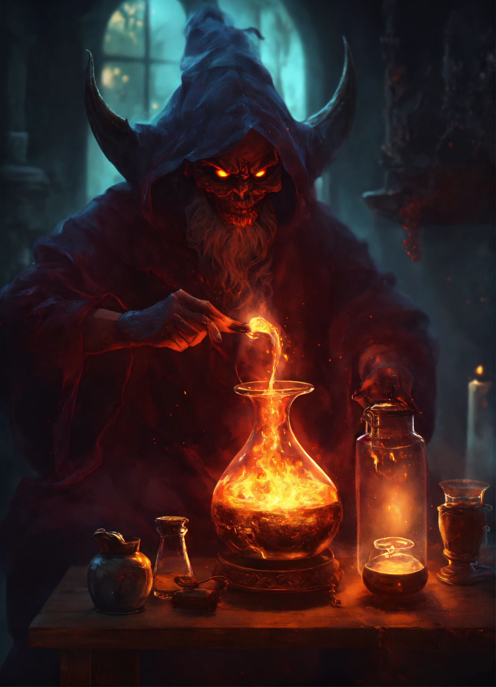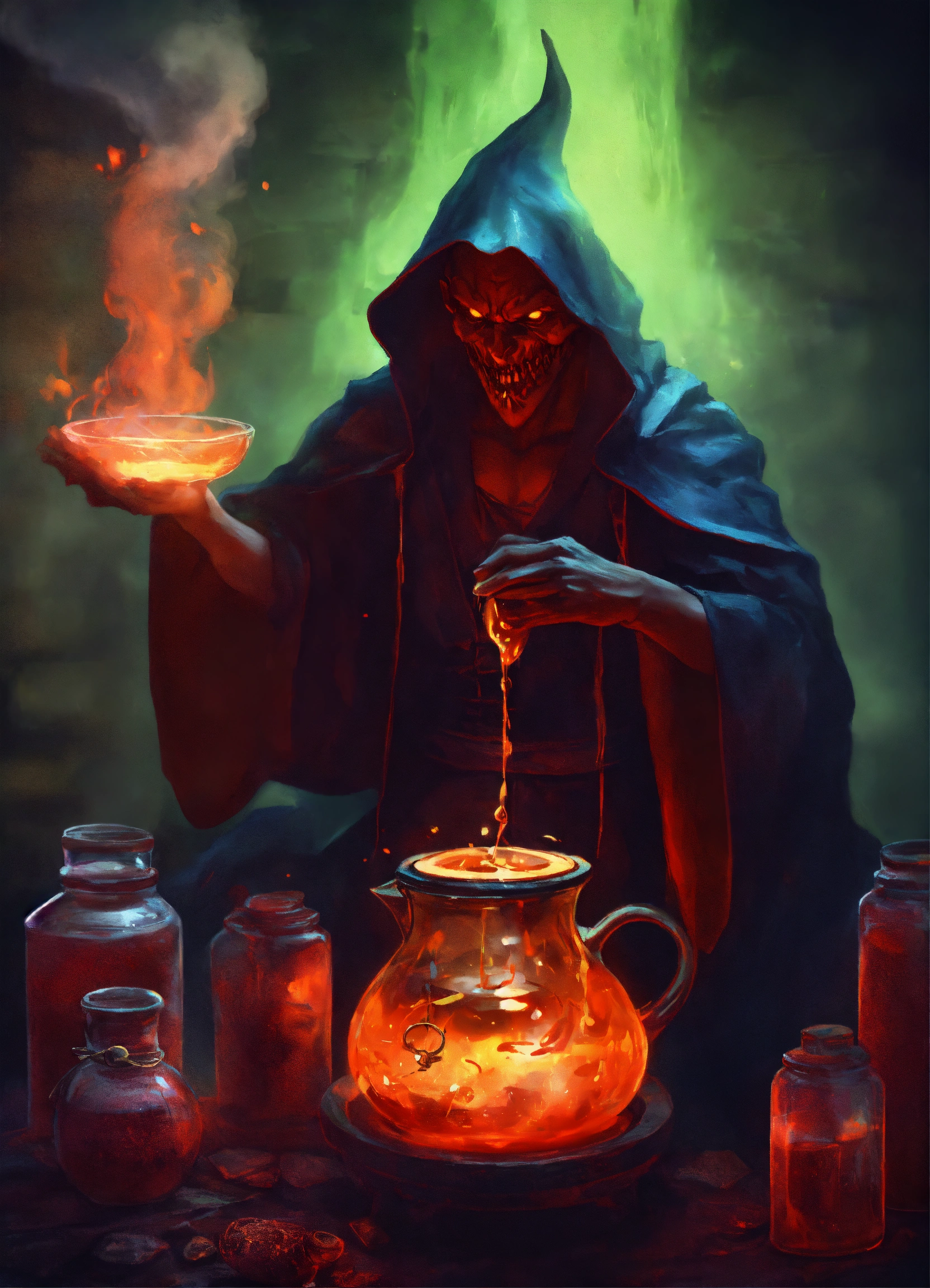 A demon sorcerer brewing a potion