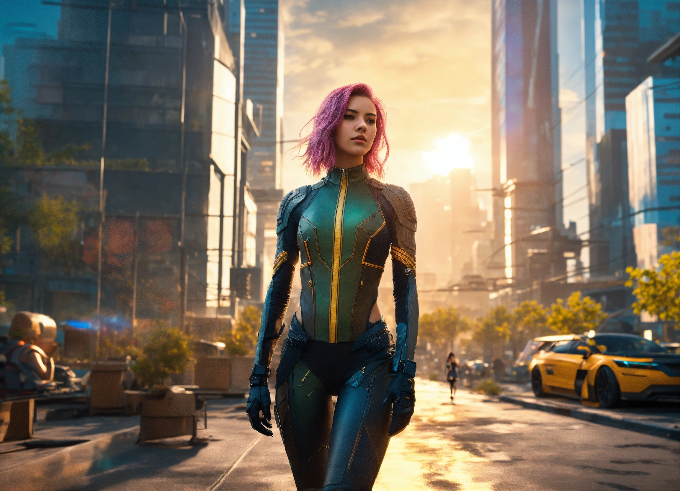 Full body high detailed photo realistic natural photo cyberpunk dream girl, futuristic, sunny weather. x-men