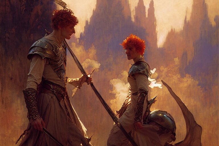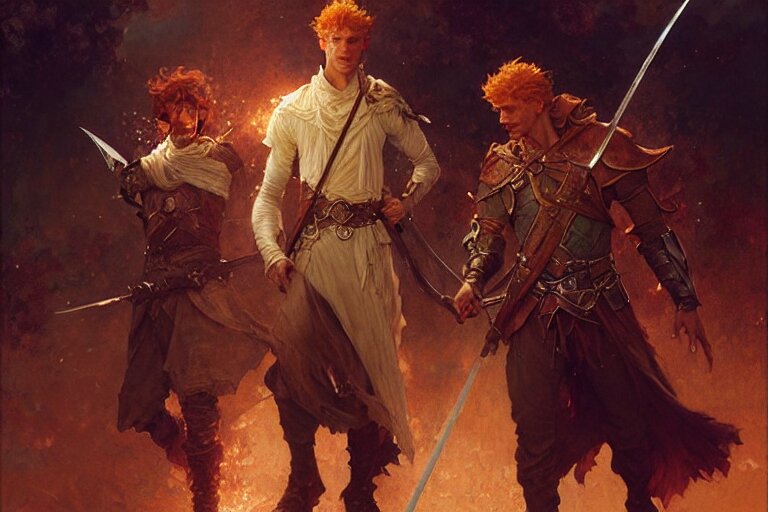 Kvothe and the chandrian, character design, painting by gaston bussiere, craig mullins, j. c. leyendecker, greg rutkowski, wotjek fus