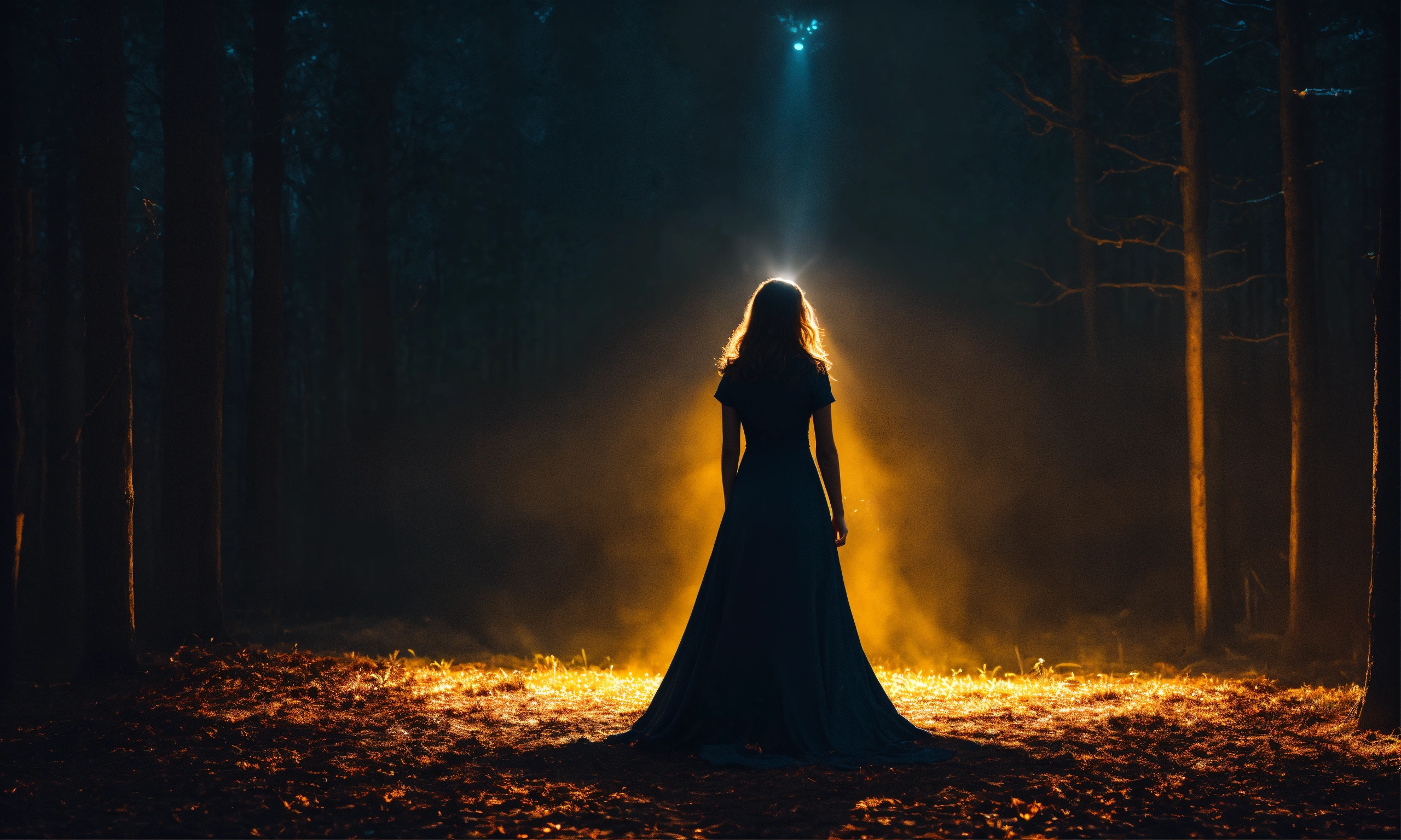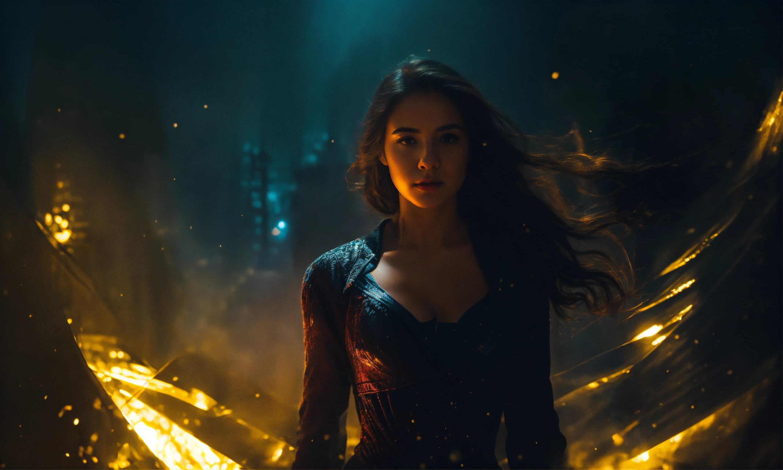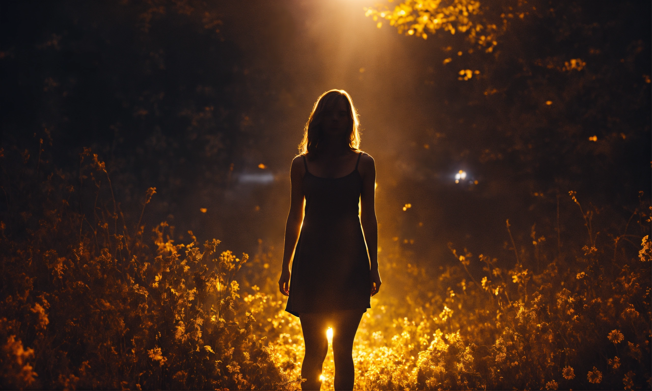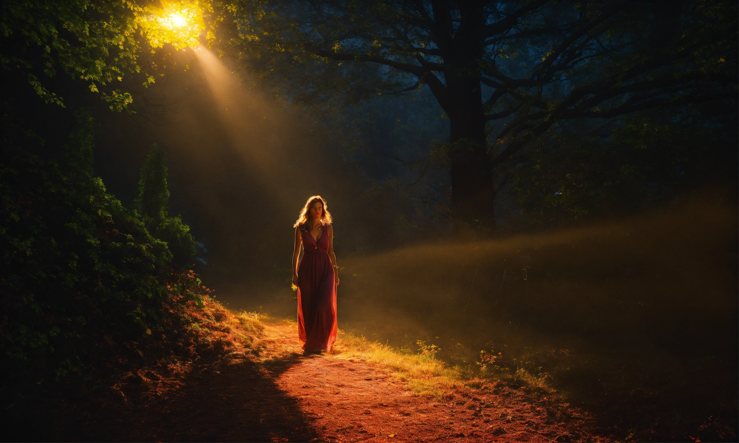 Create an image of a woman emerging from the darkness into the light