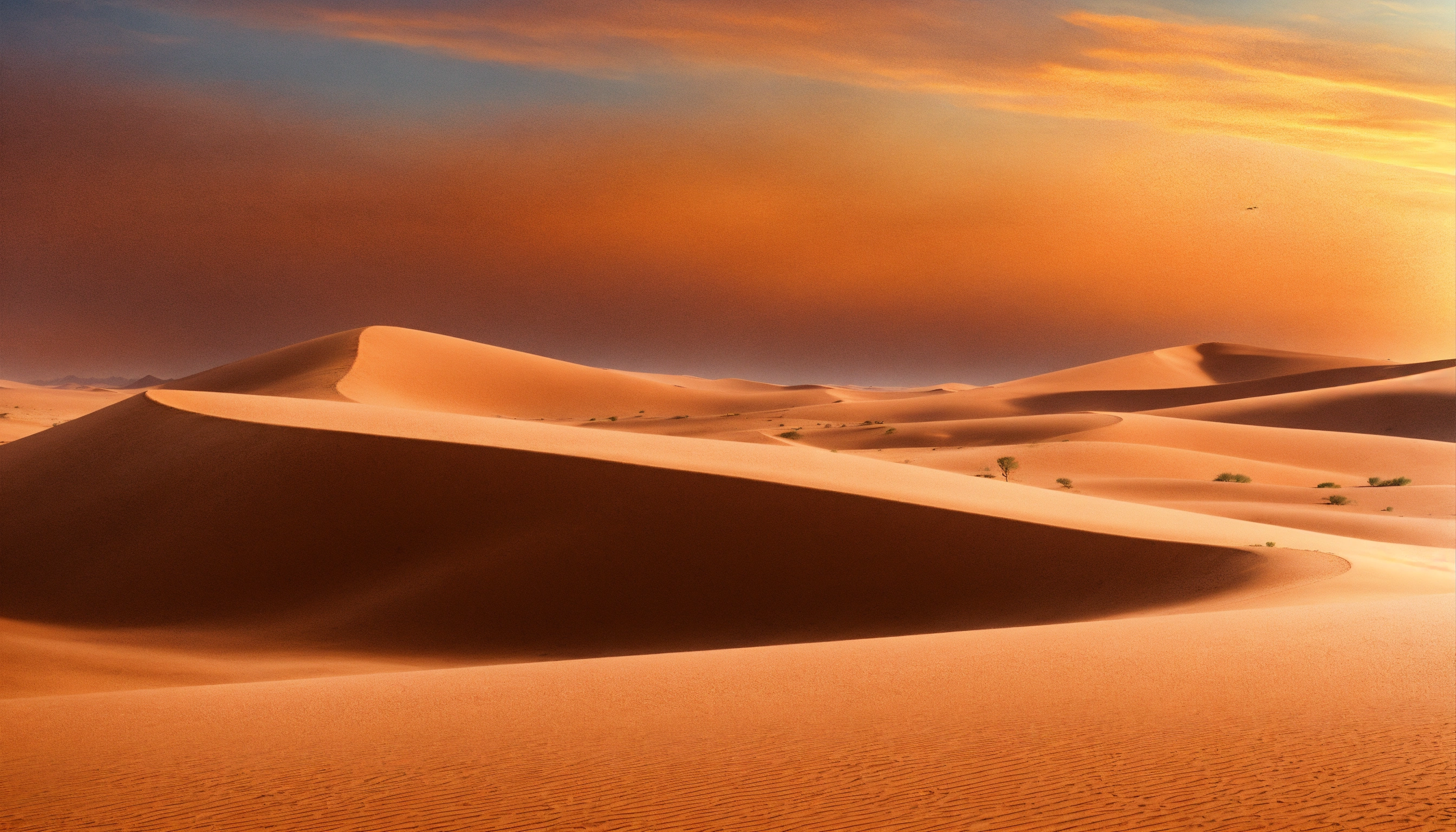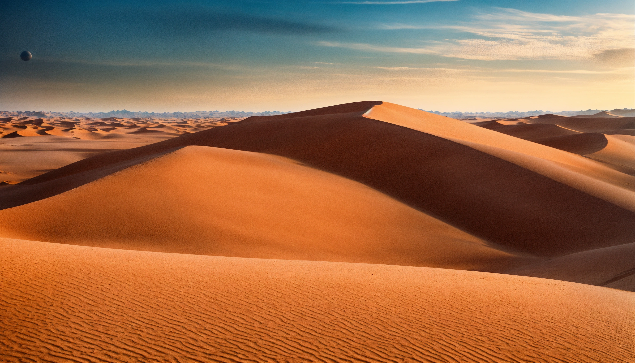 Plain desert background, like the movie dune, with reddish sand and small hints of blue in the sky, only 1/3 should be sand, the rest should be sky.