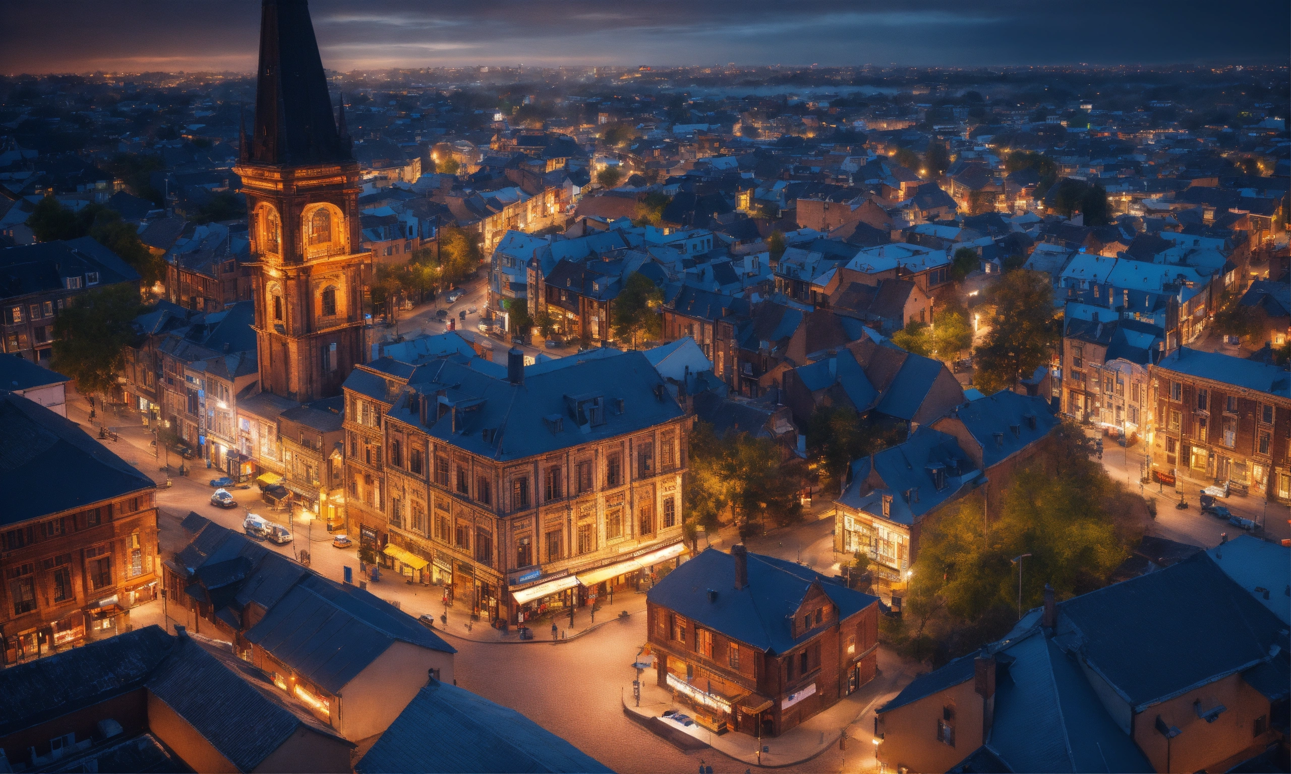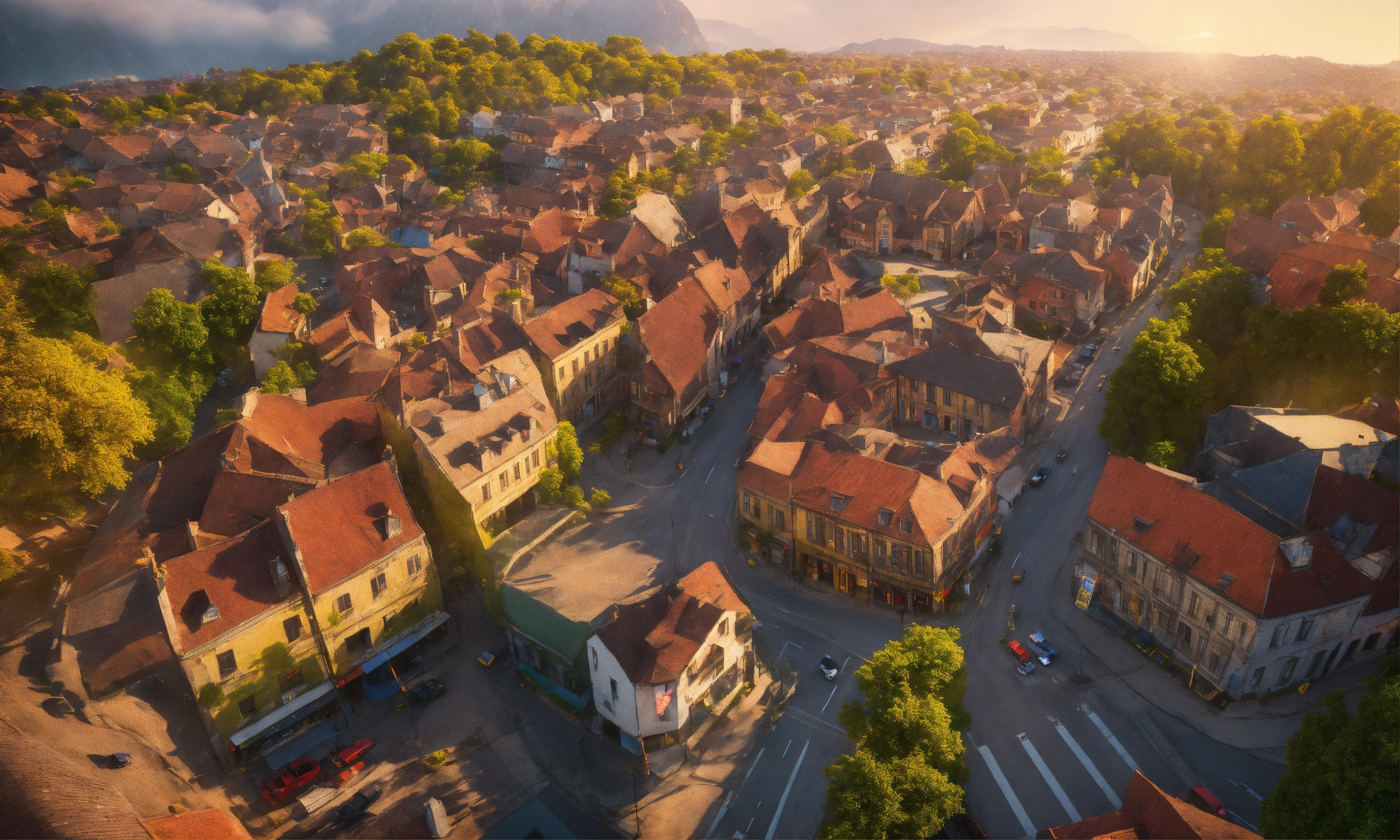 Town. creative dynamic composition varies the angle. landscape photography, taken by an expensive, very high-tech camera. eye-catching, enticing and captivating. photo product, ideal for poster promotion. 8k, hd quality, ultra realistic, hyper detailed. original idea taken from a different angle.