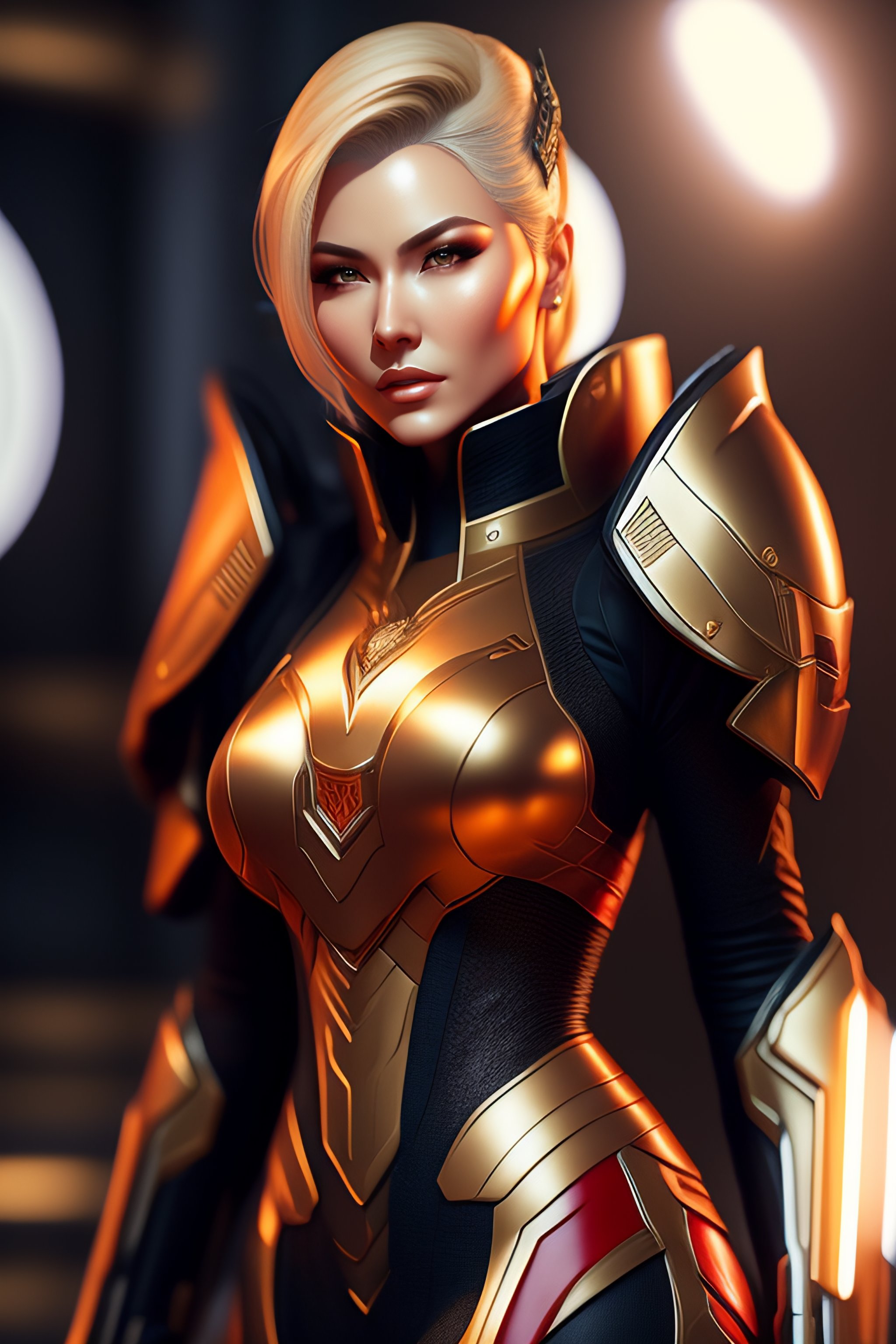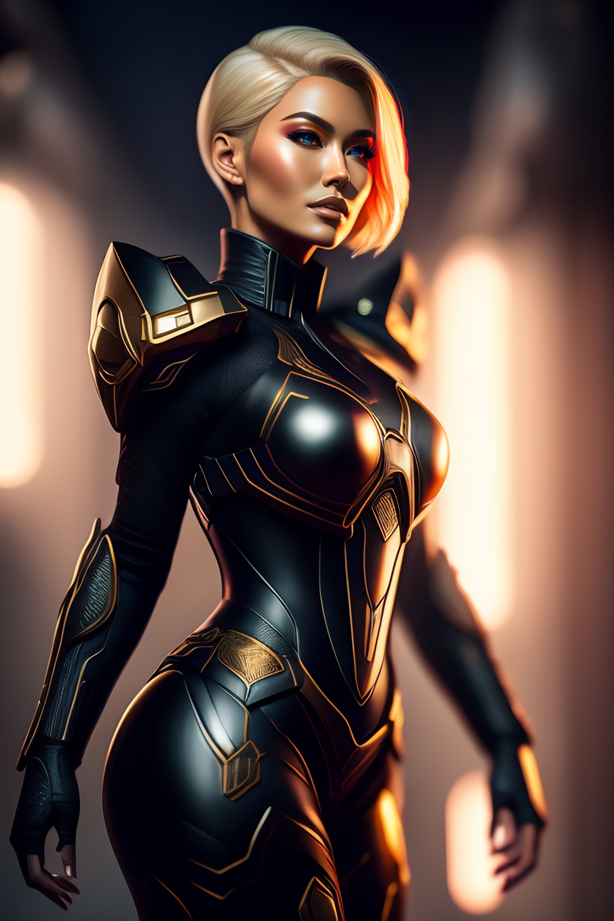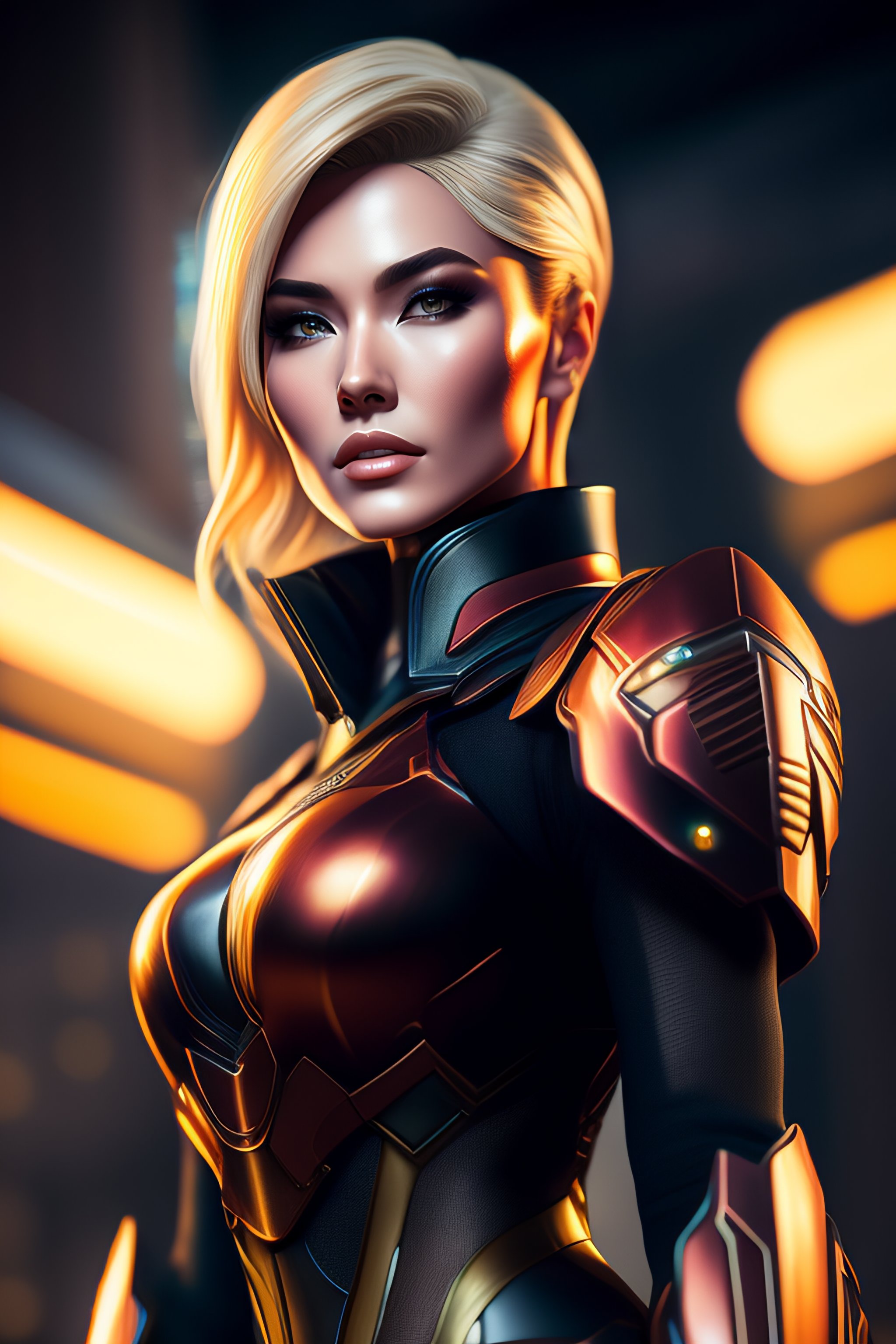 A combination of ada wong with blonde hair wearing master chief's armor from halo, high tech, action shot, angular, full body portrait, futuristic, dramatic, fantasy, intricate, elegant, highly detailed, digital painting, artstation, concept art, matte, sharp focus, illustration, 8k, art by artgerm and greg rutkowski and wlop, dramatic lighting, extremely detailed, intricate detail, cinematic, photoreal