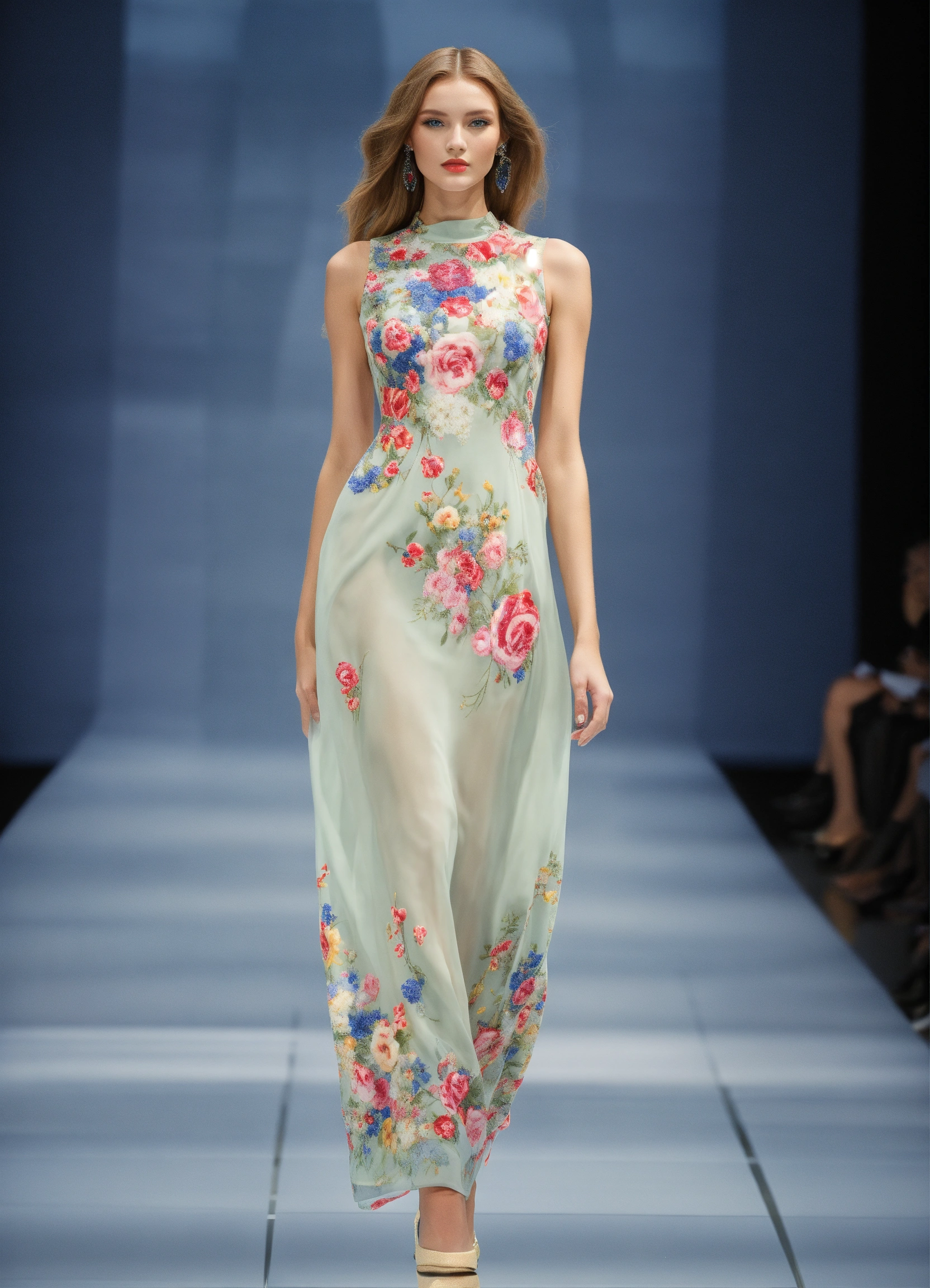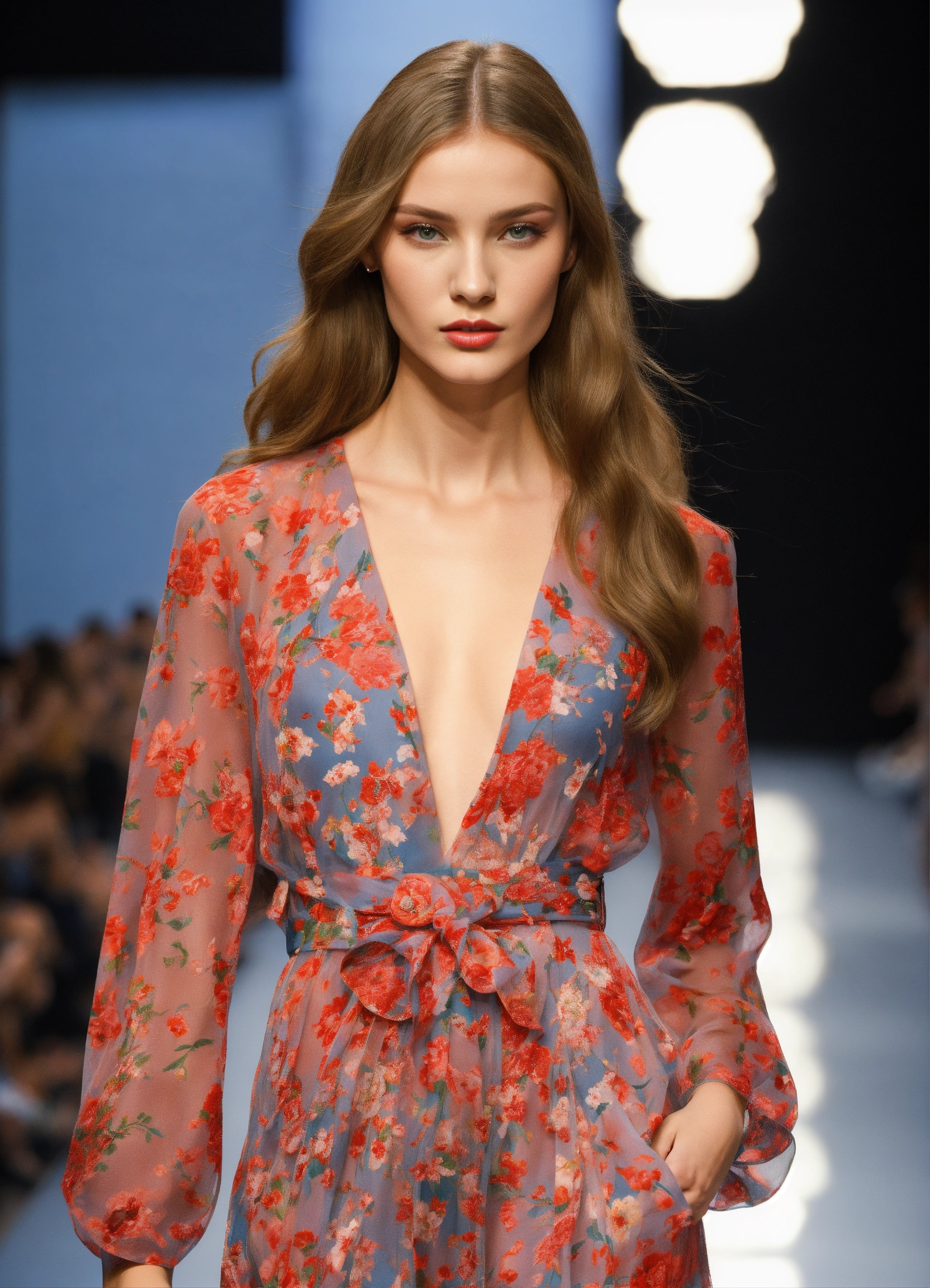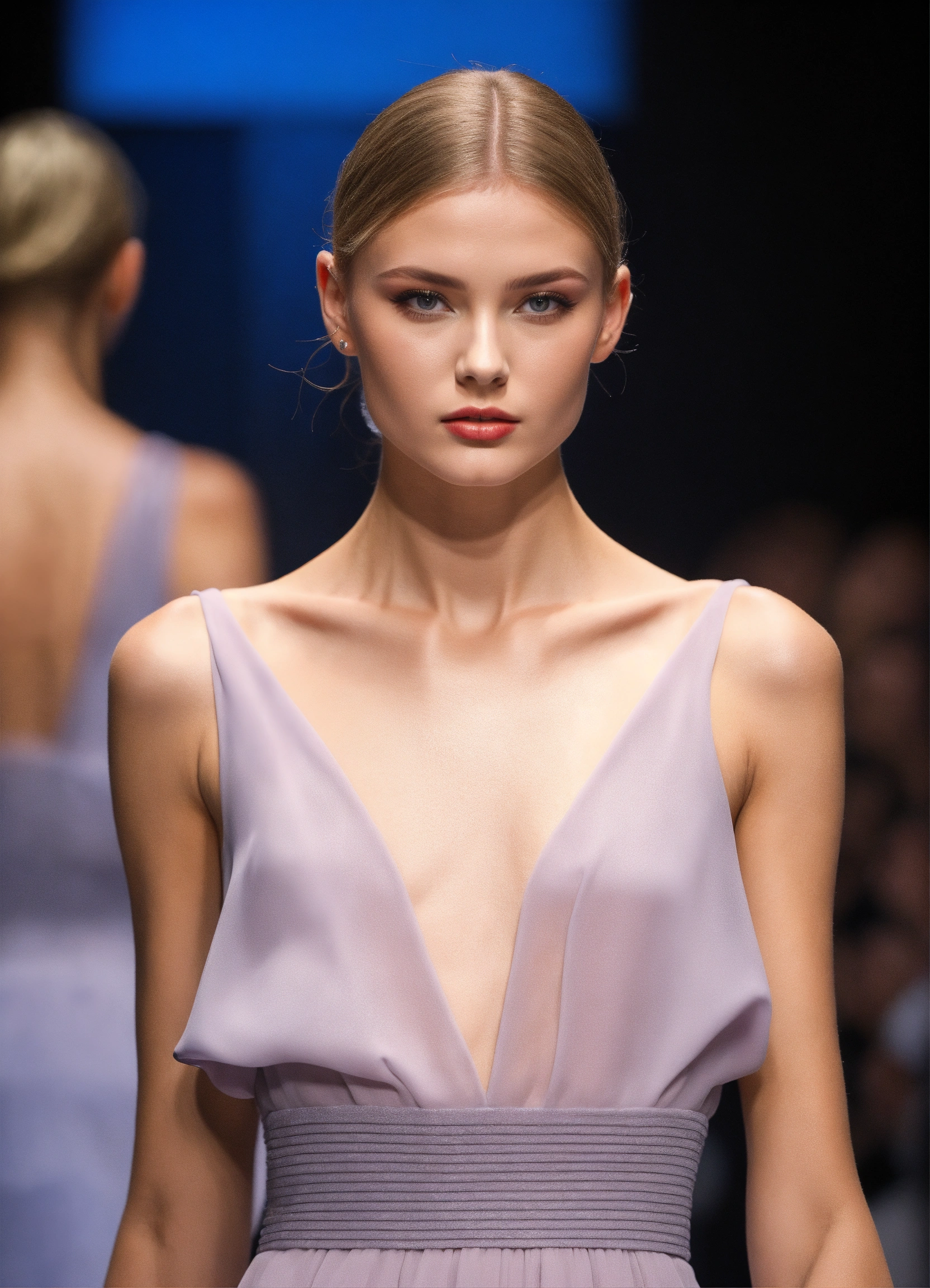 Beautiful ukrainian fashionmodell in a dress giorgio armani style on the catwalk