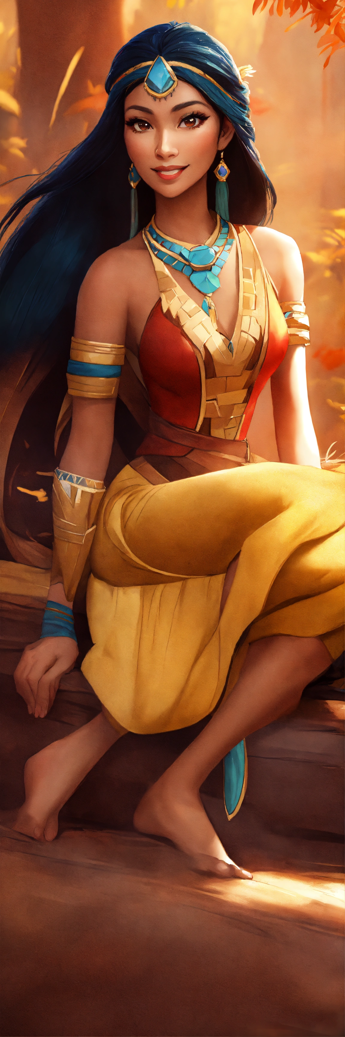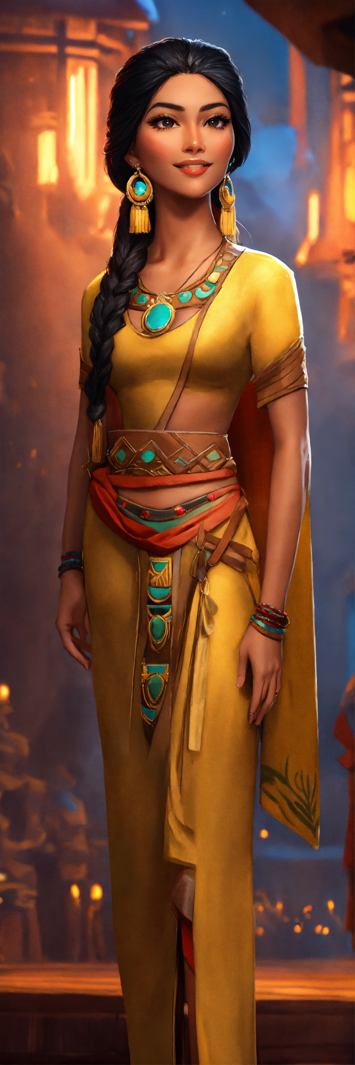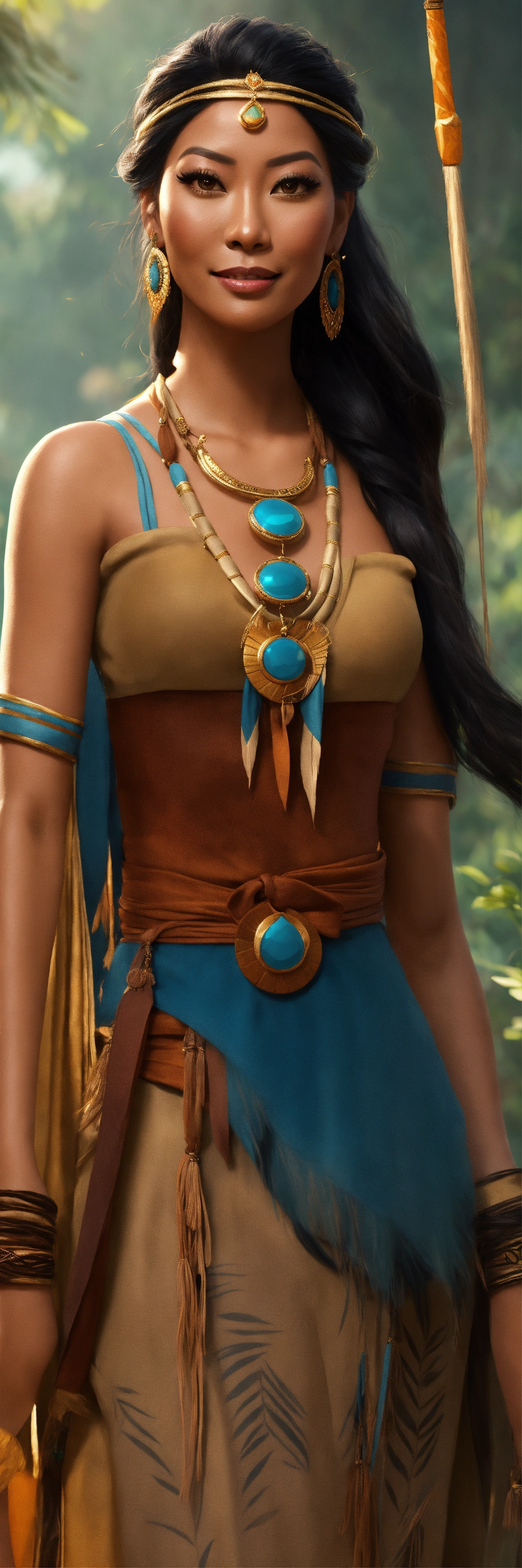 Nickole scherzinger as pocahontas, maya princess, vietnamese, digital painting, artstation, cg art, elegant, highly detailed, sharp focus, full body, smiling, big eyes, wearing maya costume, art by sun khamunaki, virtual painted