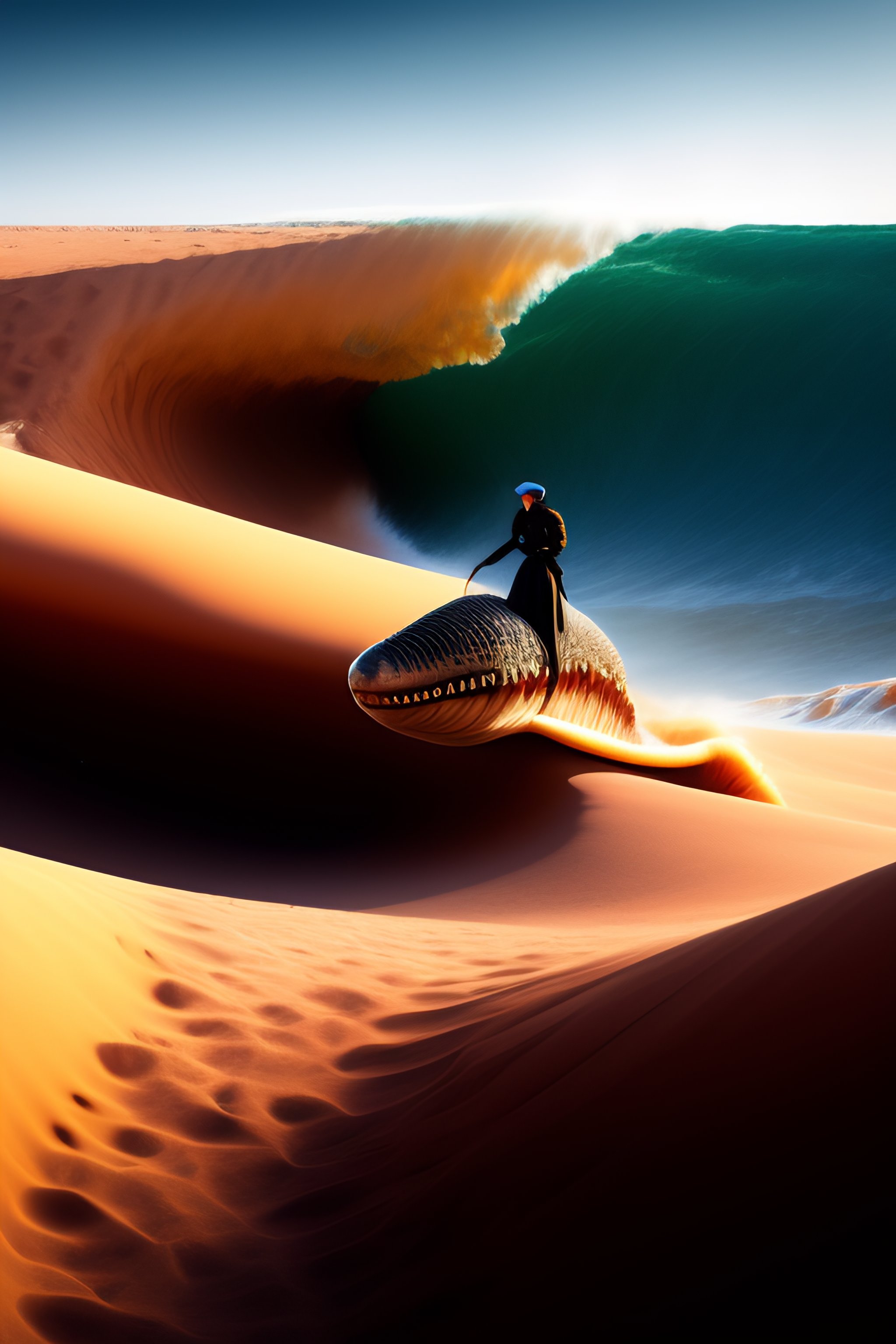 Paul atreides riding a sandworm