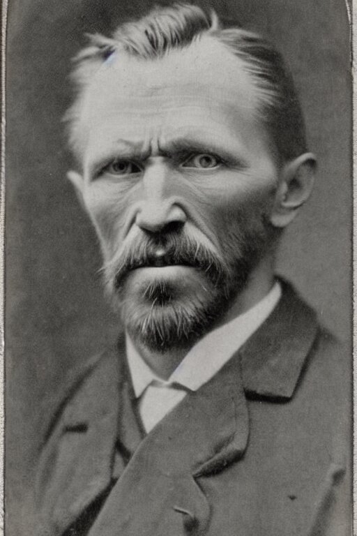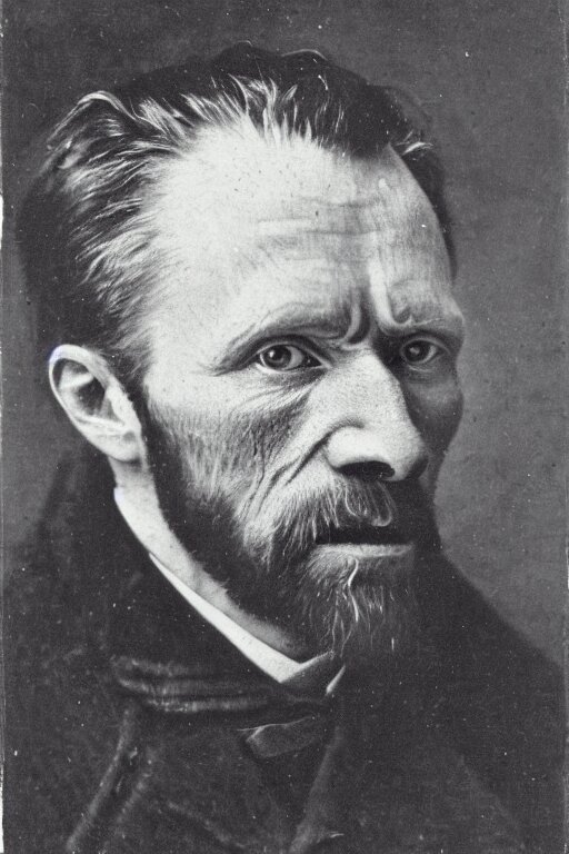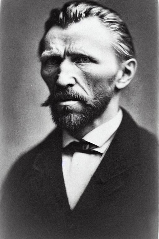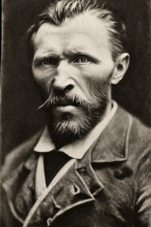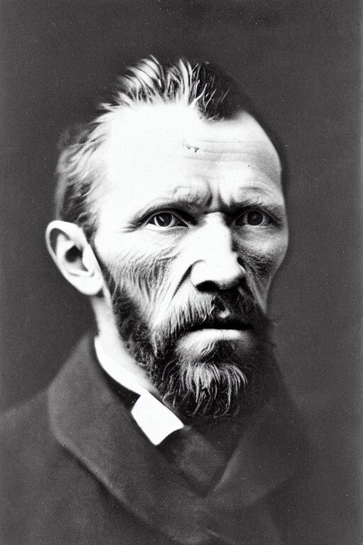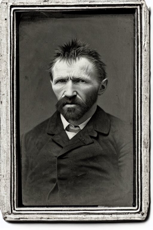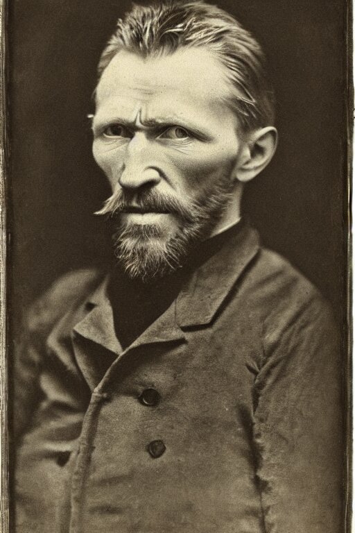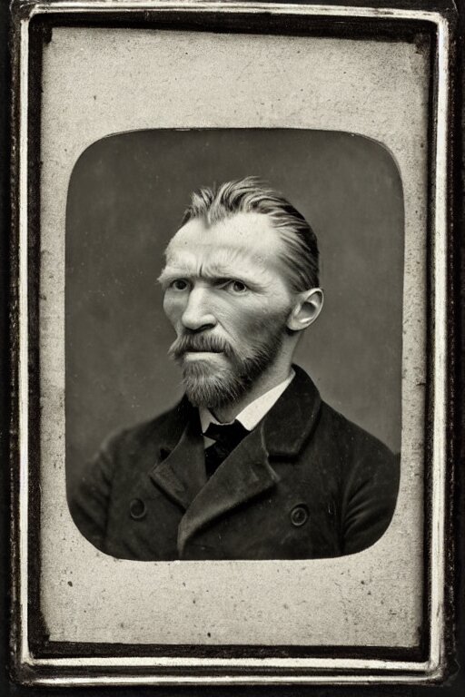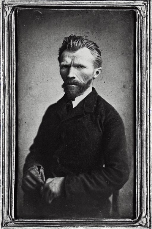 A 1 8 7 0 dark, monochrome, glass negative, silver gelatine realistic, supersharp, supersharp, realistic, photographic daguerreotype portrait of vincent van gogh with cosed eyes, shallow depth of field