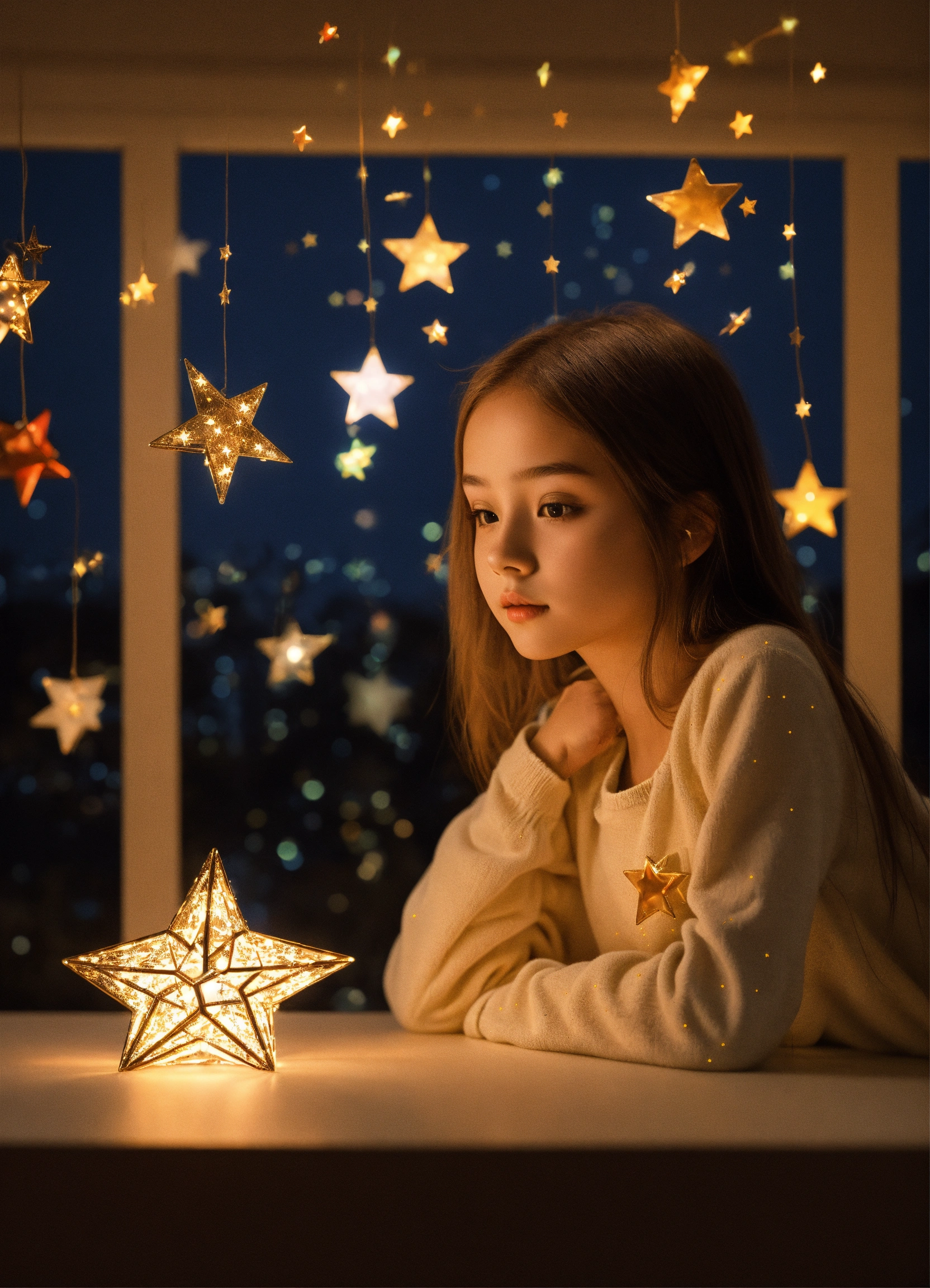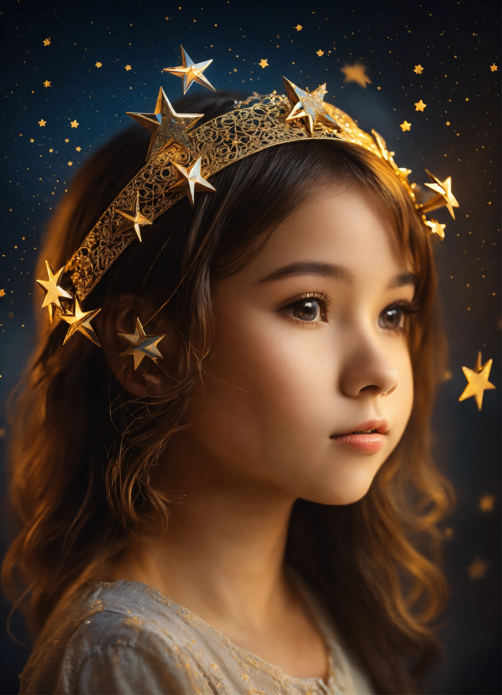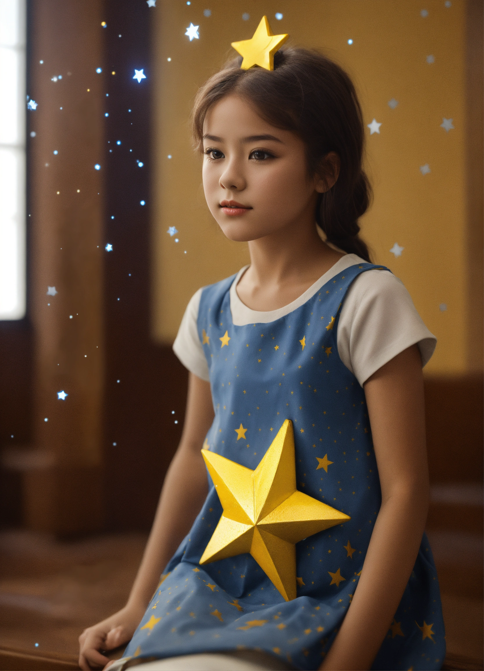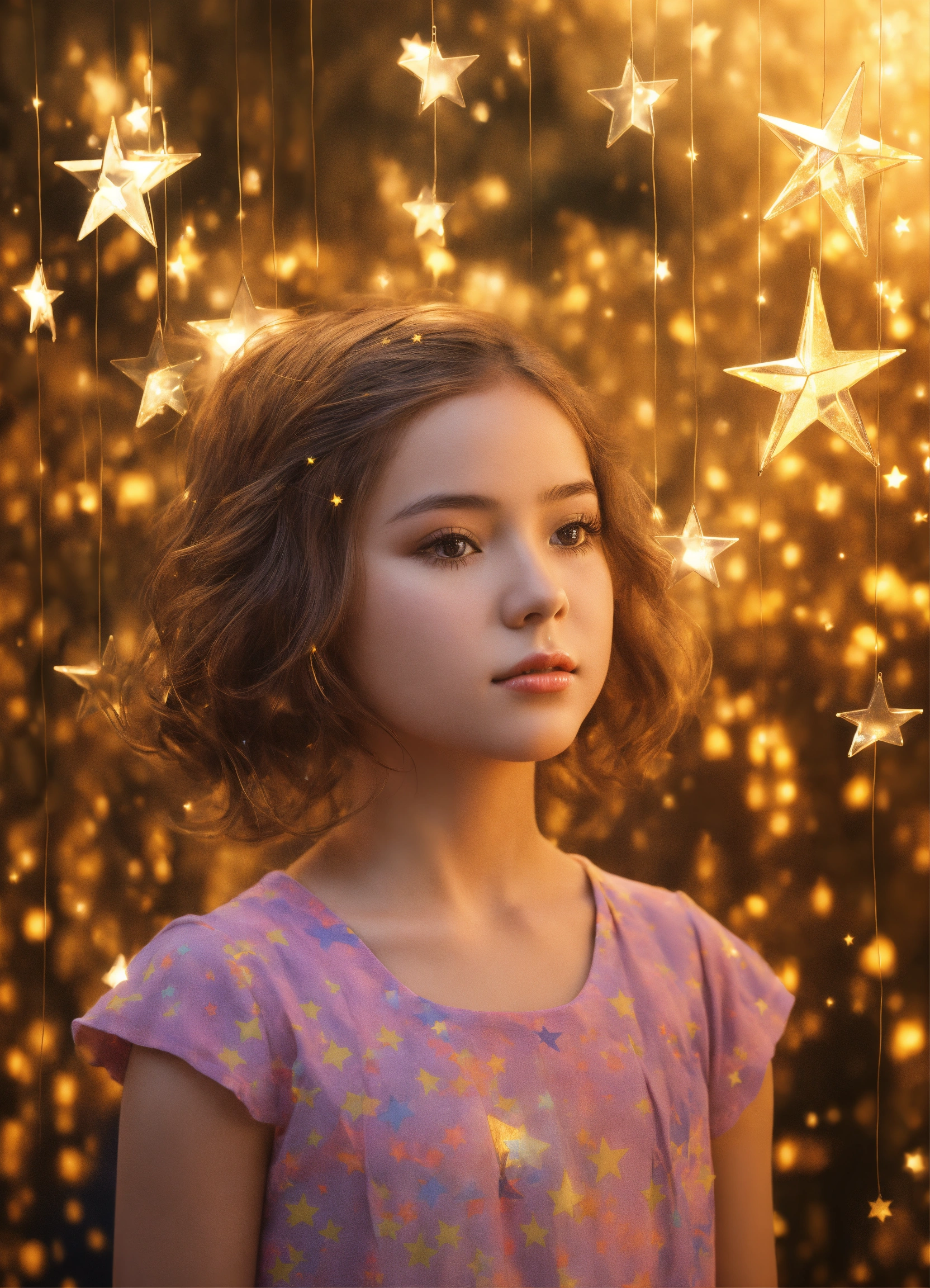 Young girl with two stars 3d art
