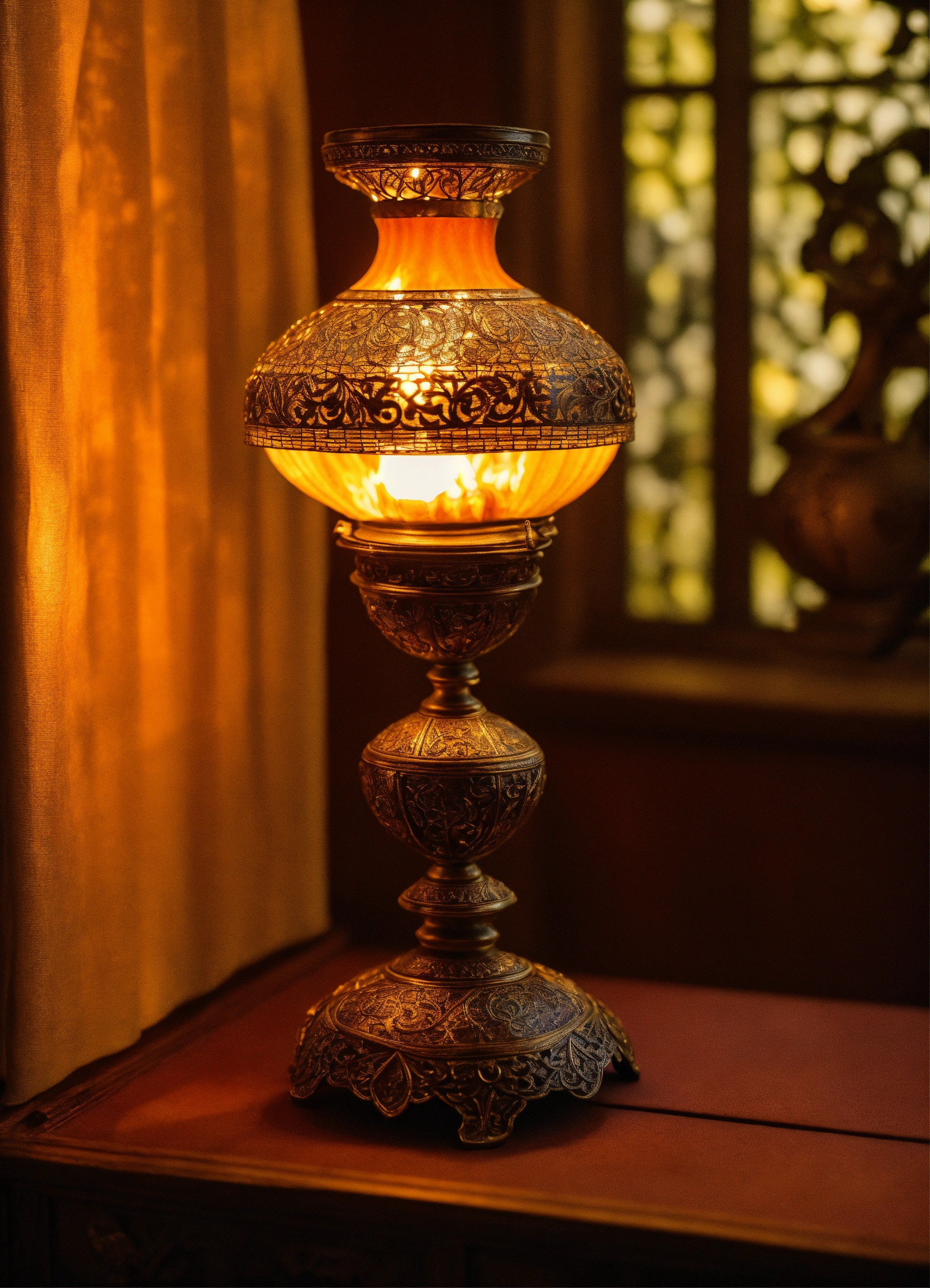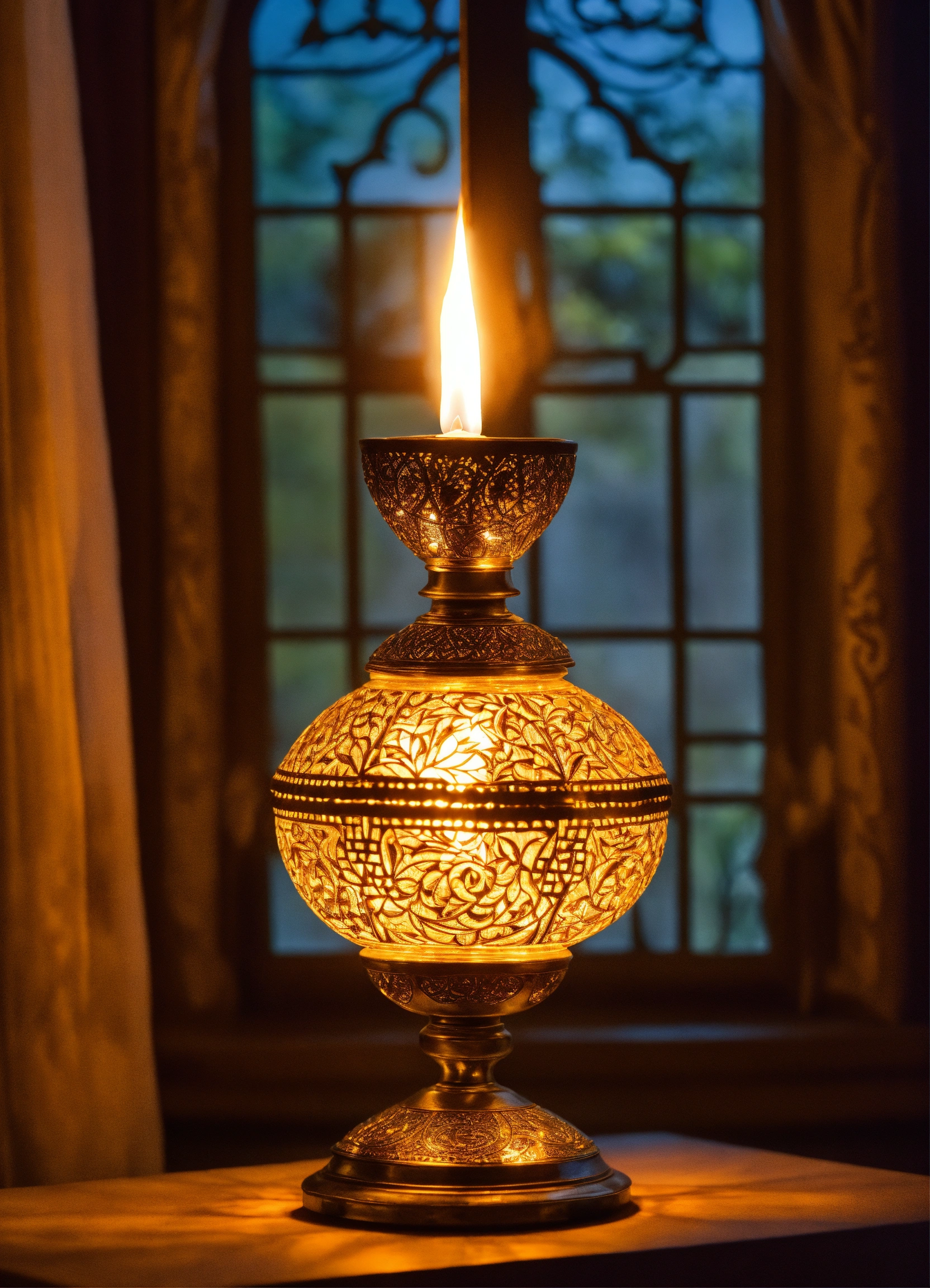 The image showcases a beautifully crafted oil lamp, reminiscent of the ner tamid, a symbol of eternal light in jewish tradition. the lamp is adorned with intricate designs and delicate details, exuding a sense of reverence and spirituality. the flame within the lamp radiates a warm and steady glow, representing the persistence of the jewish soul. the surrounding environment is dimly lit, emphasizing the significance of the lamp's flame. the composition focuses on capturing the interplay of light and shadow, evoking a sense of tranquility and connection to the divine. the overall mood is one of unwavering faith and the enduring nature of the jewish spirit.