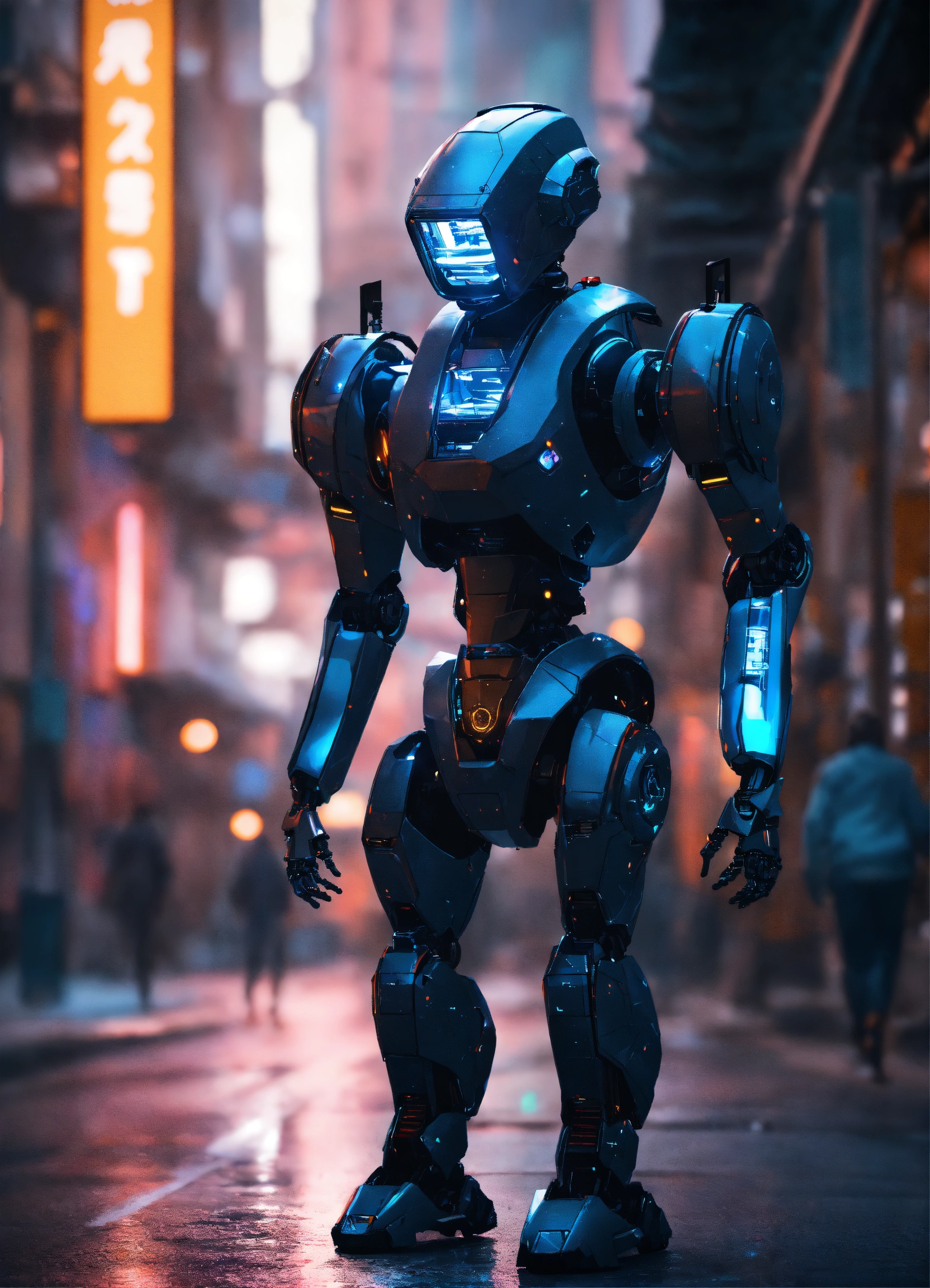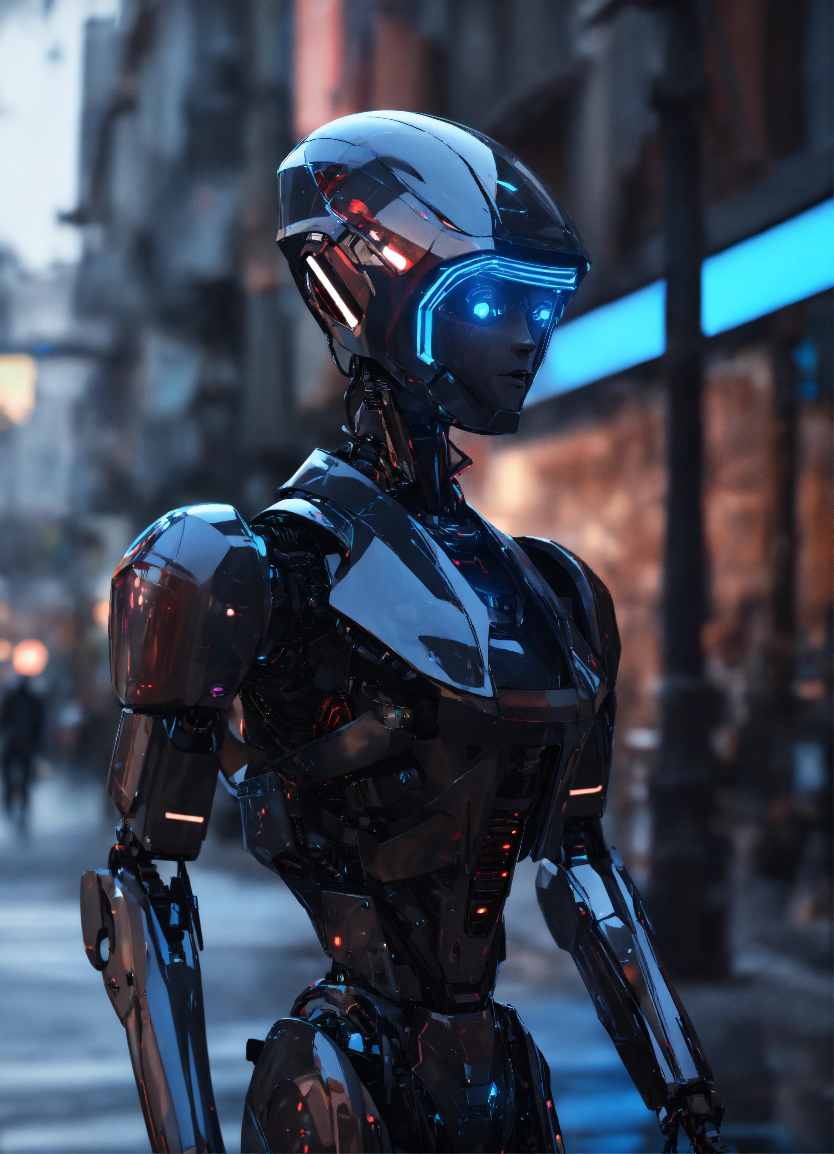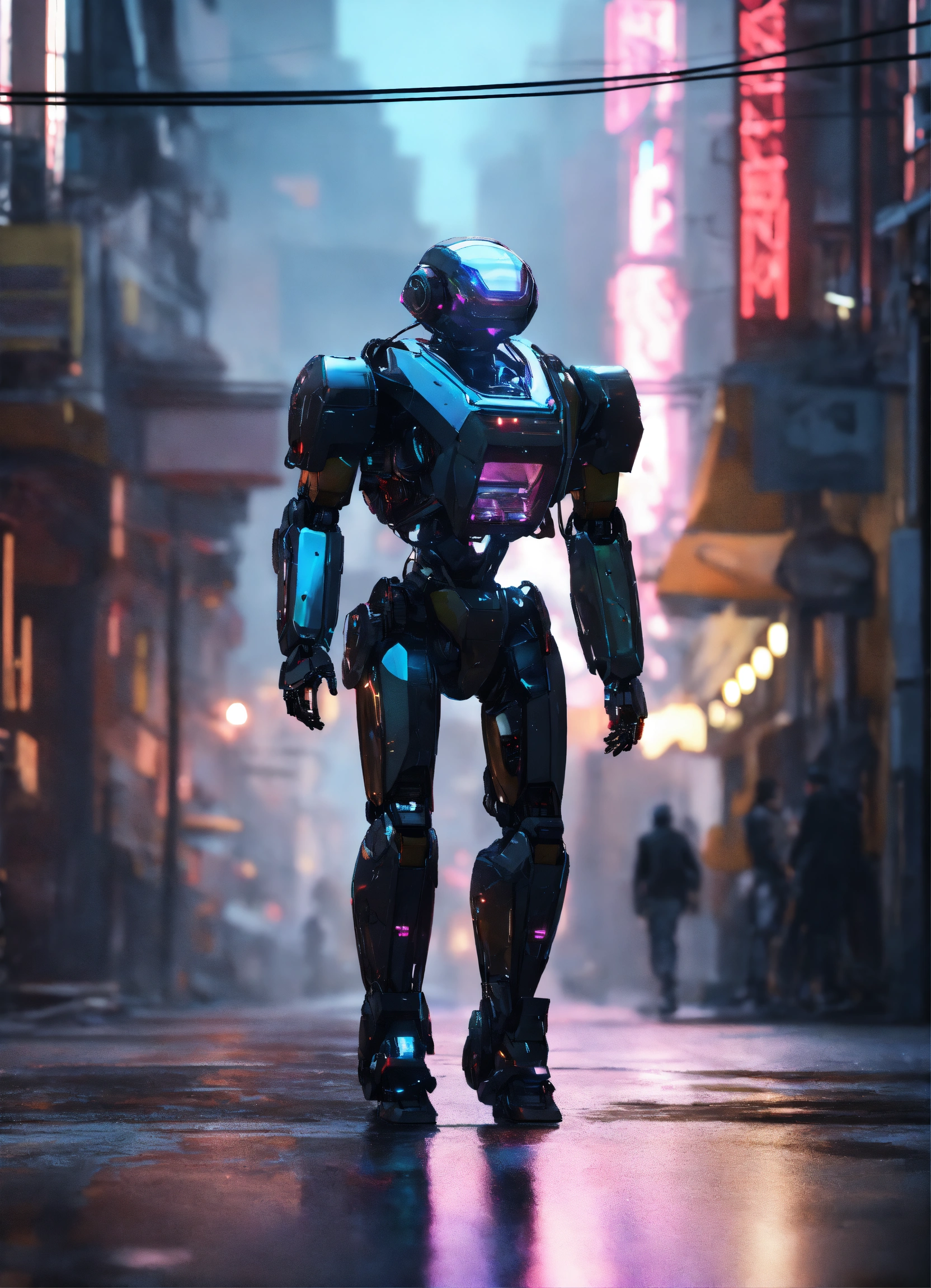 Dark aesthetic, a (translucent polycarbonate sci-fi robot) walking down the street, polycarbonate frame, stunning unreal engine render, 8k environment