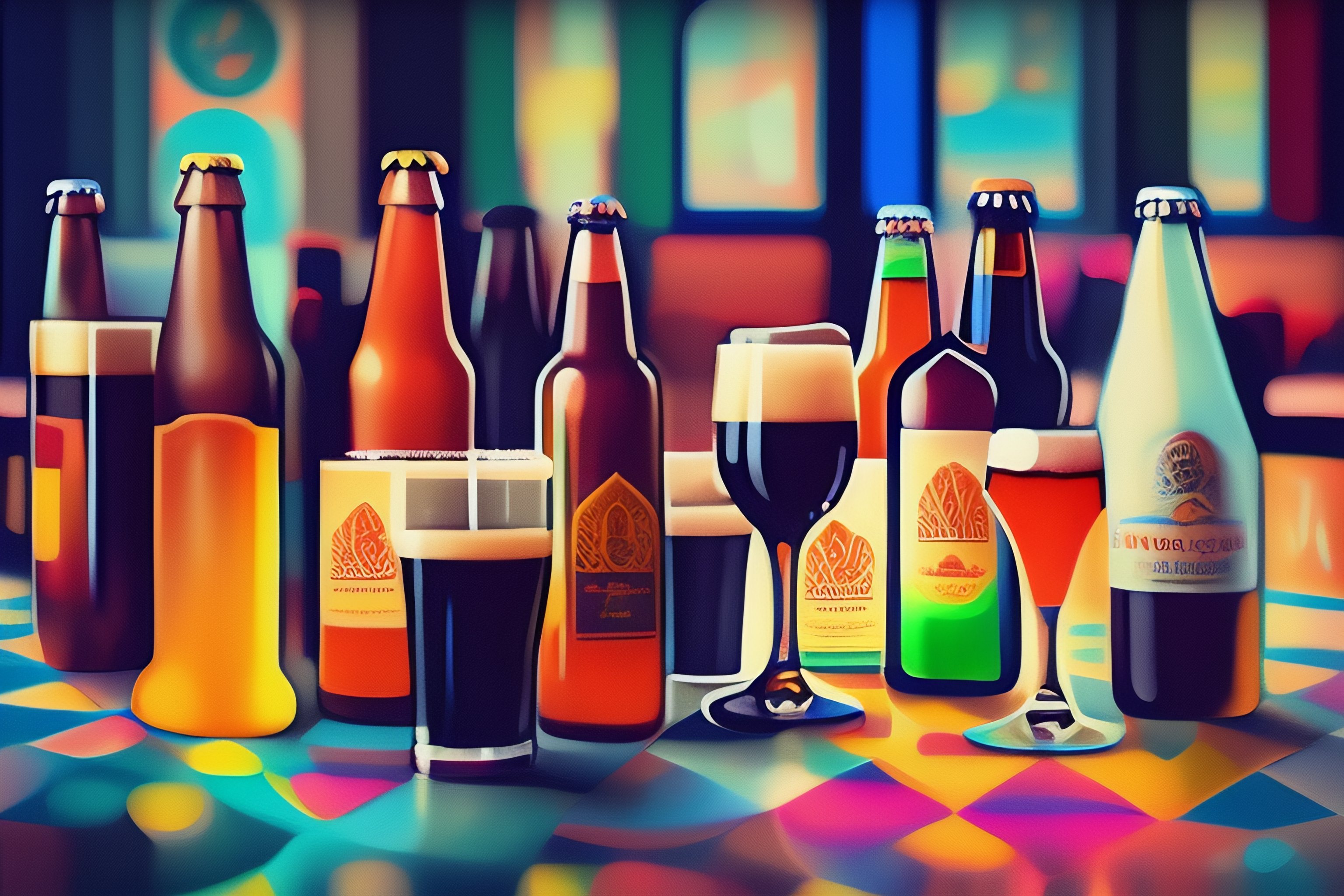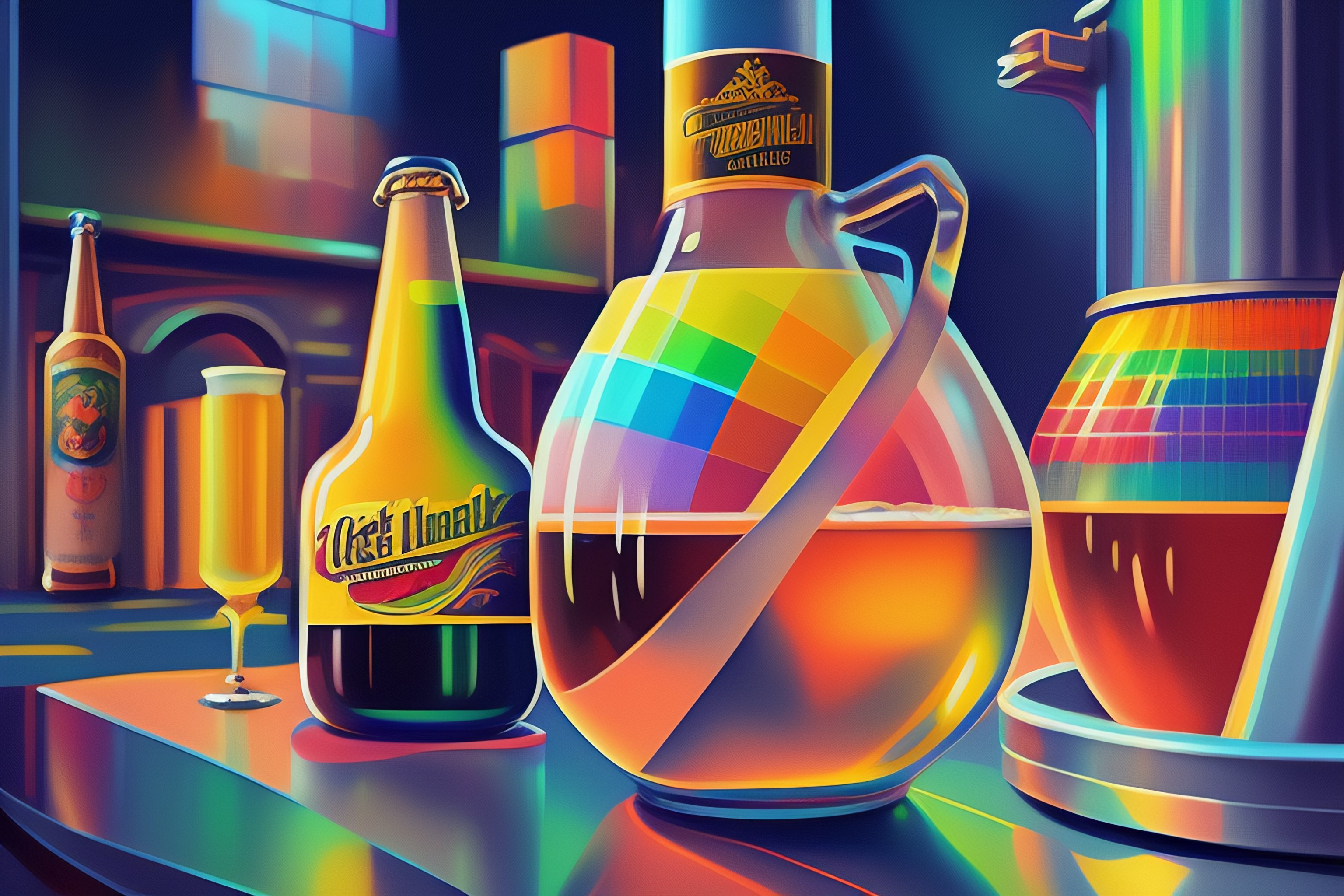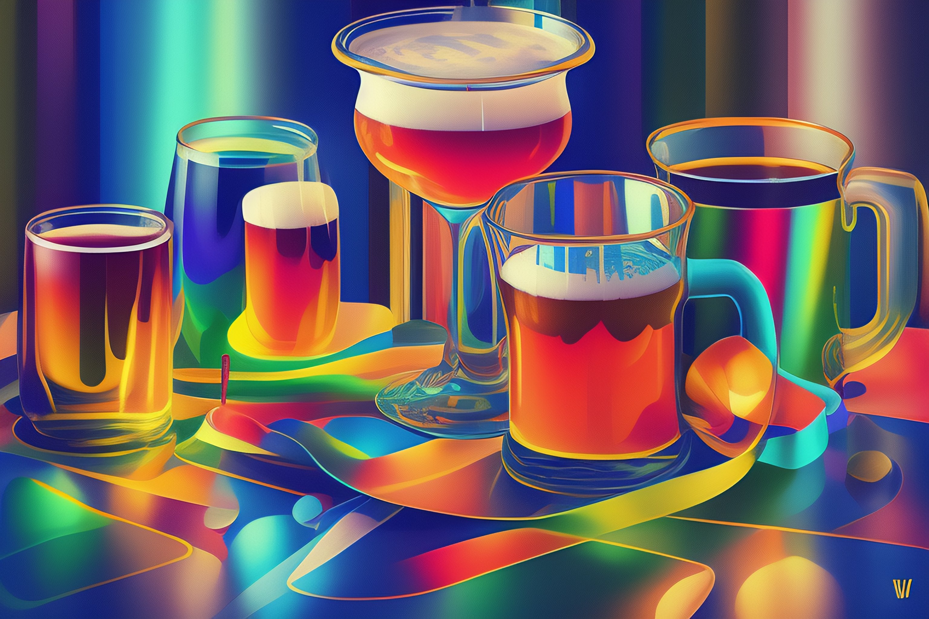 Beer cheers, rainbow color, abstract art, in the style of david lynch, by wes anderson, concept art, artstation