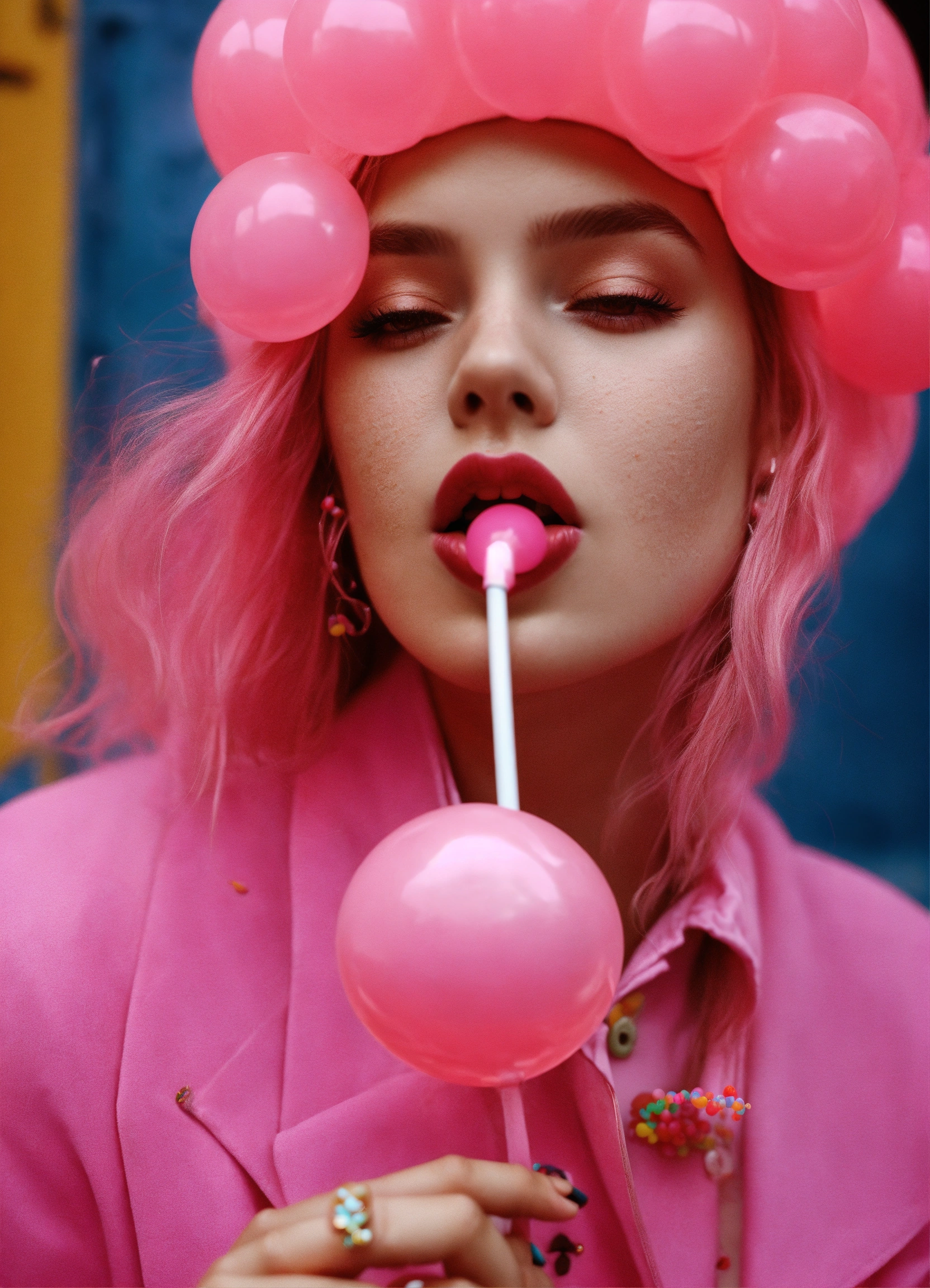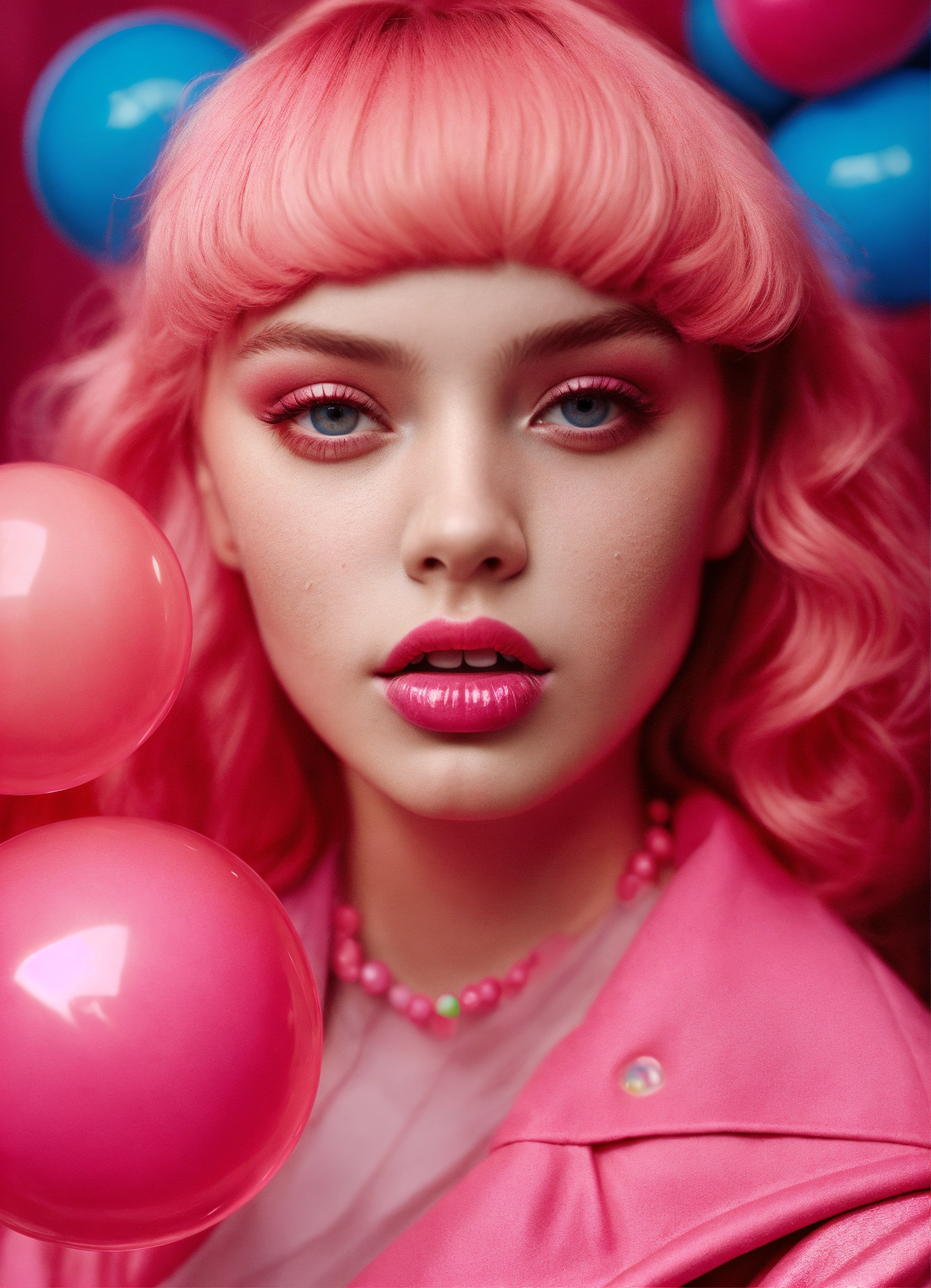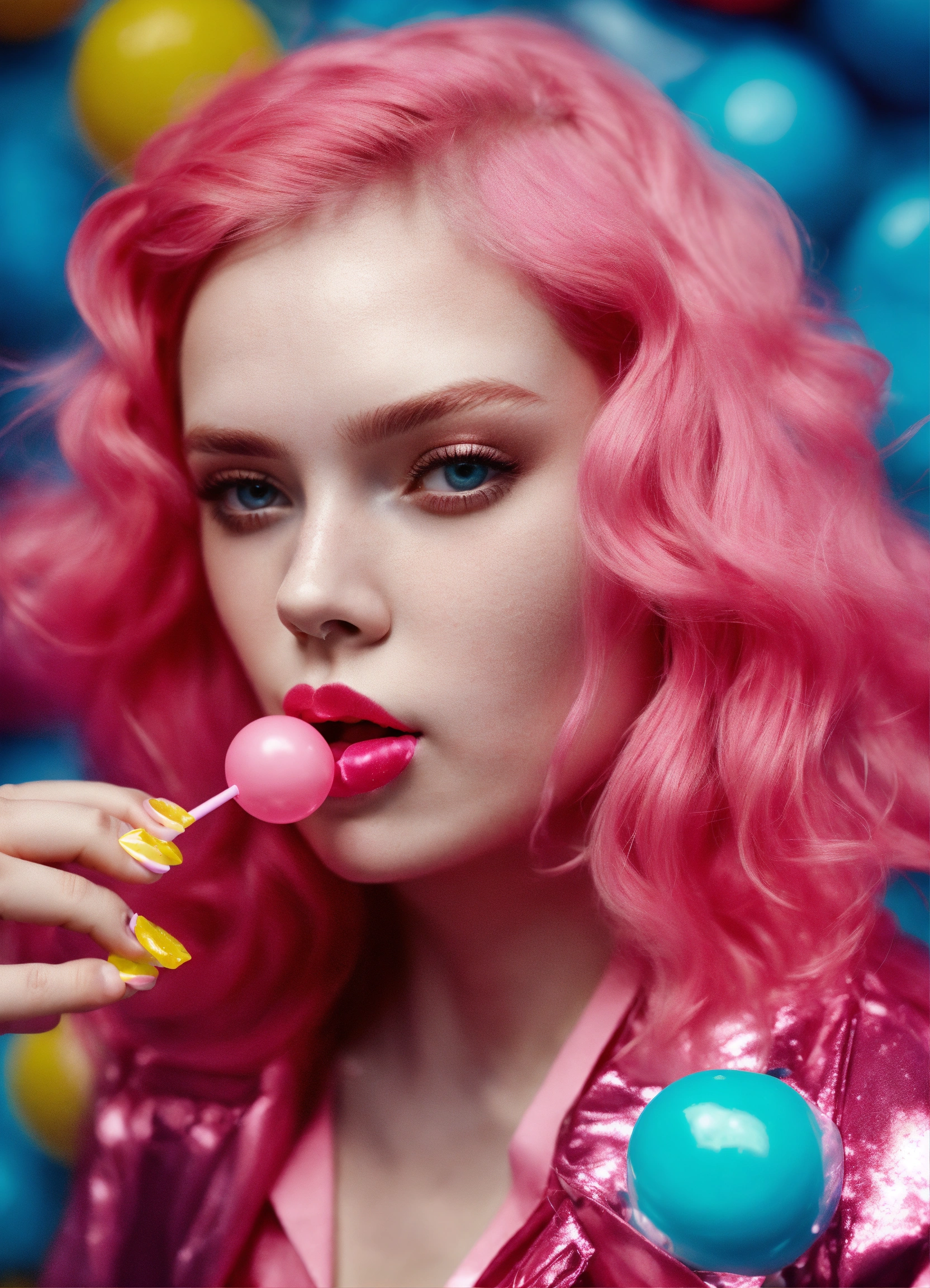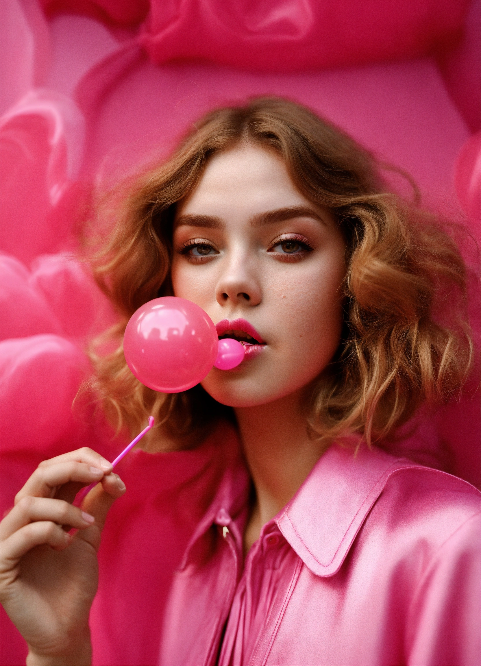 Beautiful girl blowing bubblegum pop style