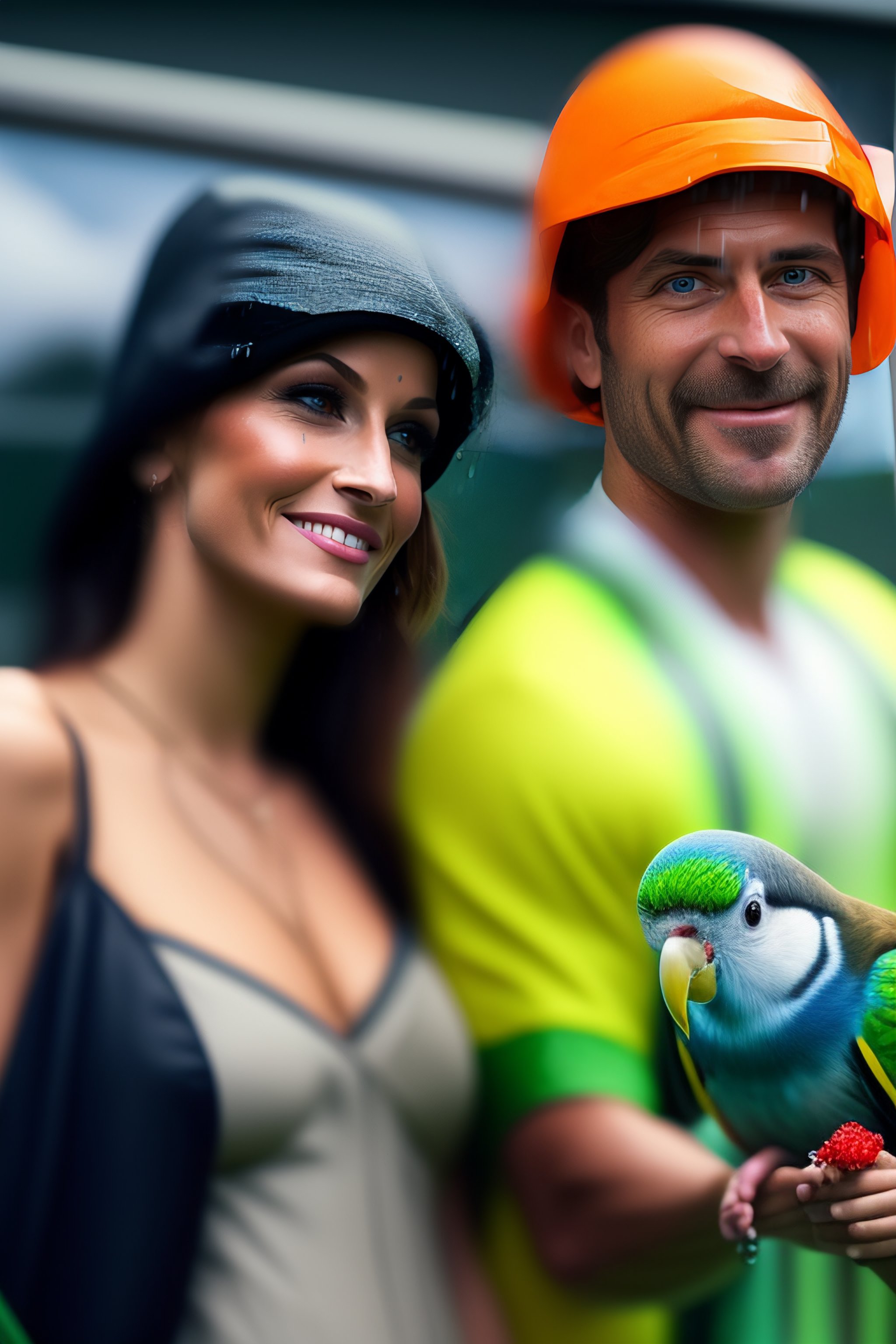 Please create a storyboard for a 30 second mini-commercial in which two parakeets named niko and lora give the weather forecast and announce that it is going to rain soon, be sure to include scenes of niko and lora on a television studio set, use funny and creative dialogue to make the ad entertaining and memorable for the audience, remember that the ultimate goal is to motivate people to take steps to protect themselves from the rain