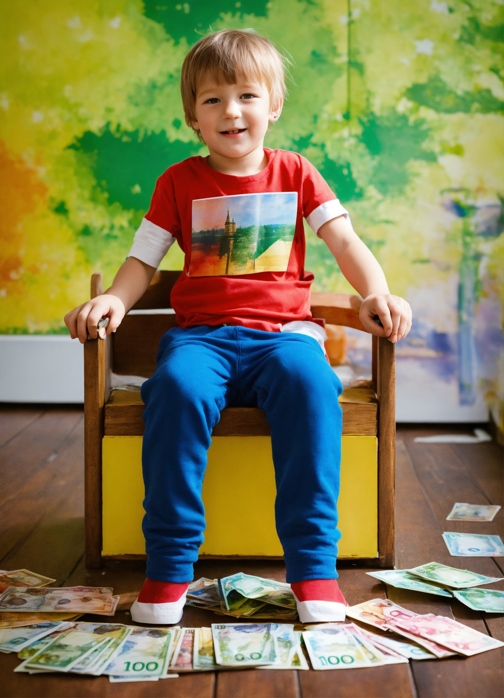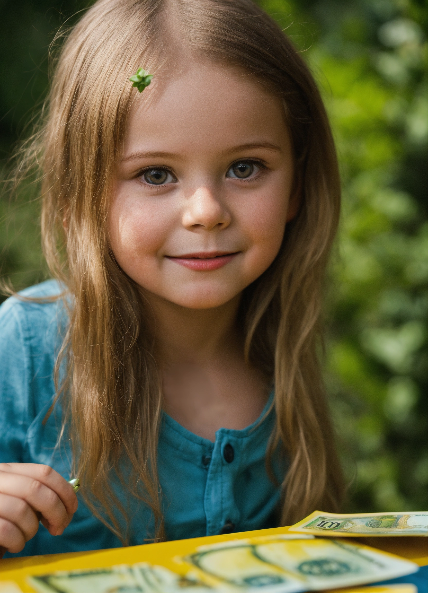 Ein kind deckt sich mit einem 100 euro schein zu