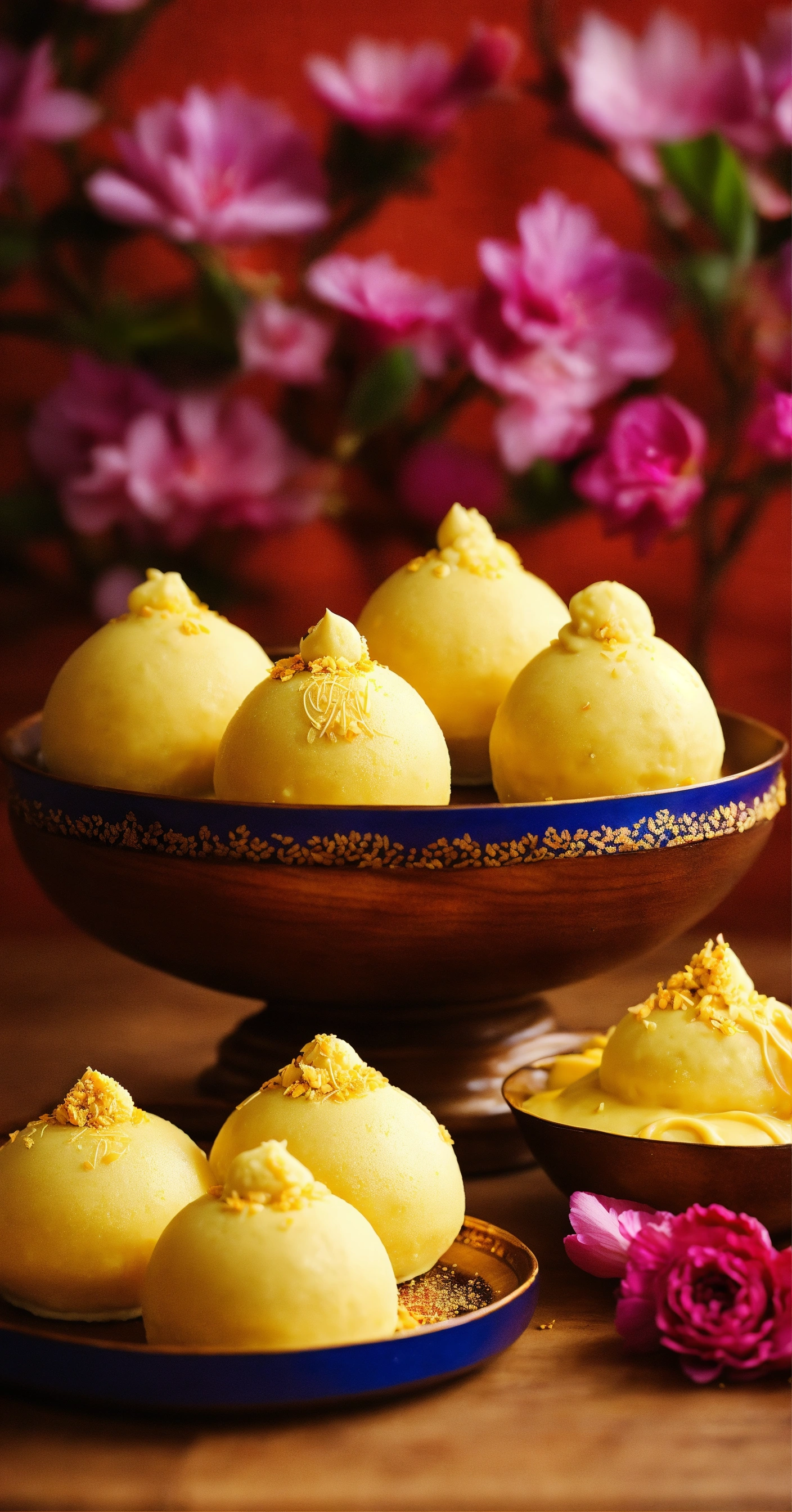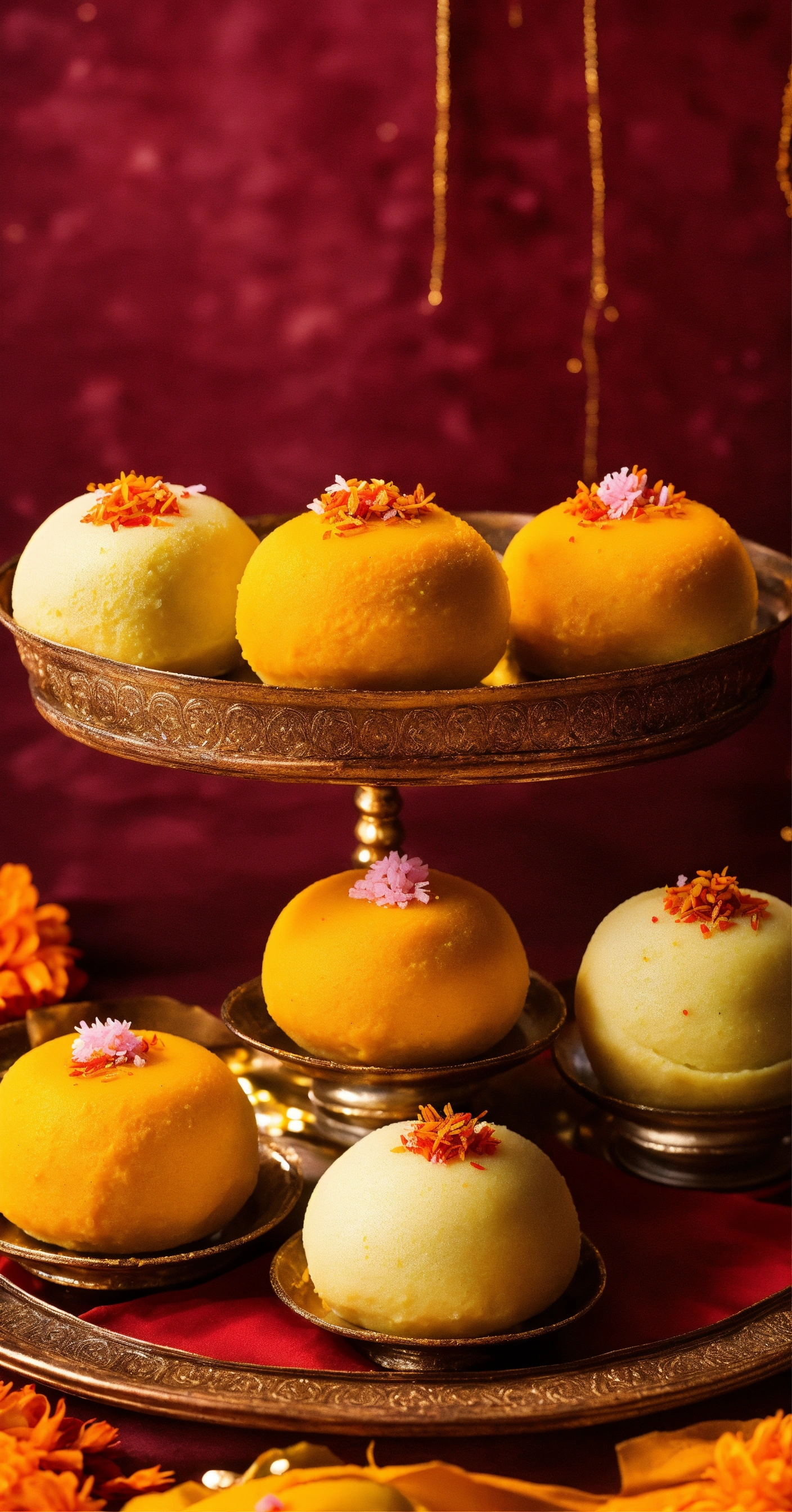 Create an instagram-worthy display of rasmalai 1, use a rustic wooden or pastel backdrop, 2, arrange sweets on a decorative tray with golden accents, 3, highlight "rasmalai" in the center with saffron strands, 4, add symmetry with more "rasmalai" around, 5, give variety and height with "rasmalai rolls, " 6, place "rasmalai" at the base for balance, 7, sprinkle saffron strands and have a saffron bowl, 8, ensure good lighting and capture from a slight overhead angle, 9, use warm colors in the background or props for a harmonious feel, this setup will make your rasmalai instagram-ready and visually appealing