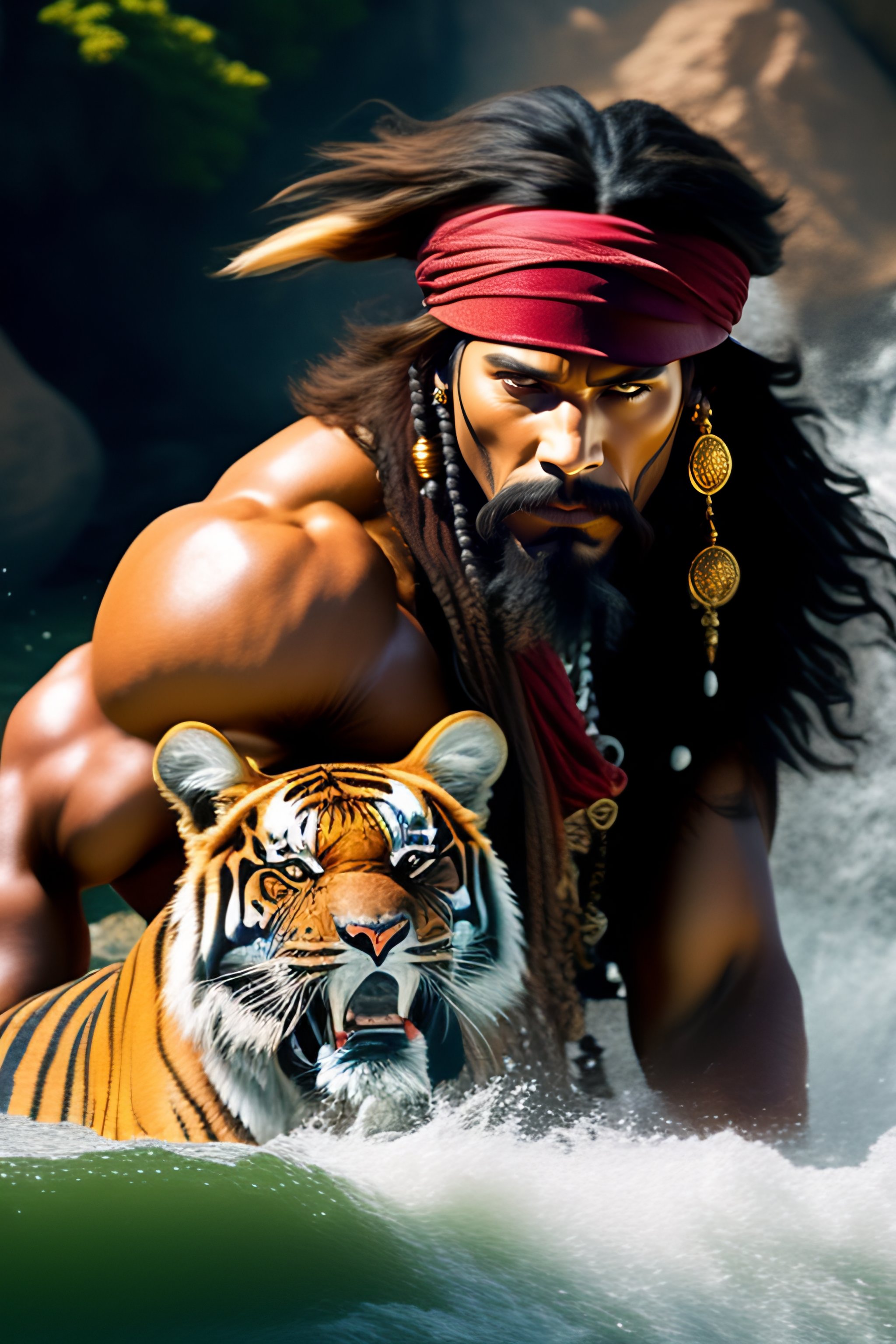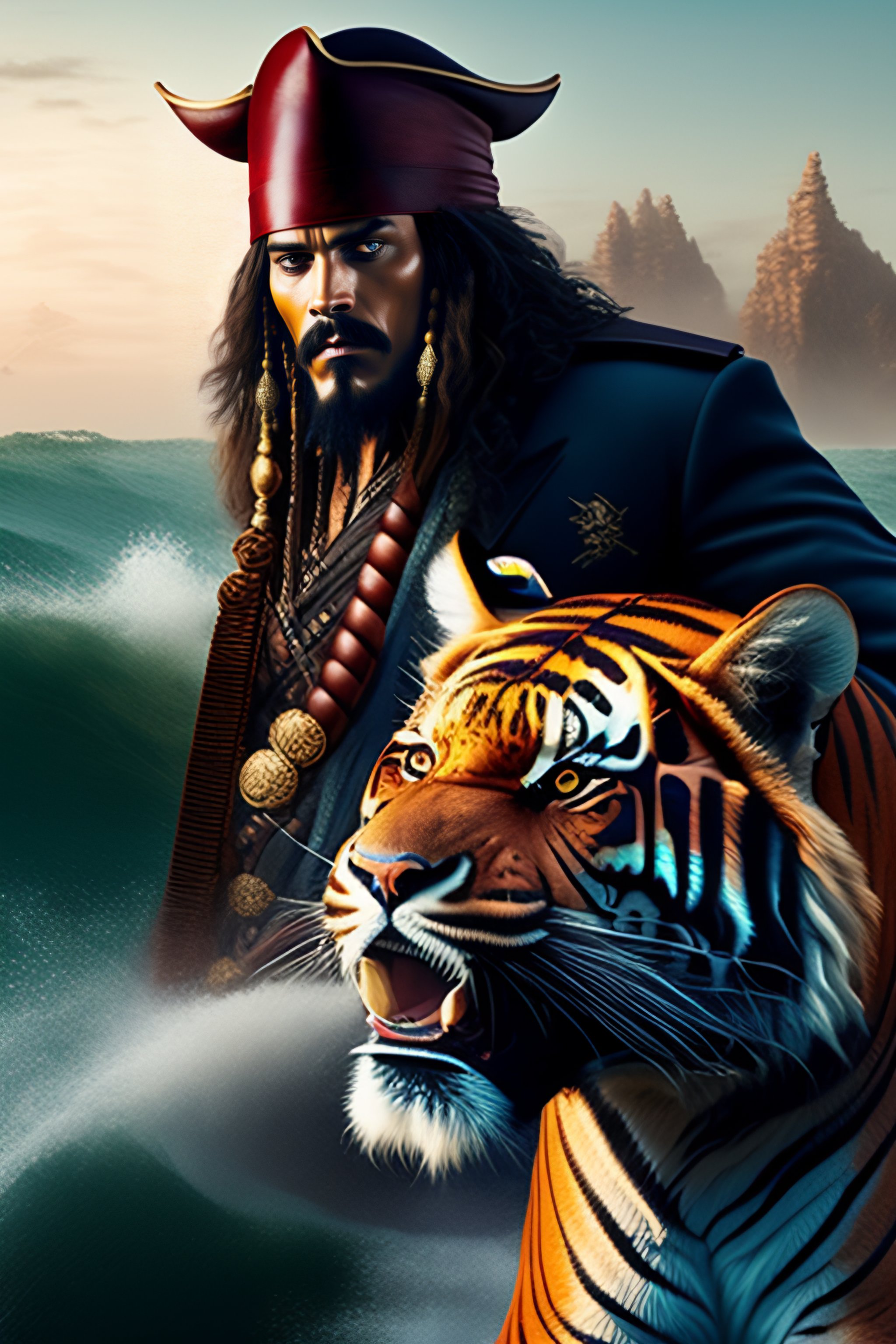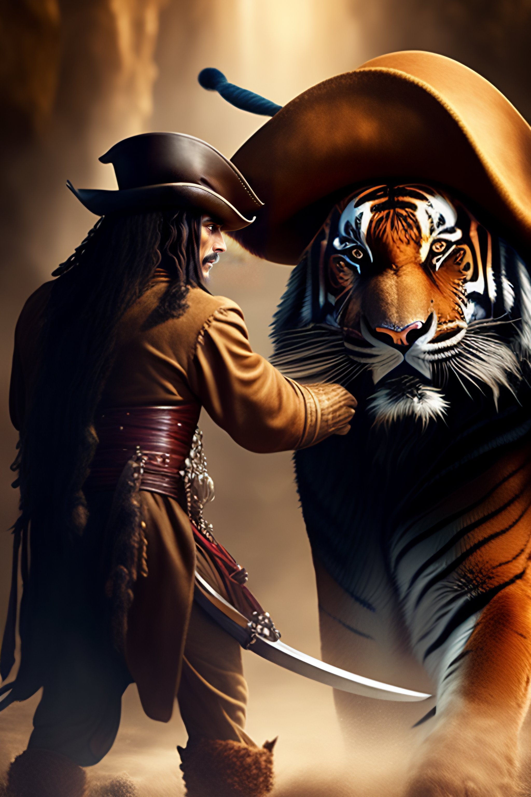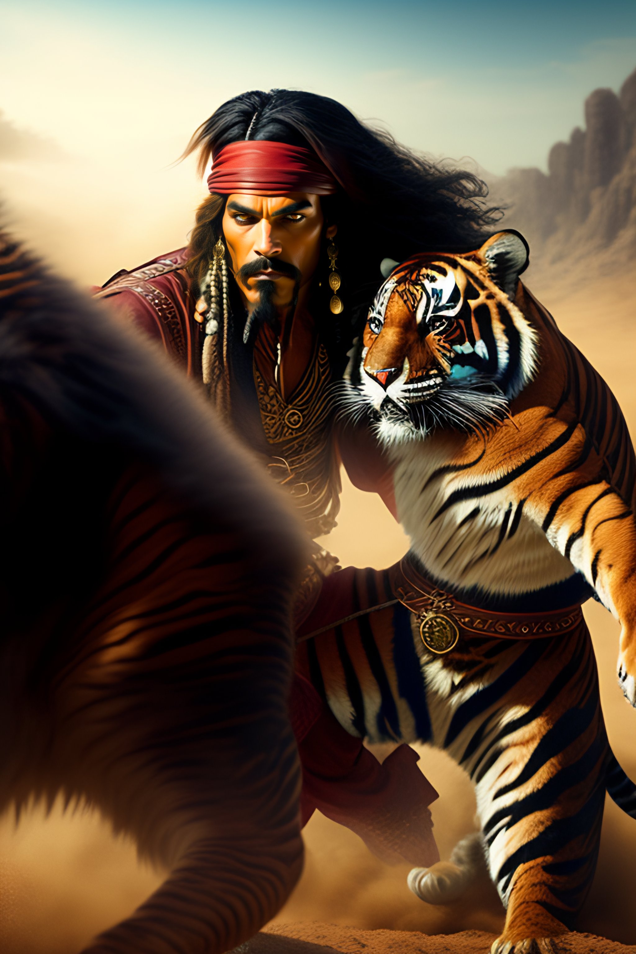 Jack sparrow fighting a tiger