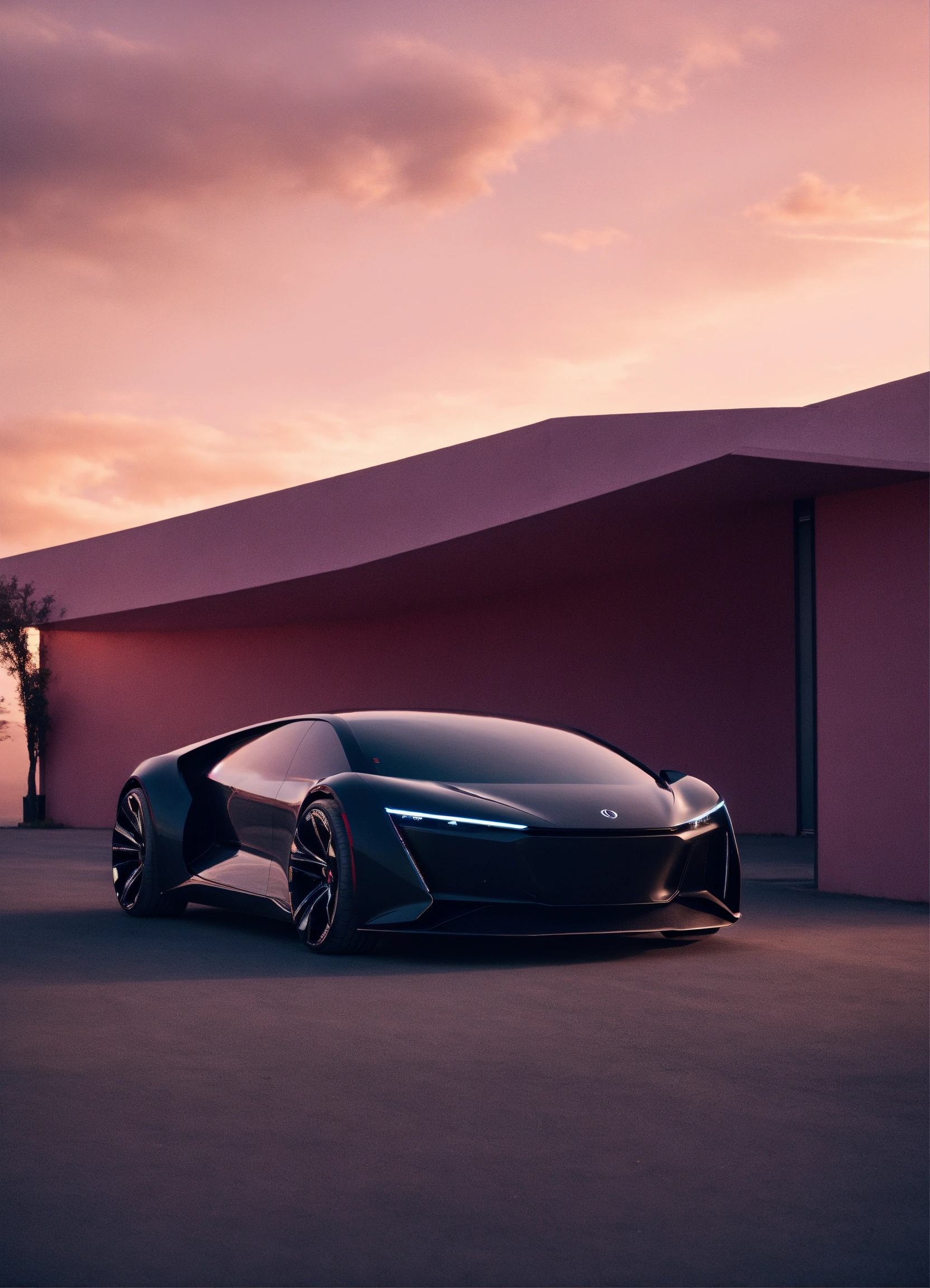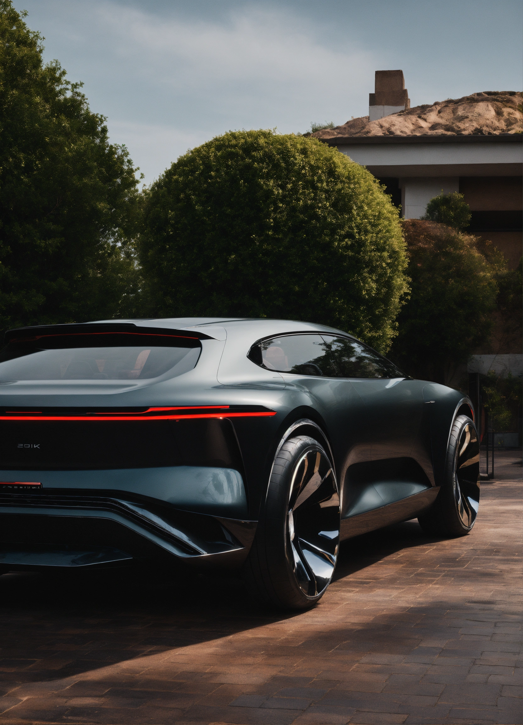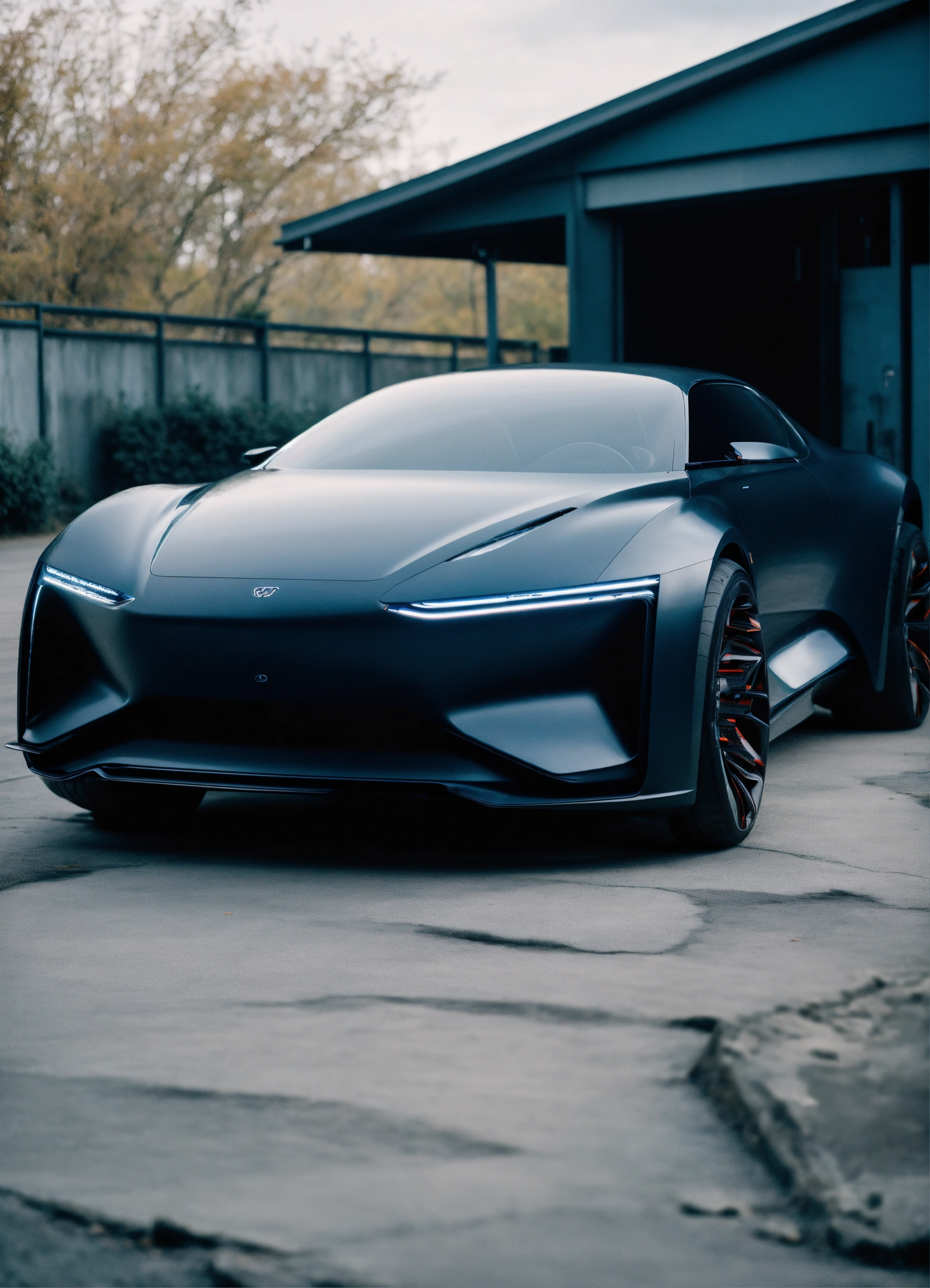 Photo of concept car from 2023, 8k resoultion, hyper realstic, black, day, 35mm film, editorial, high fashion.