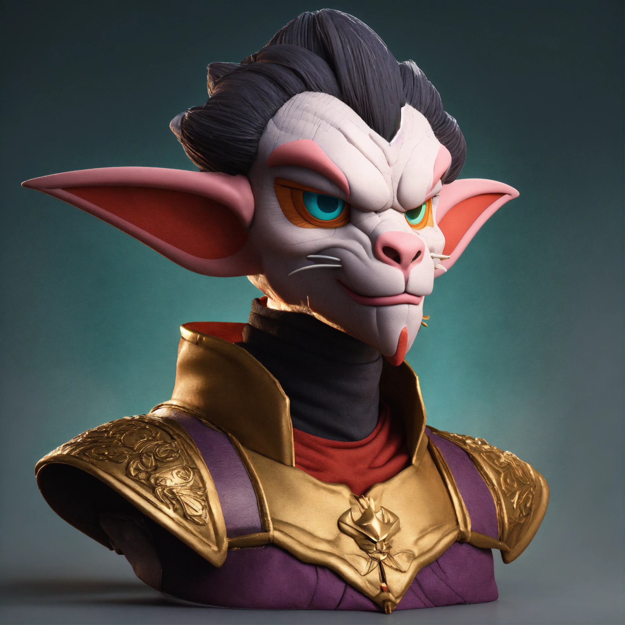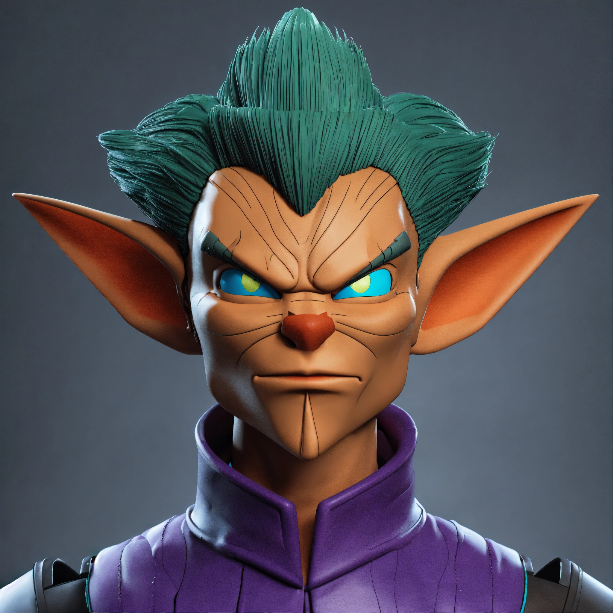 Full headshot for profile pictures of evil animal humanoid, puppet master, dragonball cartoon art style, high quality 3d model