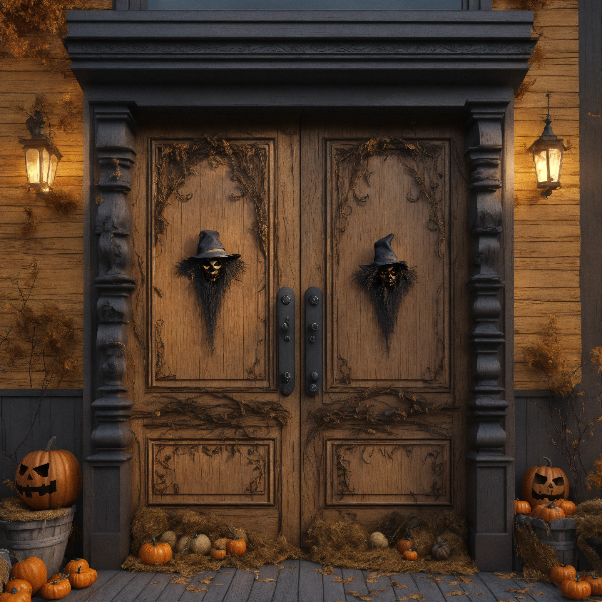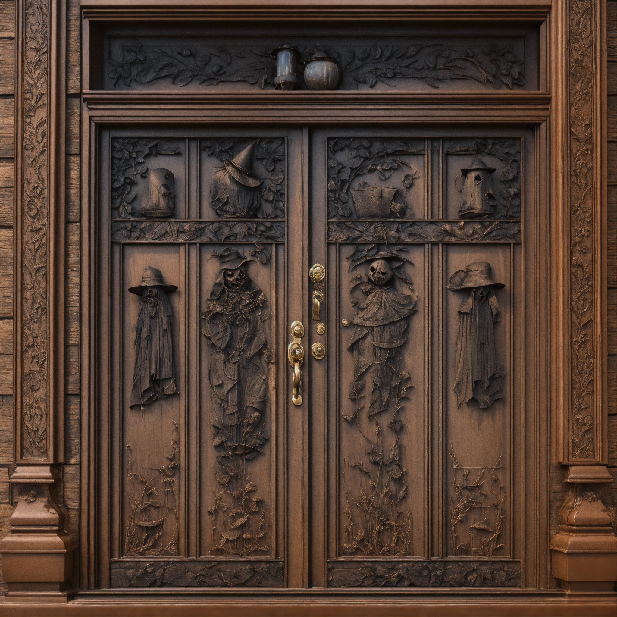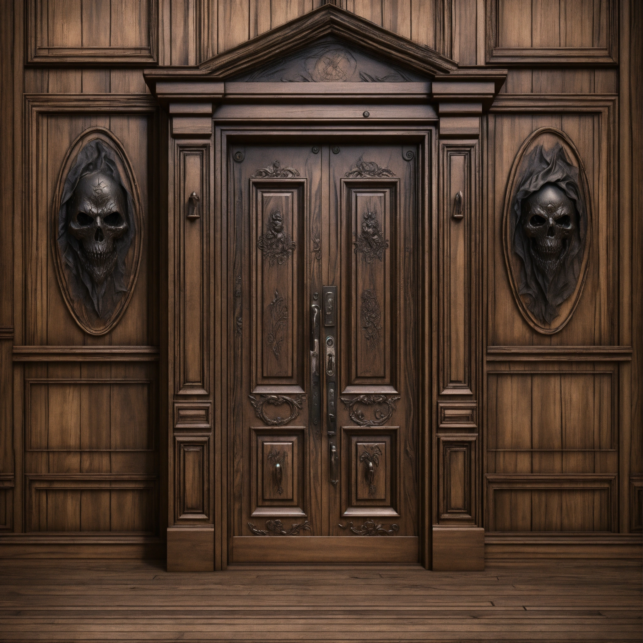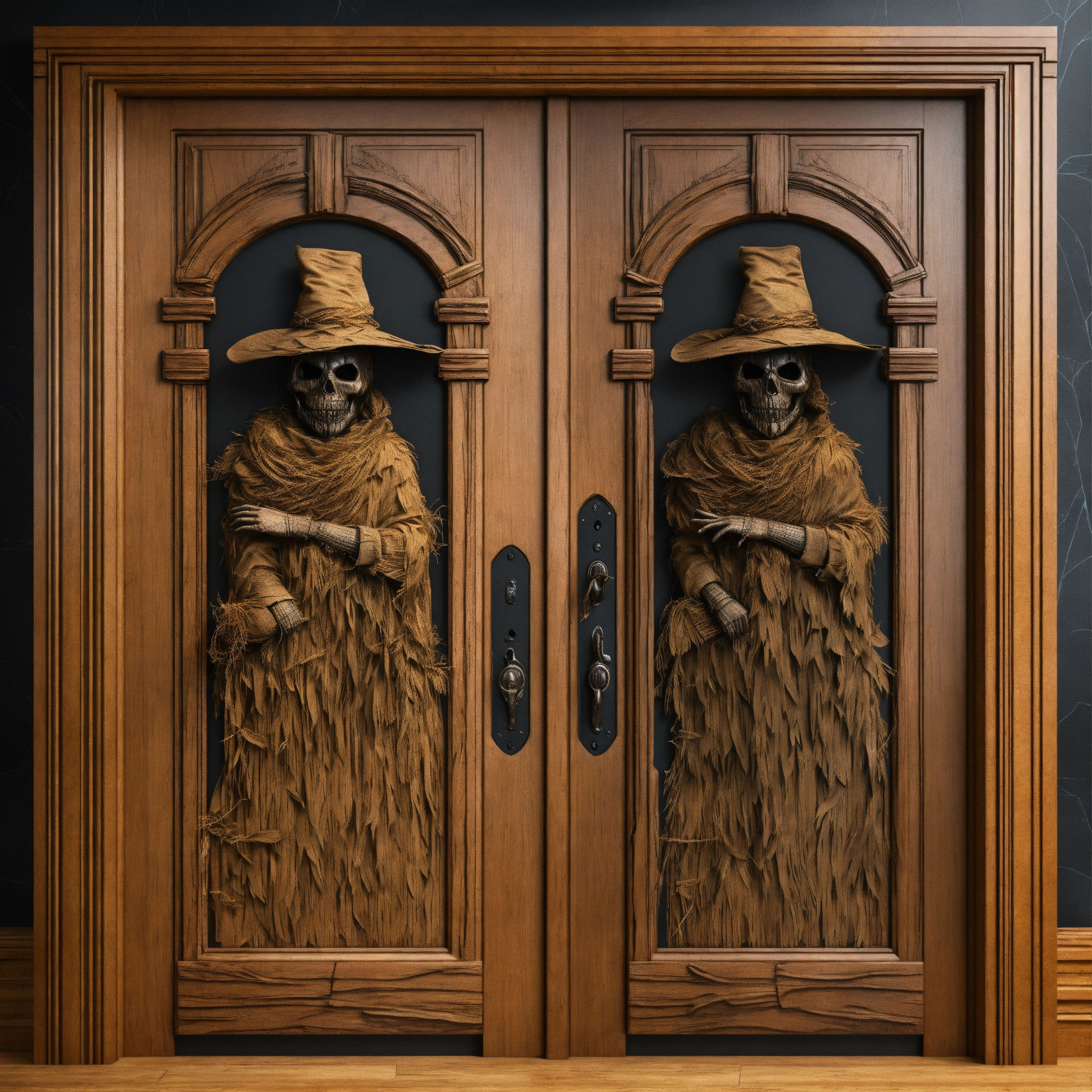 3d creepy haunted doors engraved scarecrow engraved obsidian and hyper realistic 8k