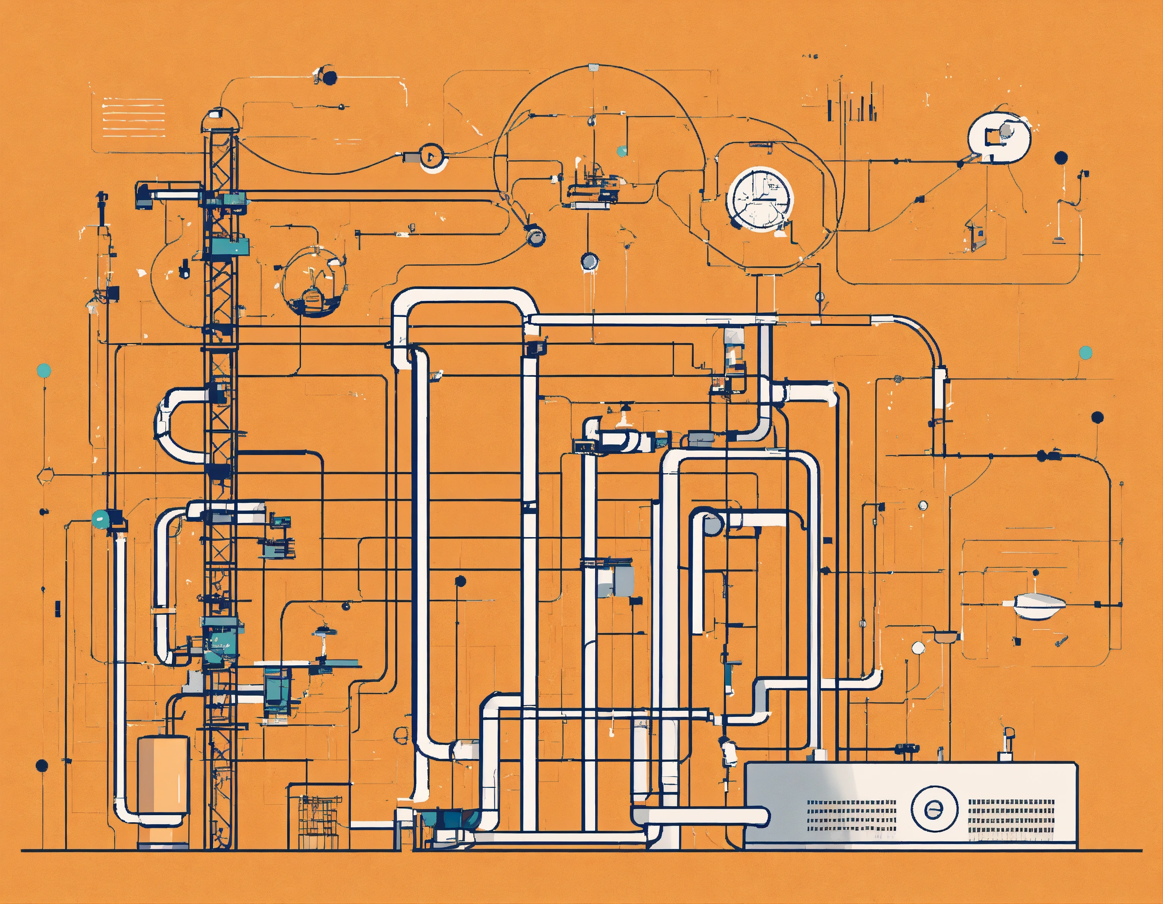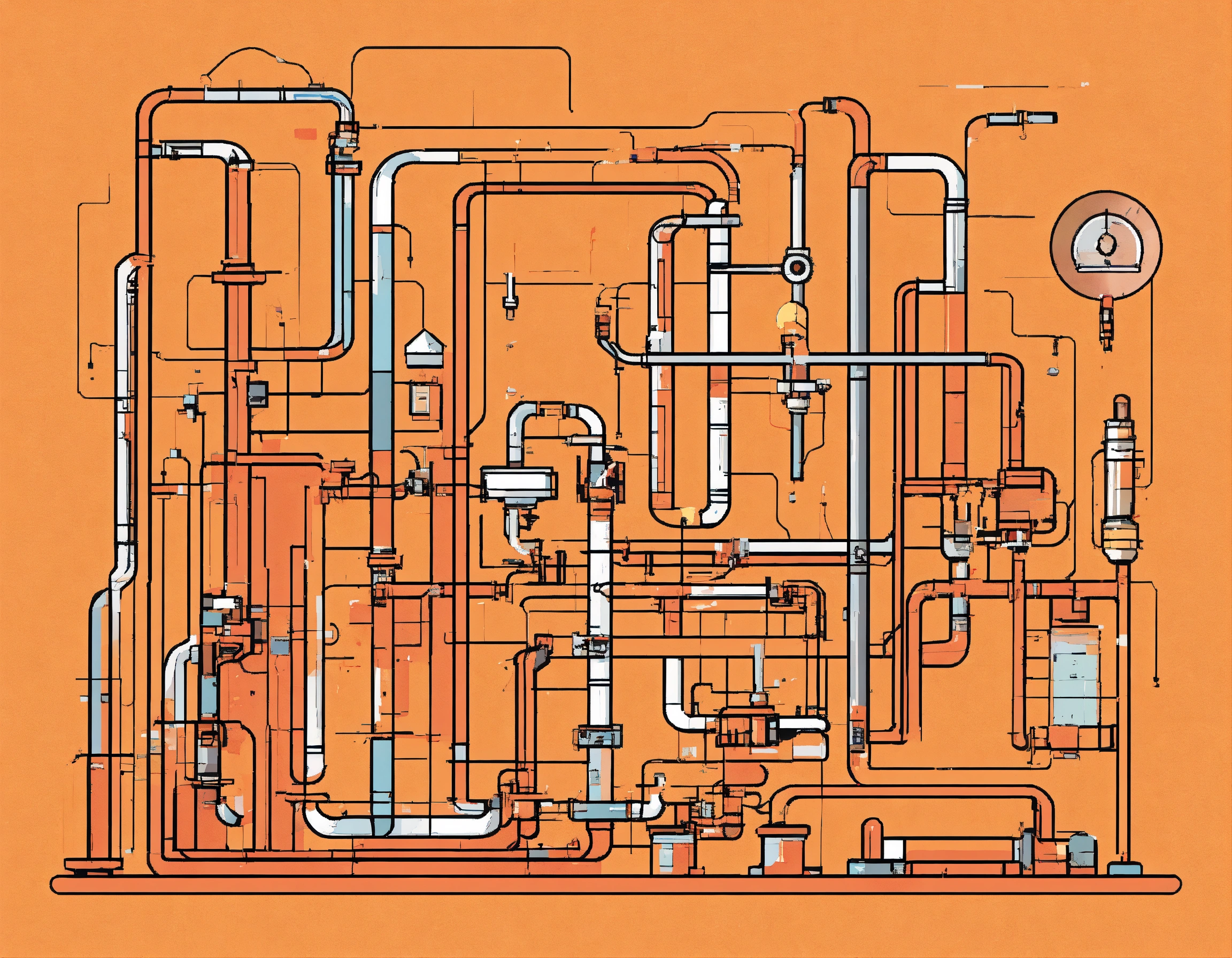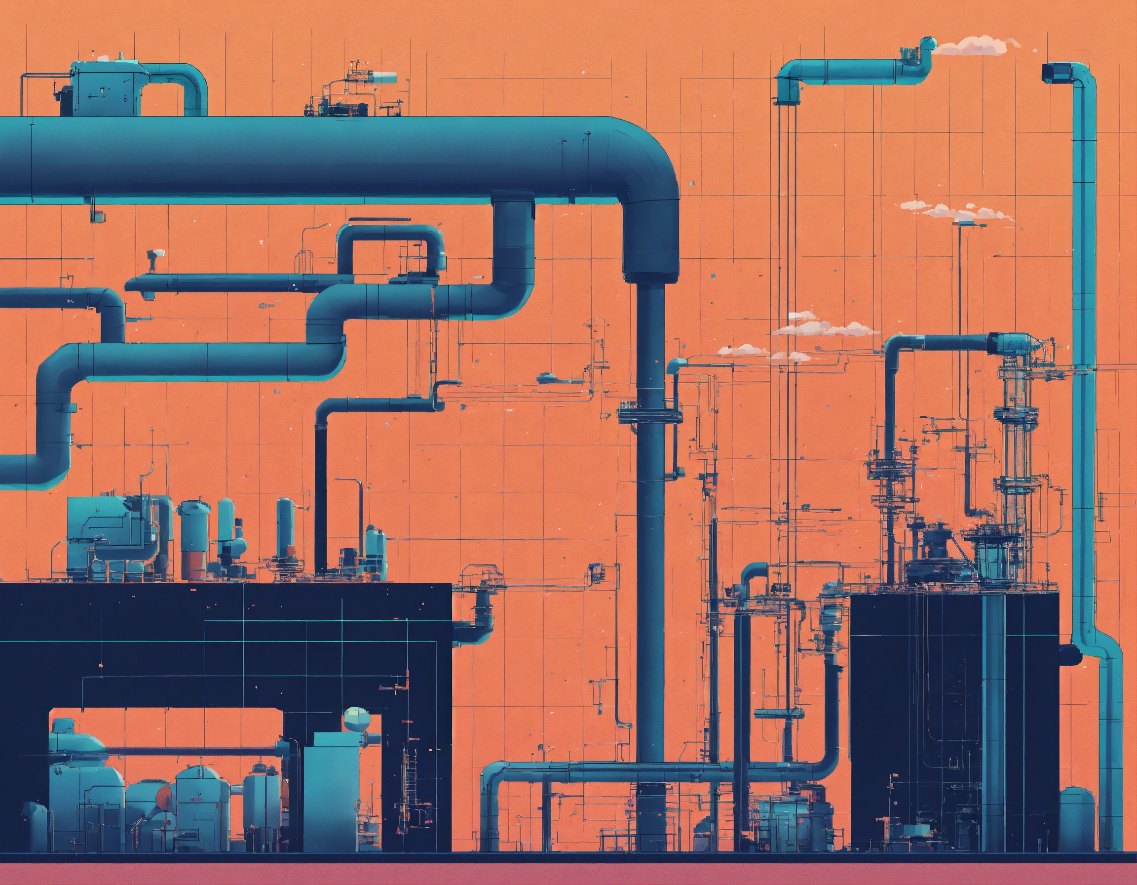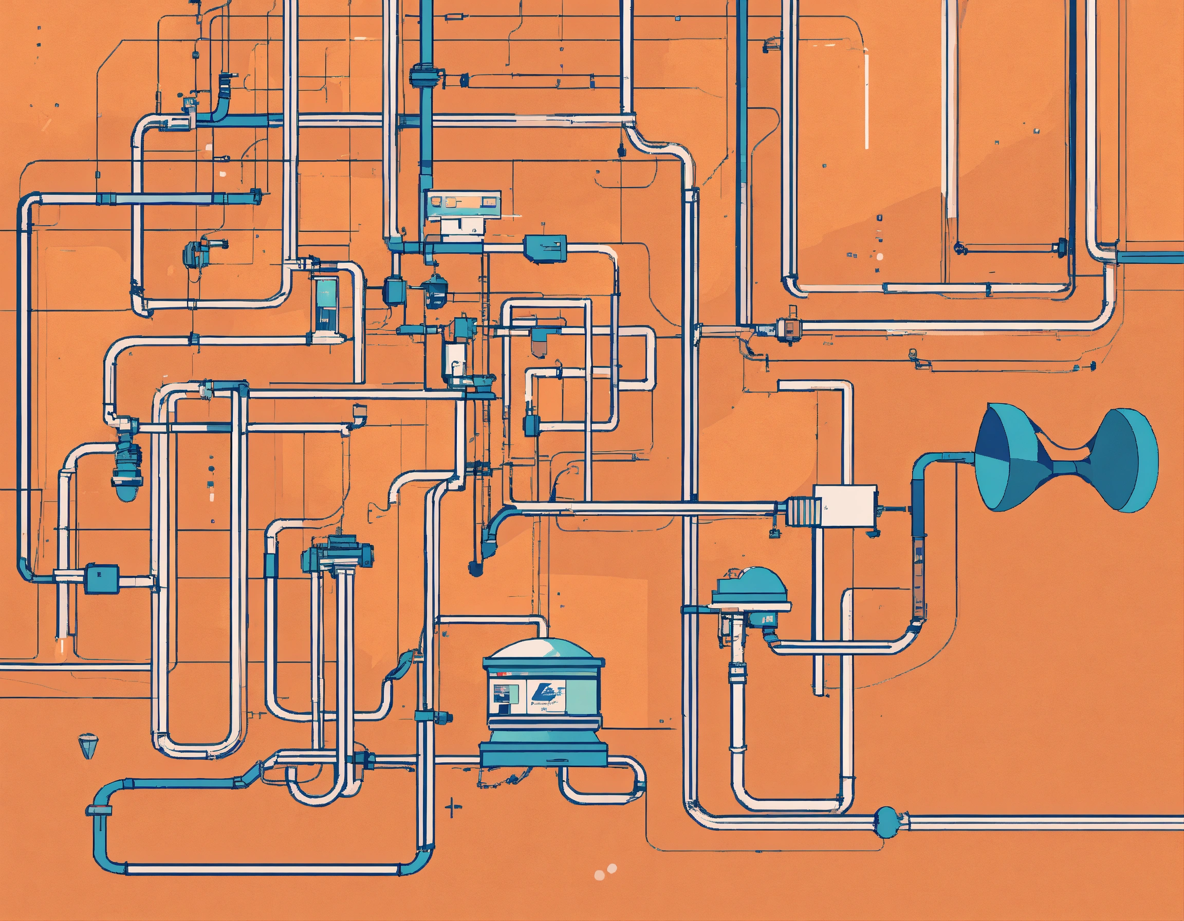 Data analytics and infrastructure with graphs and pipes and machine learning, minimalist illustration