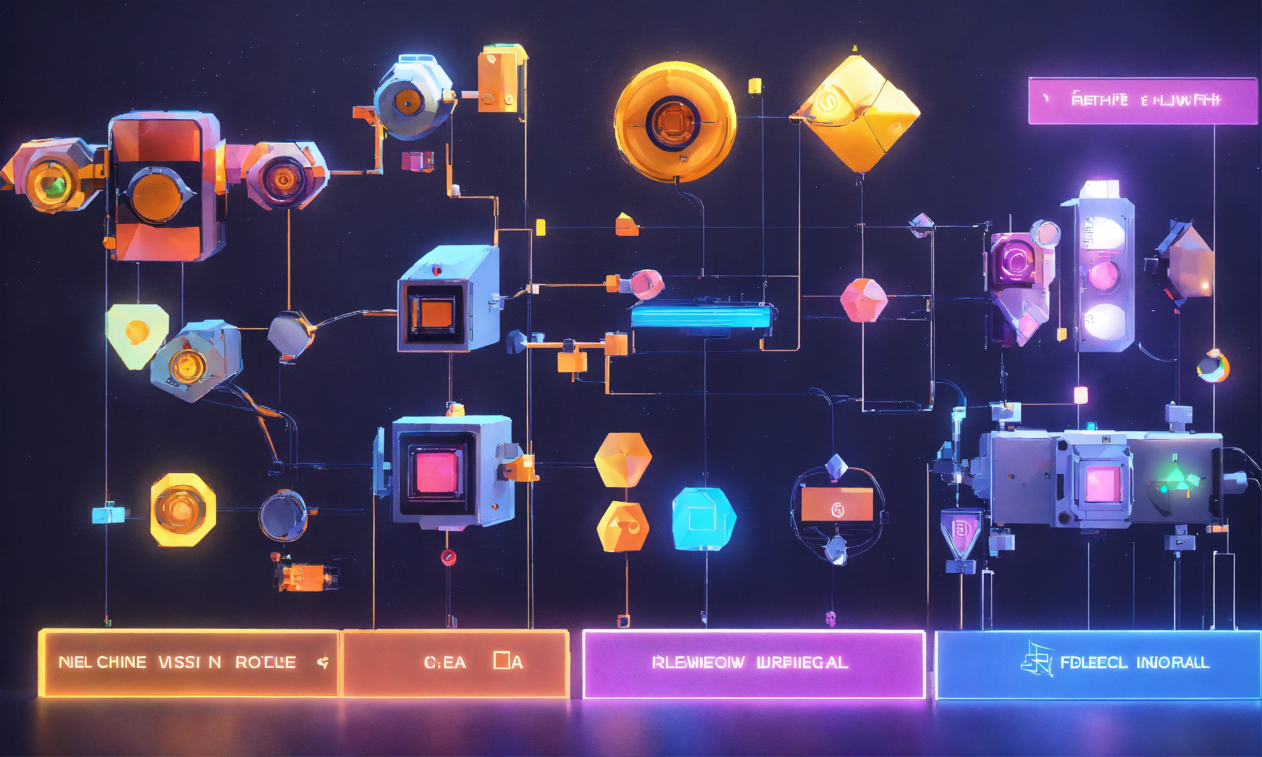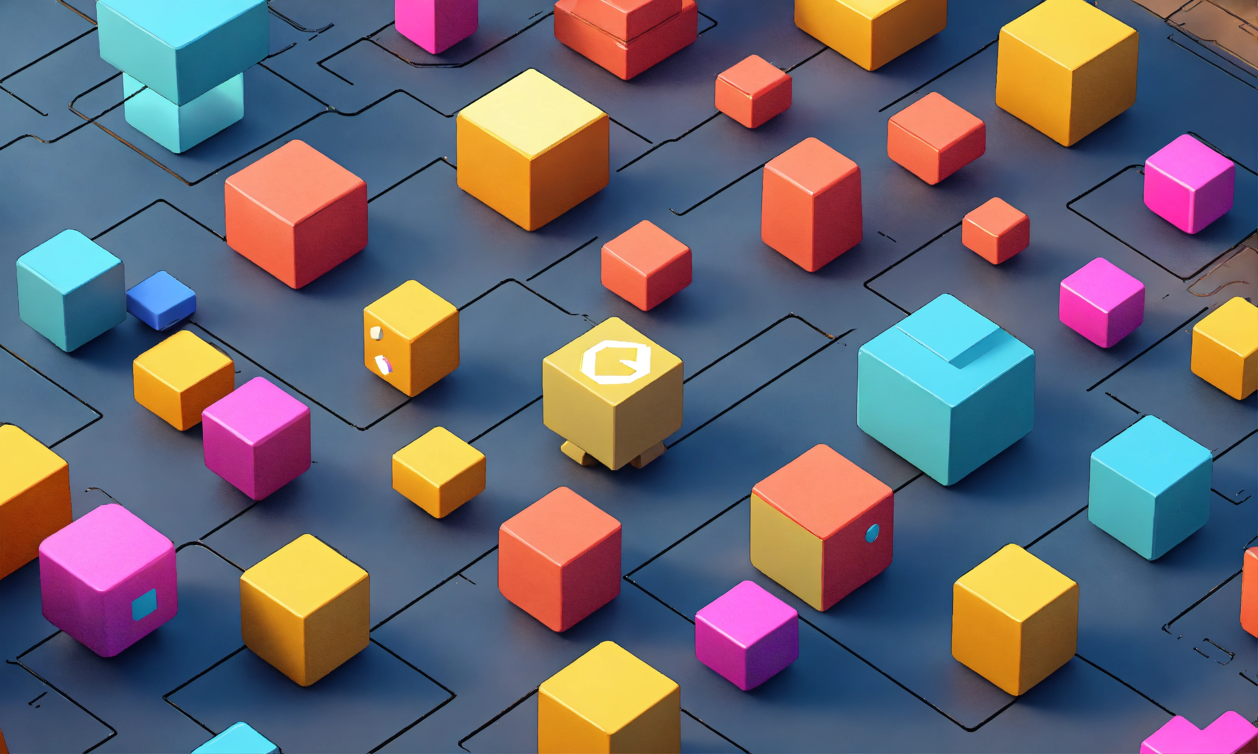 Geometric shapes for flowcharts, unreal engine, robot style, cute, 8k, unreal engine, perfect, bright colors, funny, safe, secure