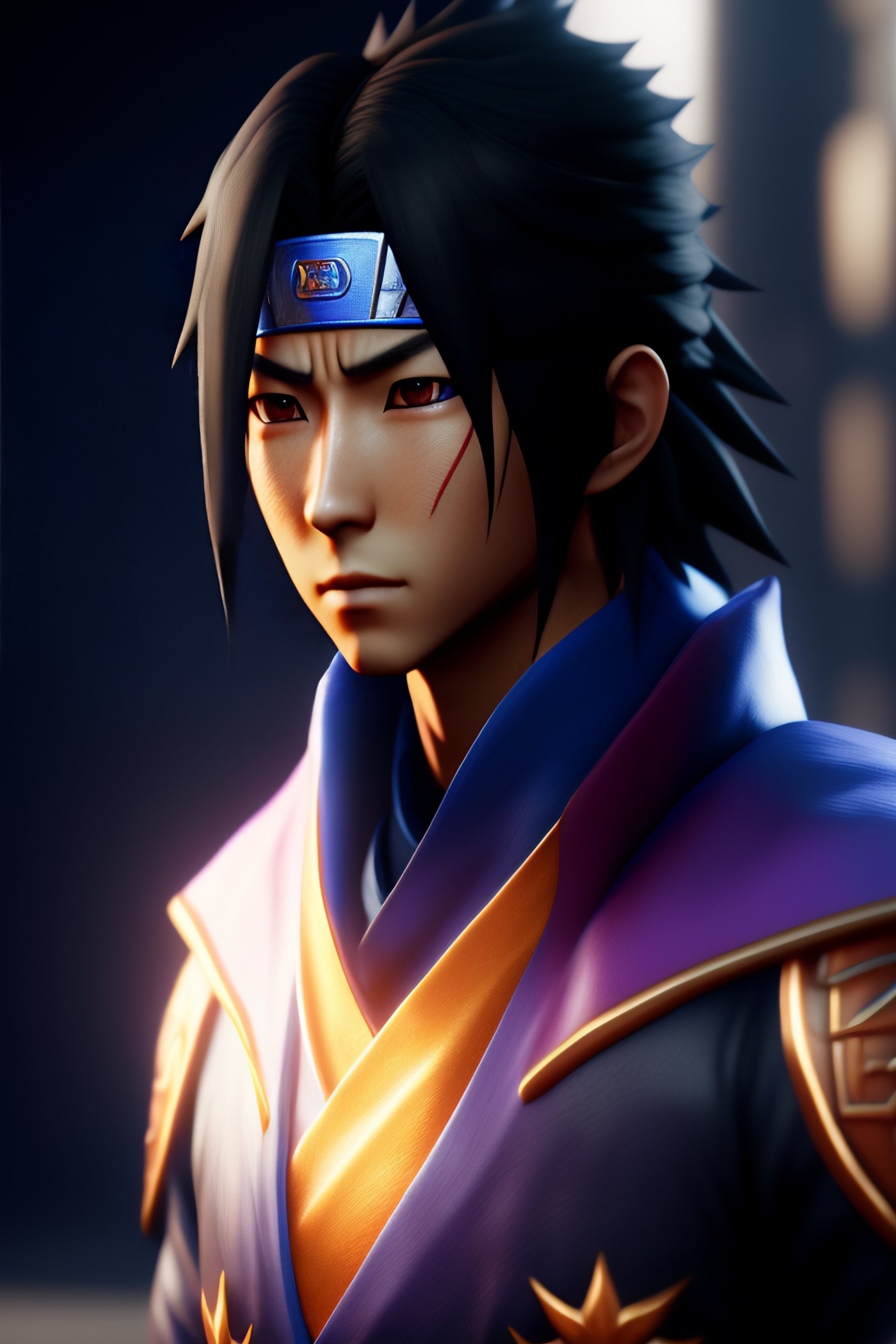 Sasuke uchiha from naruto, hyper realistic, octane rendering, unreal engine 5, illumination, 4k rendered, highly detailed