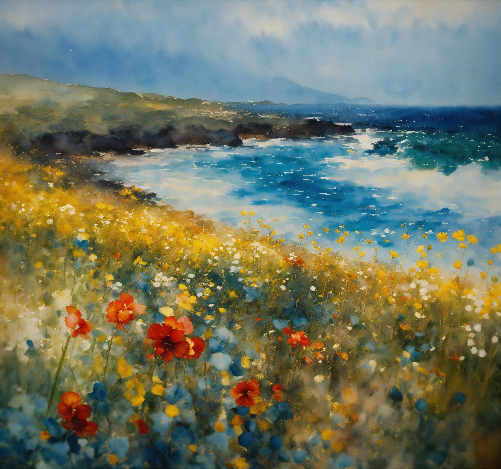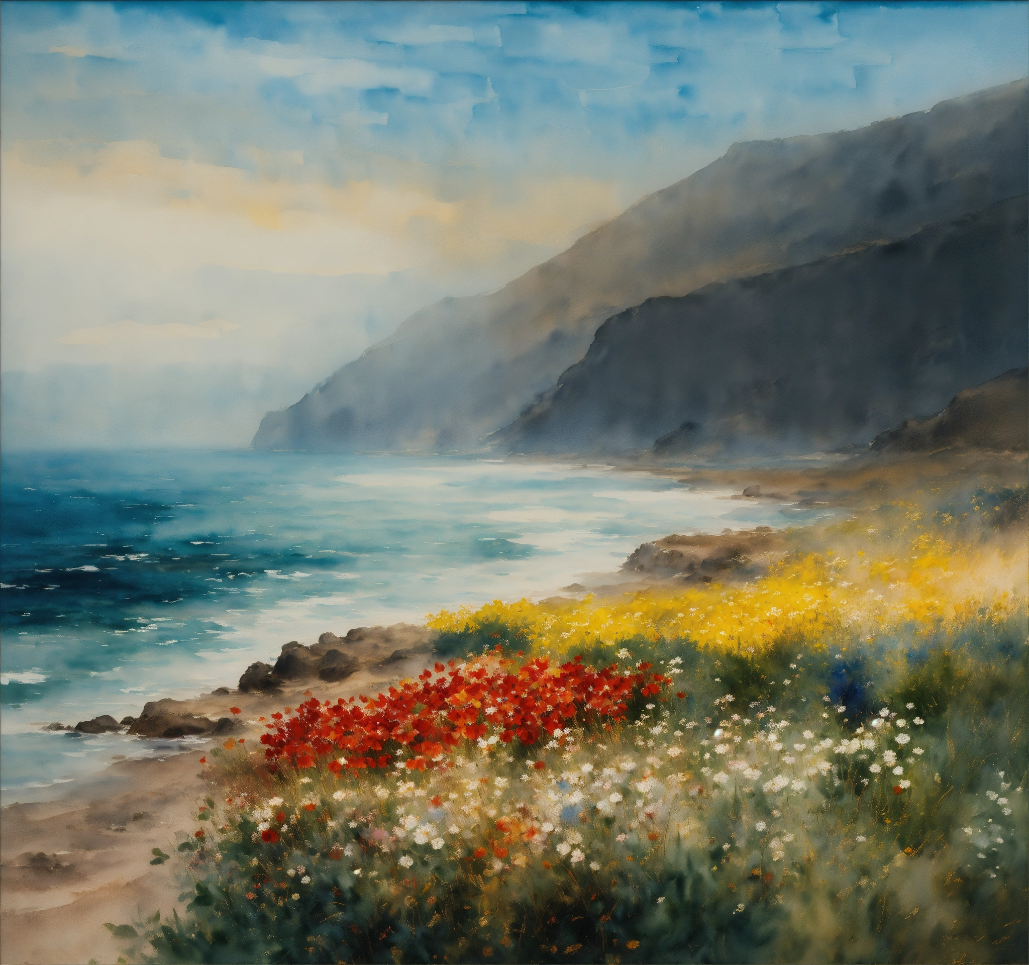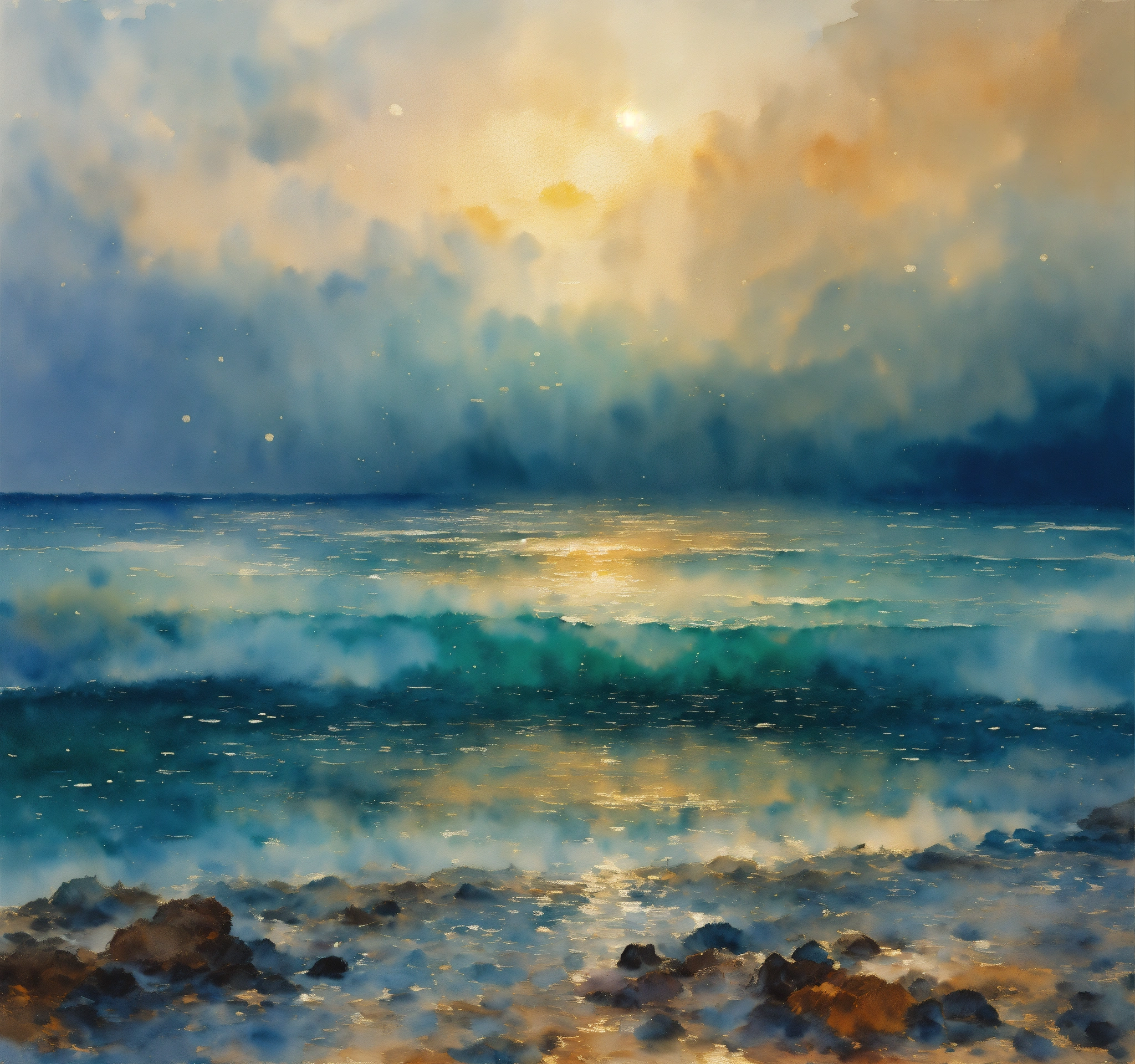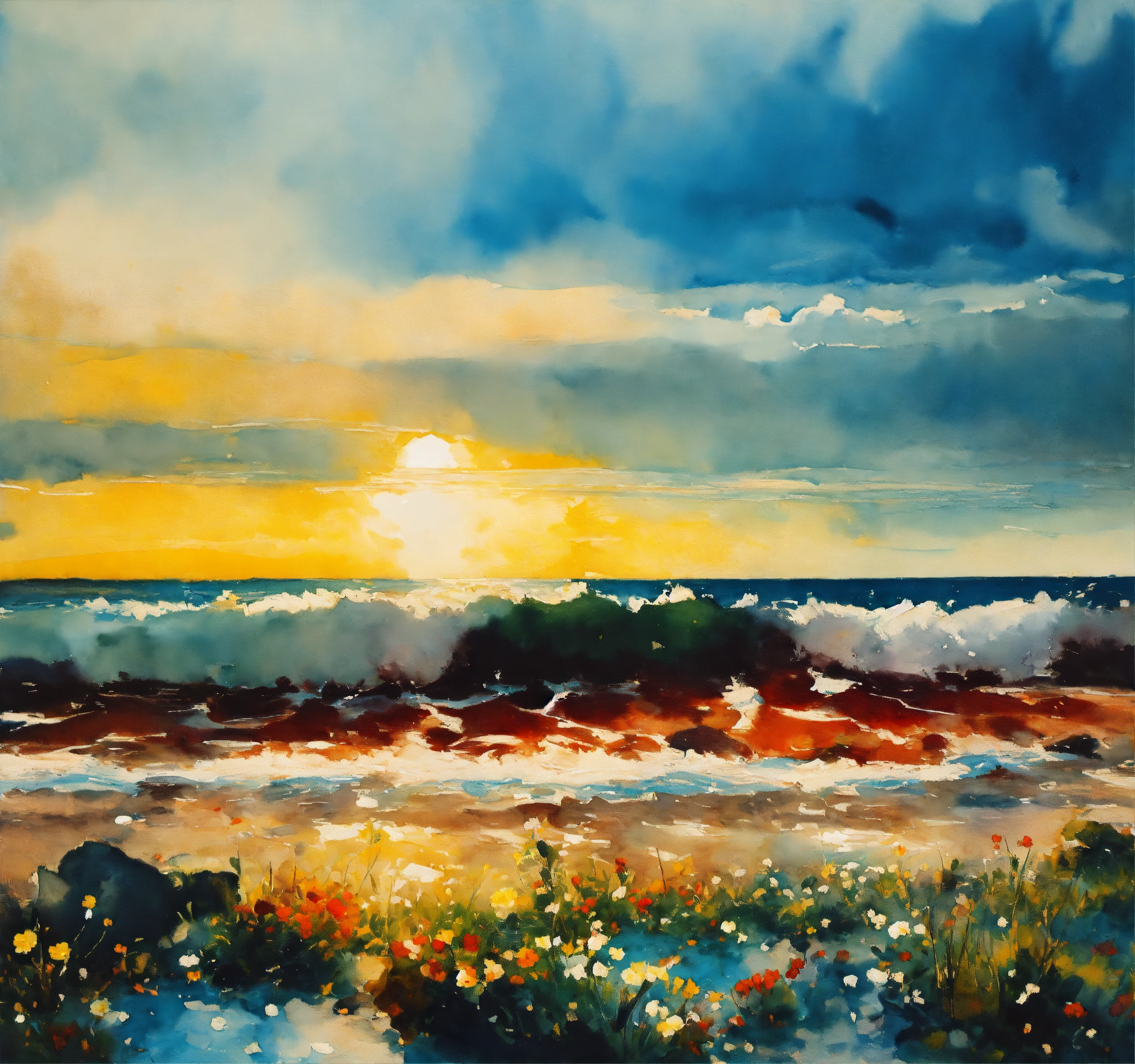 An ocean oil painting transparent in style nicolas de staël, concept art bokeh intricately detailed hyperdetailed watercolor wet brushwet wash and rubens, nft, alonso, vertappen, "flowers/8k resolution concept art bokeh intricately detailed hyperdetailed watercolor wet brushwet wash by gustave moreau odilon redon dali monet"