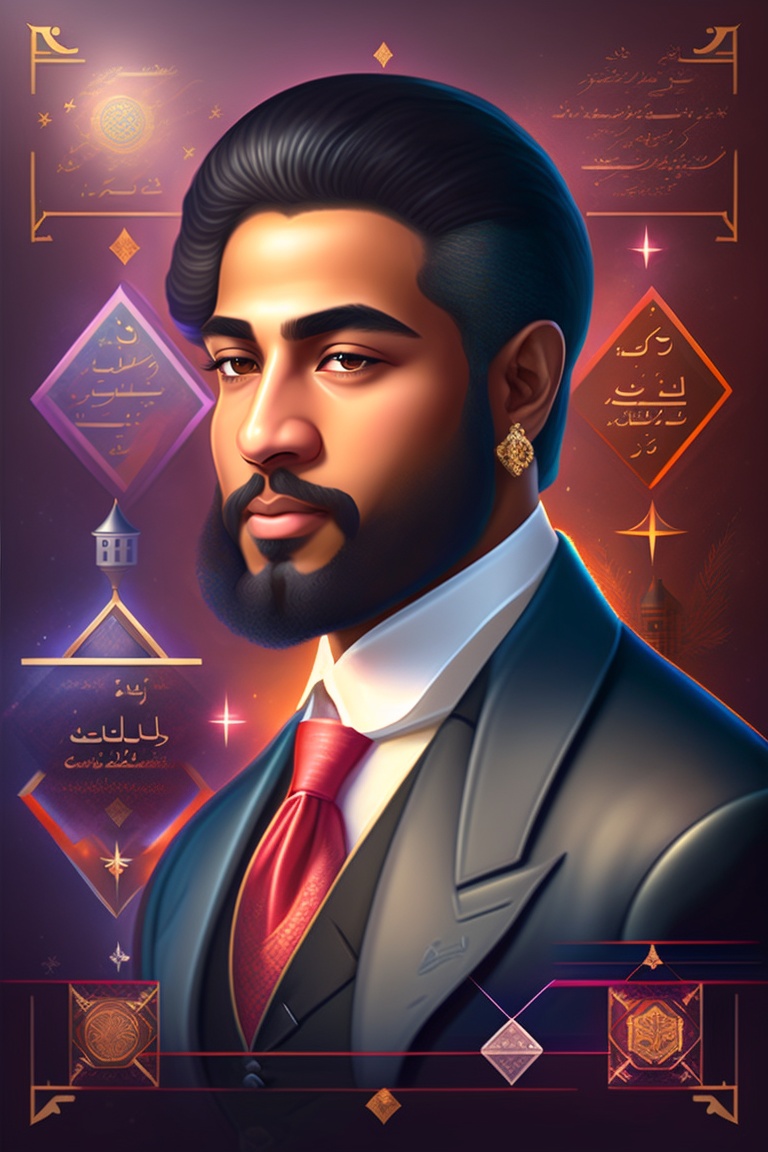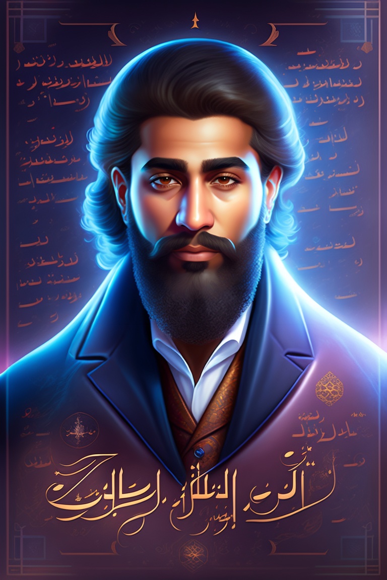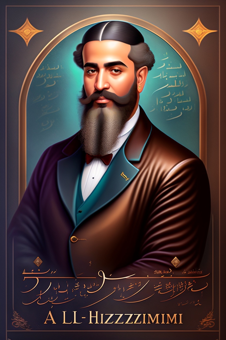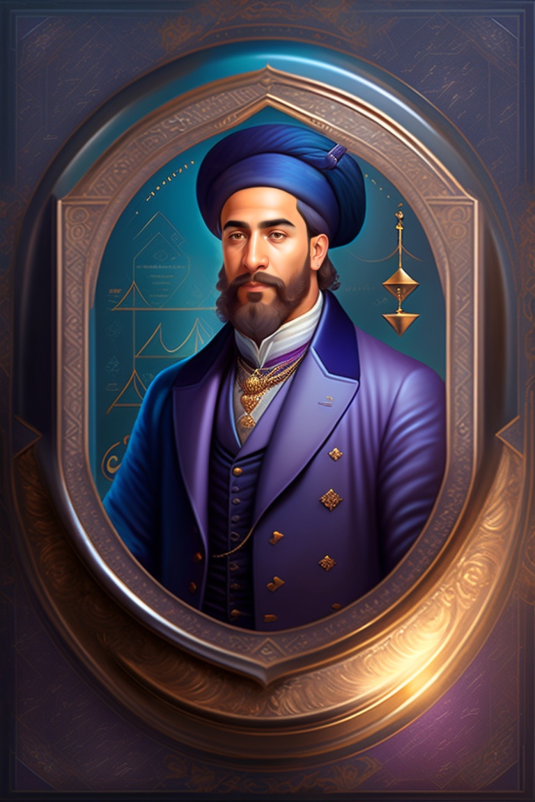 A portrait of al-khwarizmi, a diligent mathematician, surrounded by mathematical equations and symbols, representing the key to success through hard work.