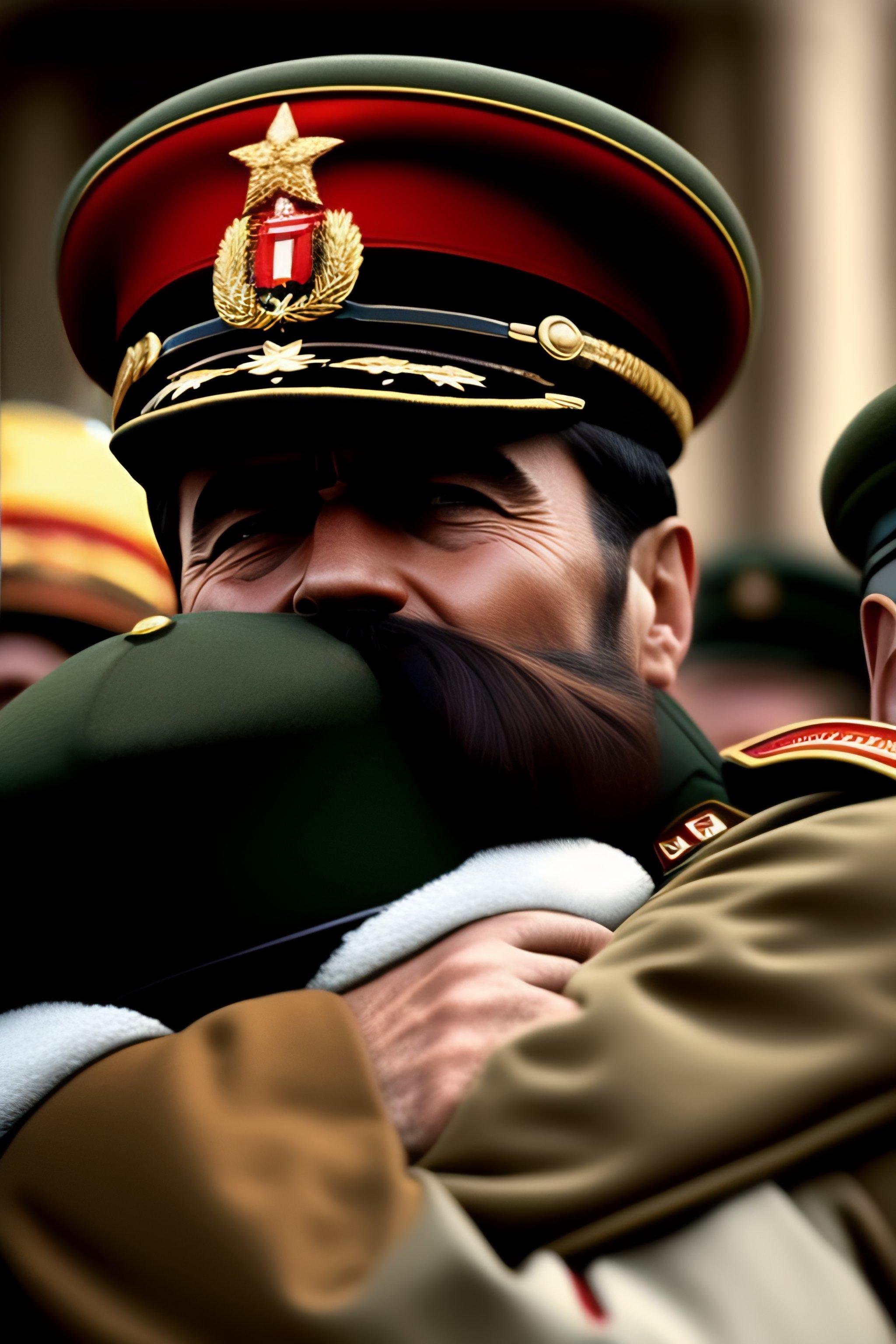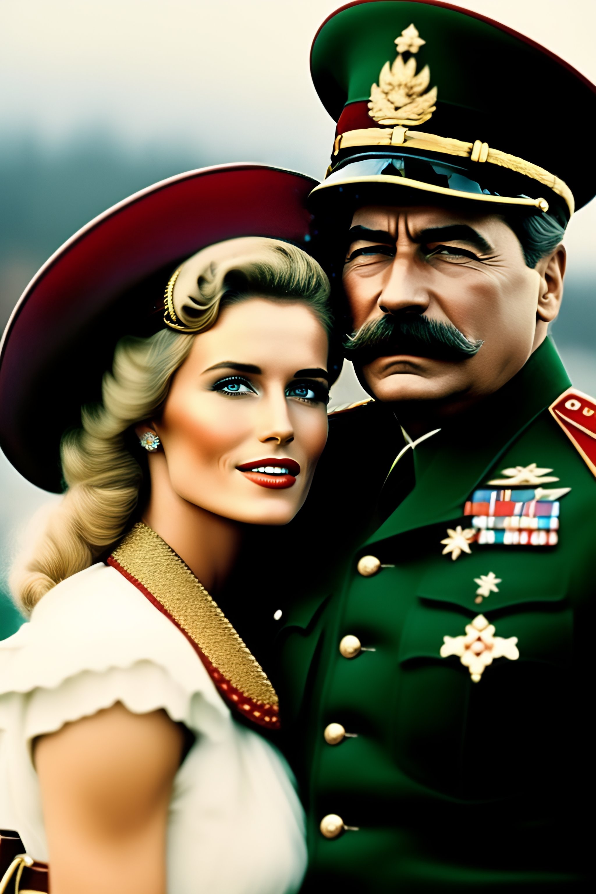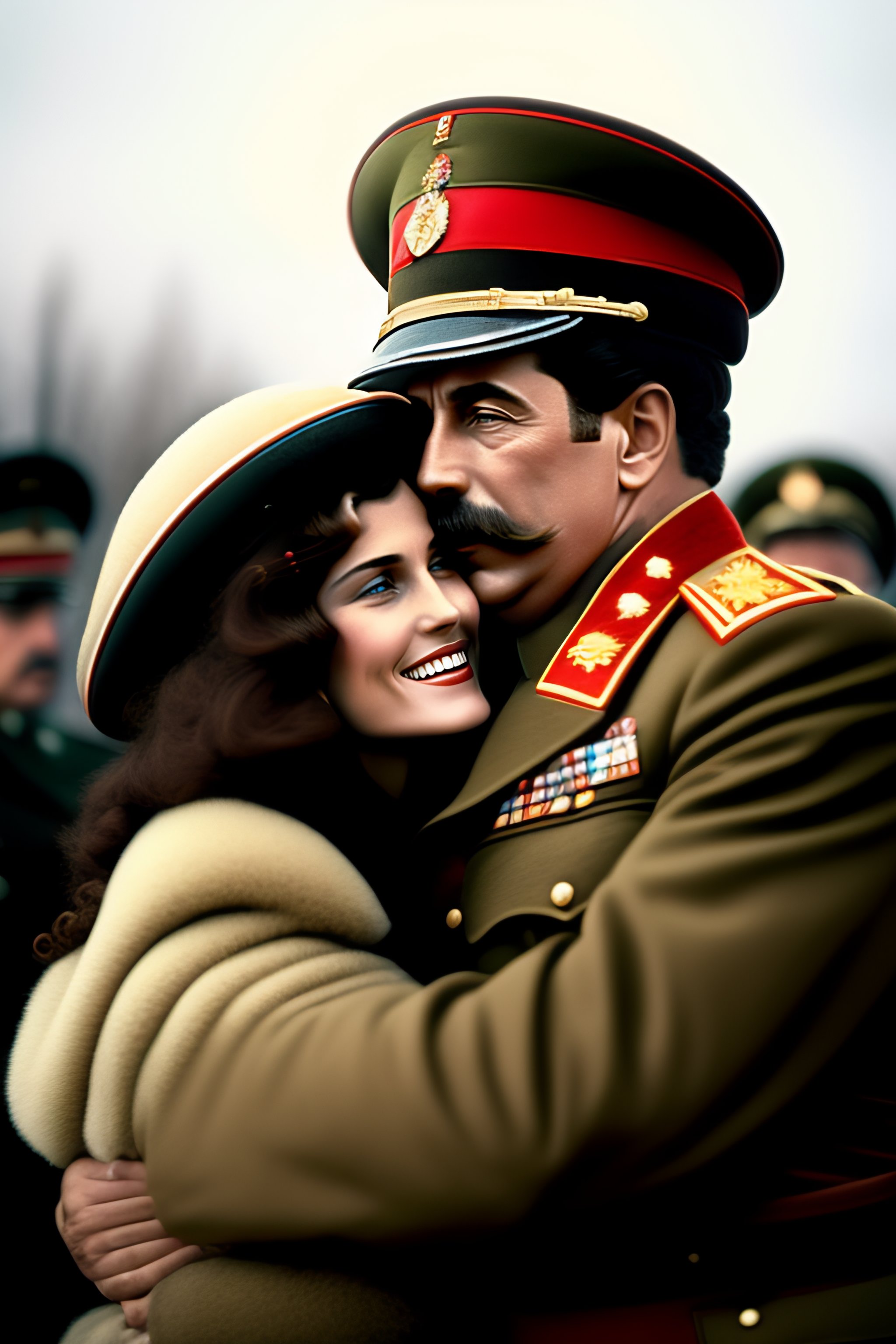 Joseph stalin in soviet army hat hugs beautiful girls old photo
