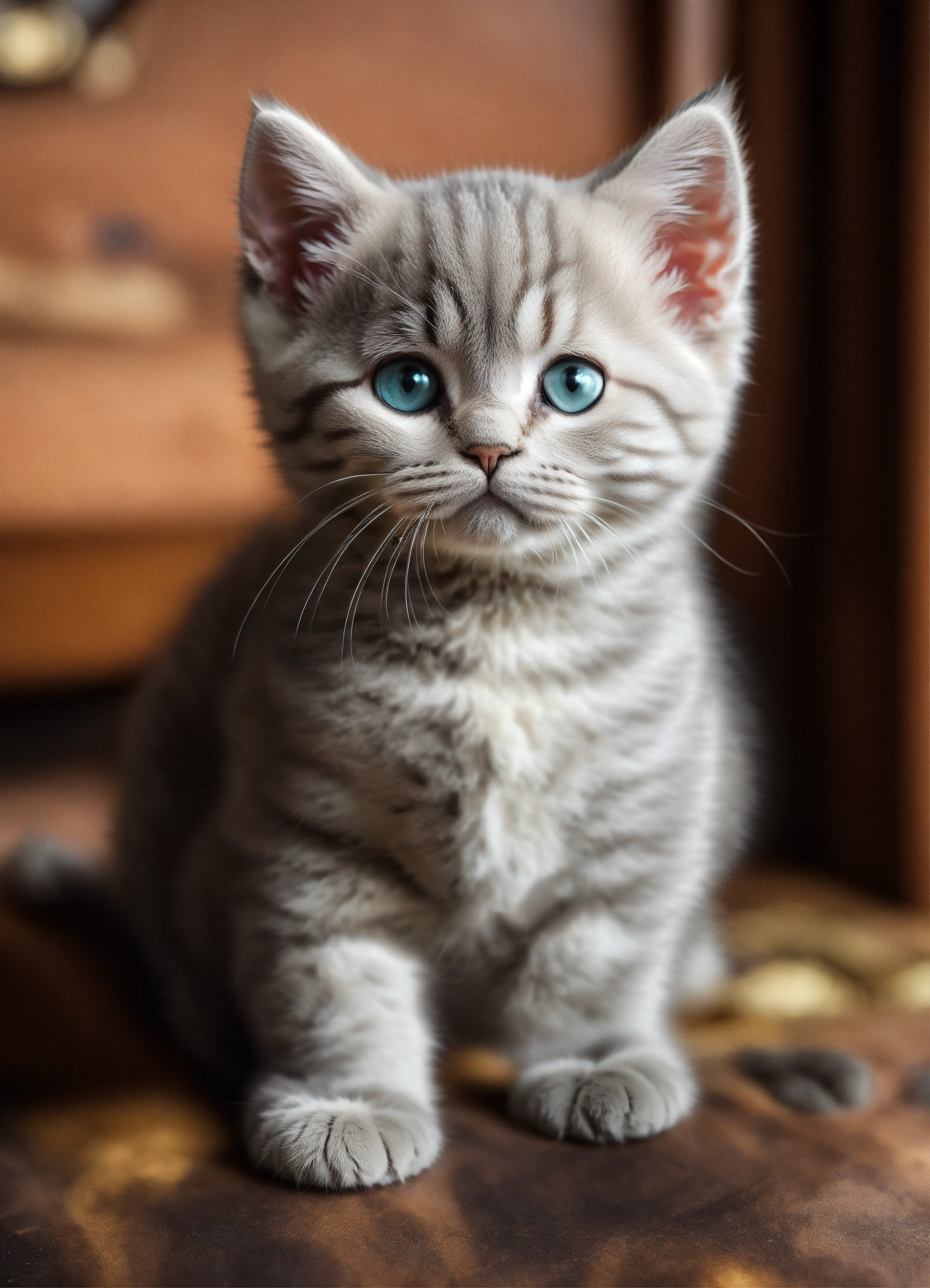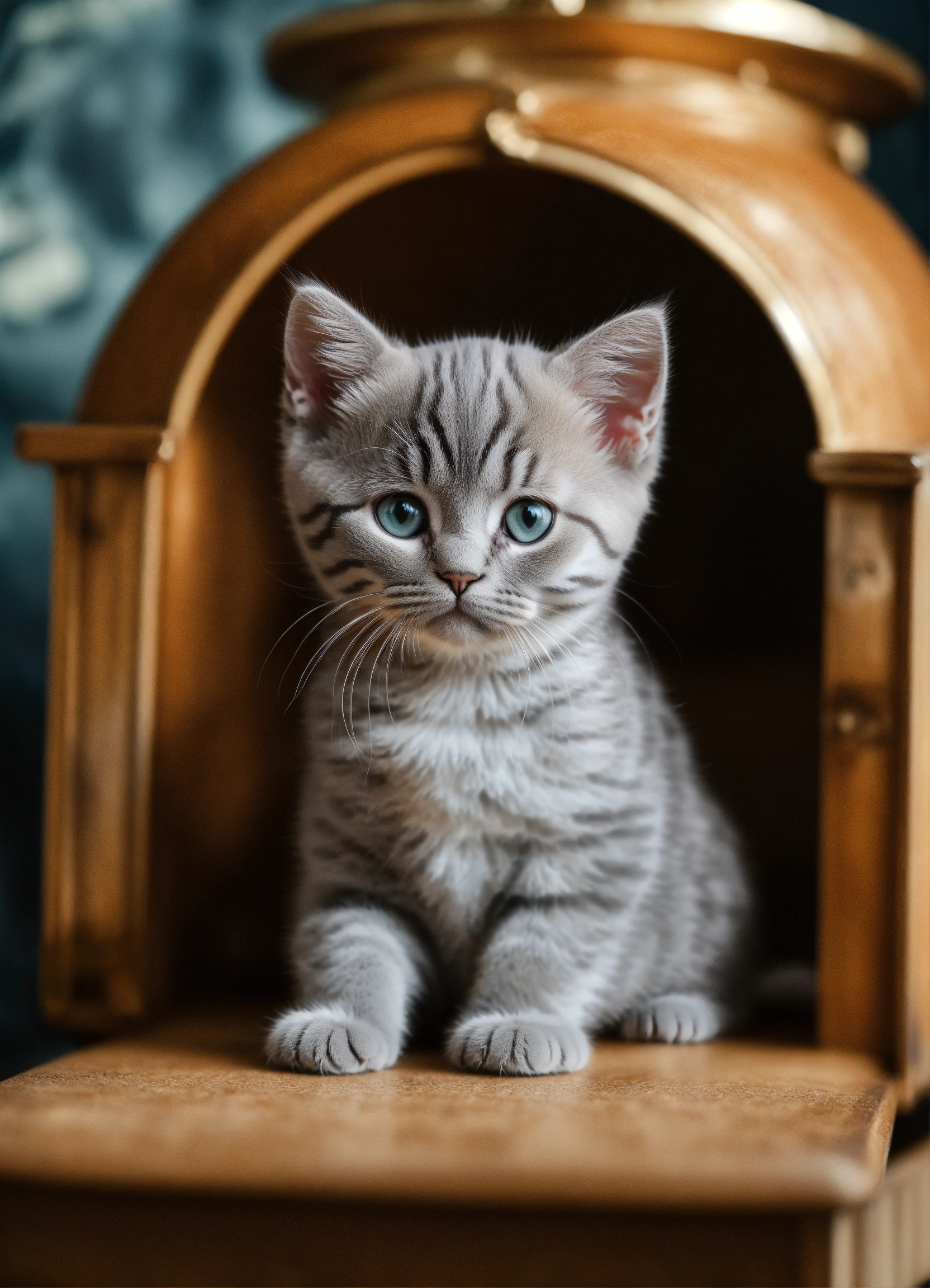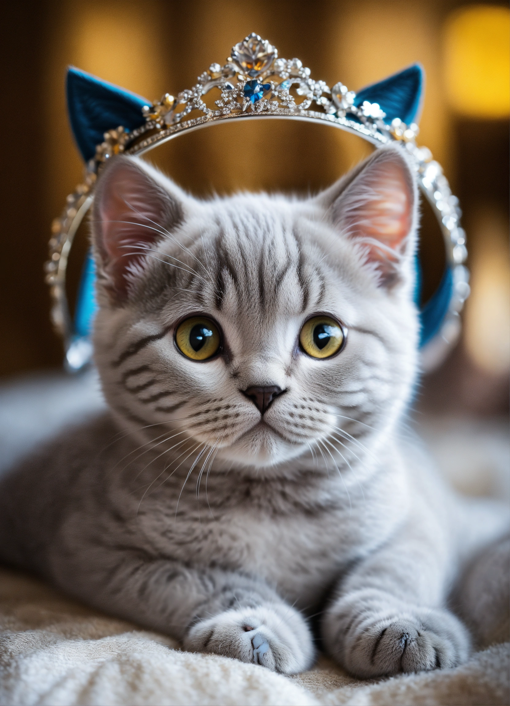Smal british shorthairwith ears down cute kitten a silver diadema on the head