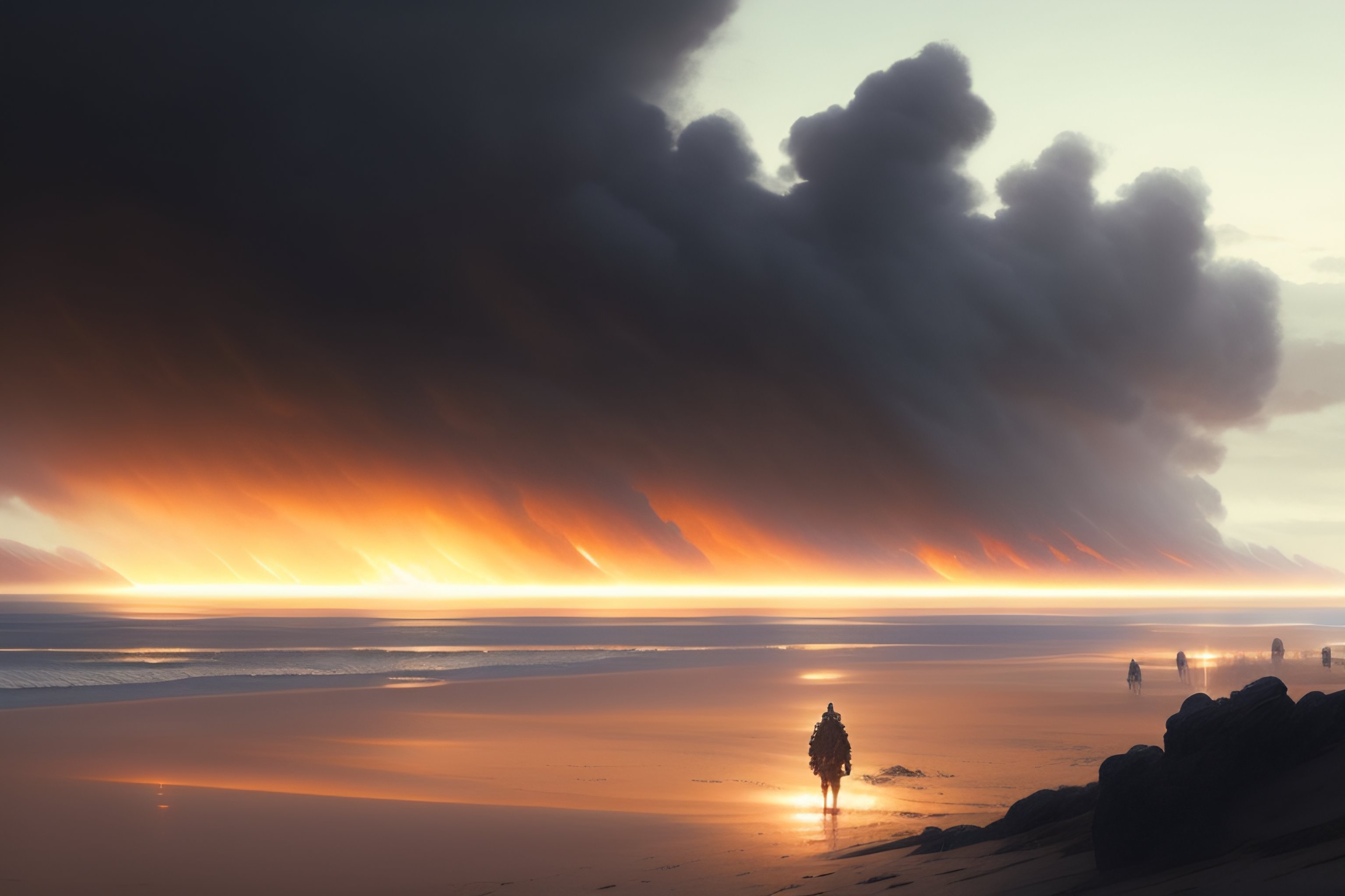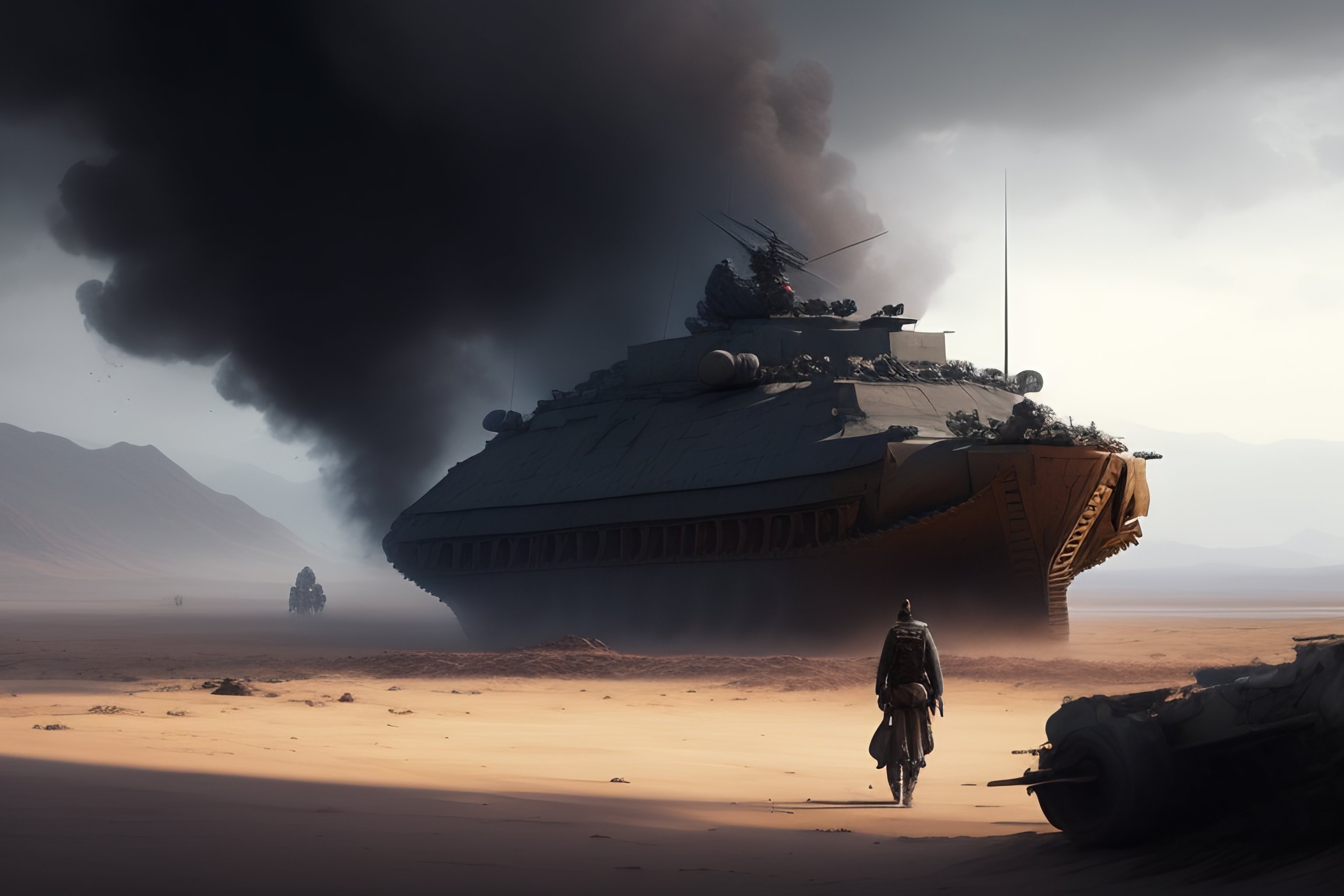 Pronpt : make me a very dramatic image of a war scene, as if it were a vintage movie details : art by greg rutkowski, james cameron's dramatic tone, blur