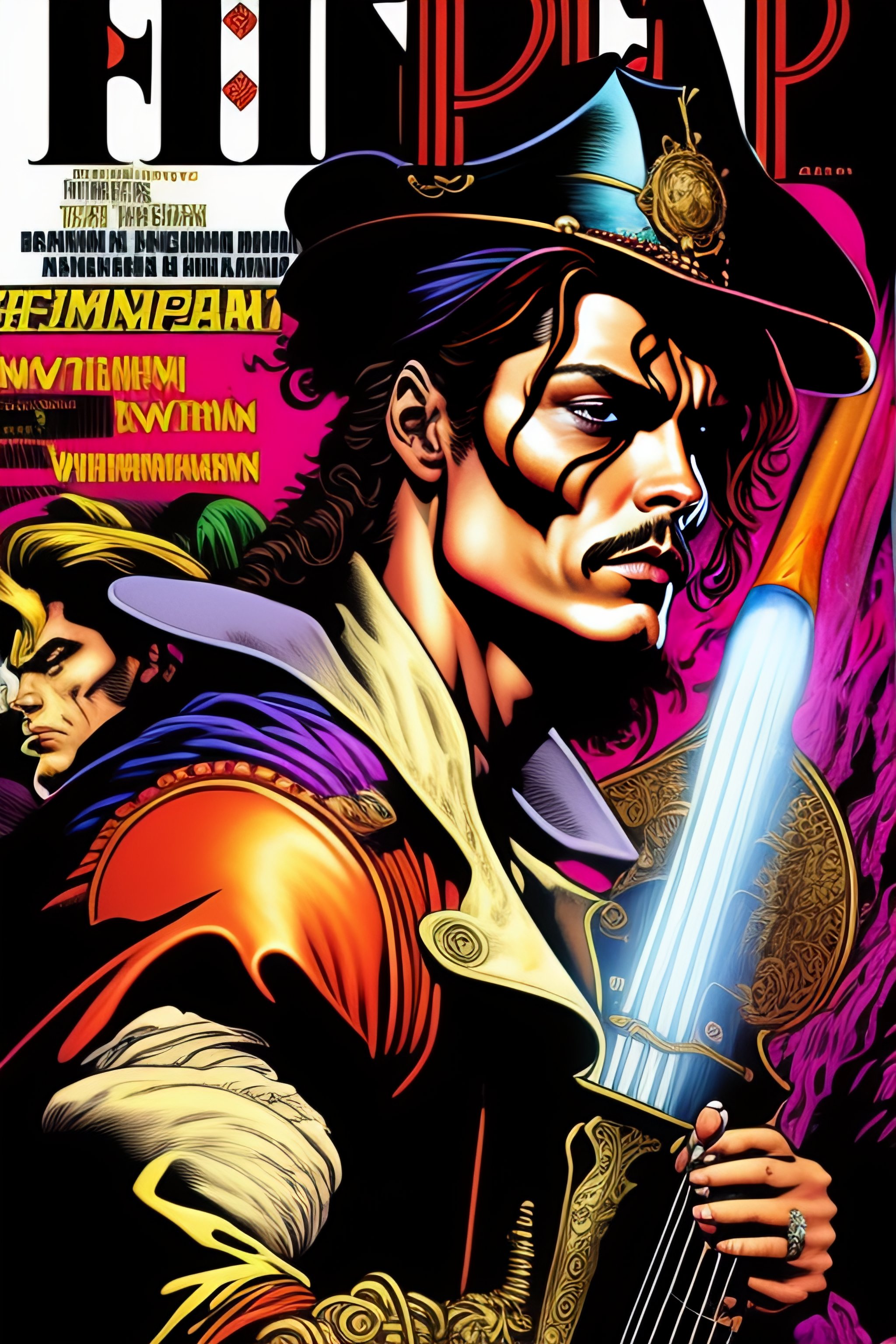 Johnny depp, in the style of 80's comic book art, super detailed, accurate illustration, clean lines, by bernie wrightson, steve ditko, dave gibbons