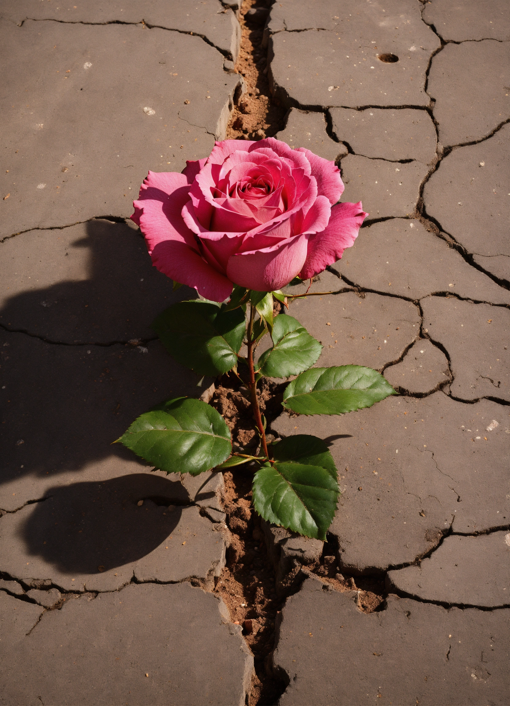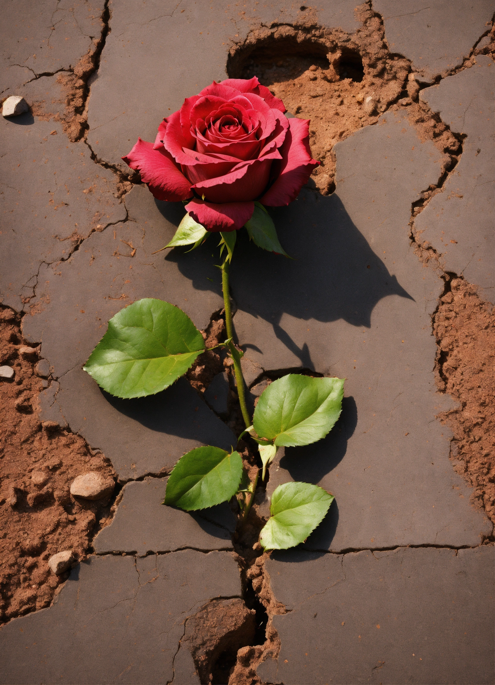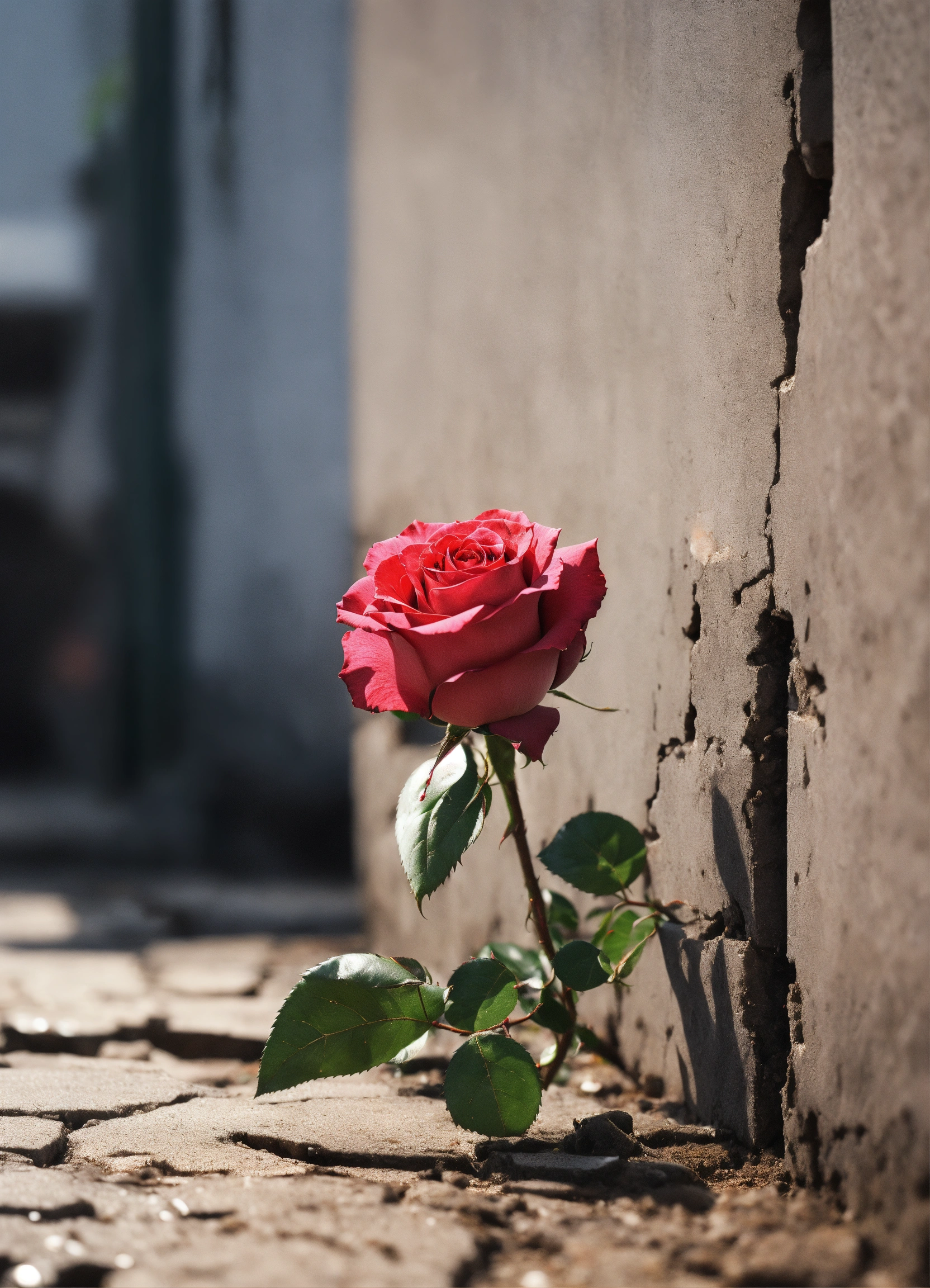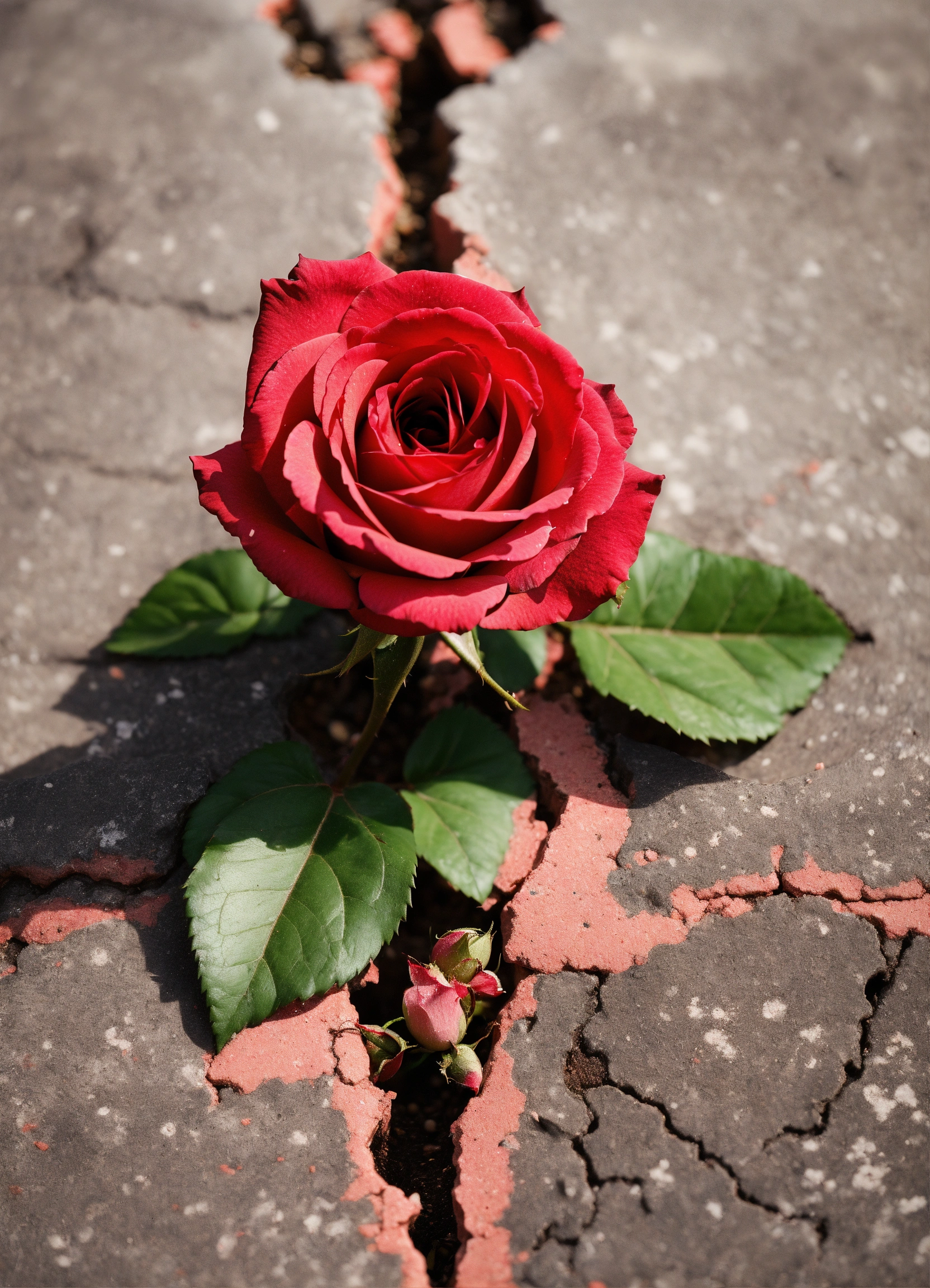 Generate an image of a rose growing out of a crack in the concrete, with the rose representing the strength and resilience of the black community.
