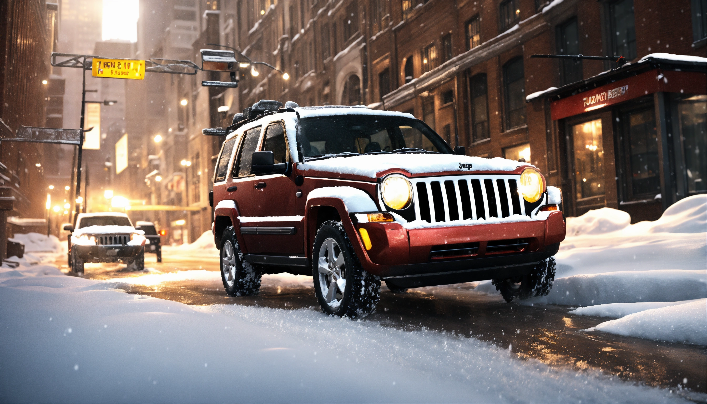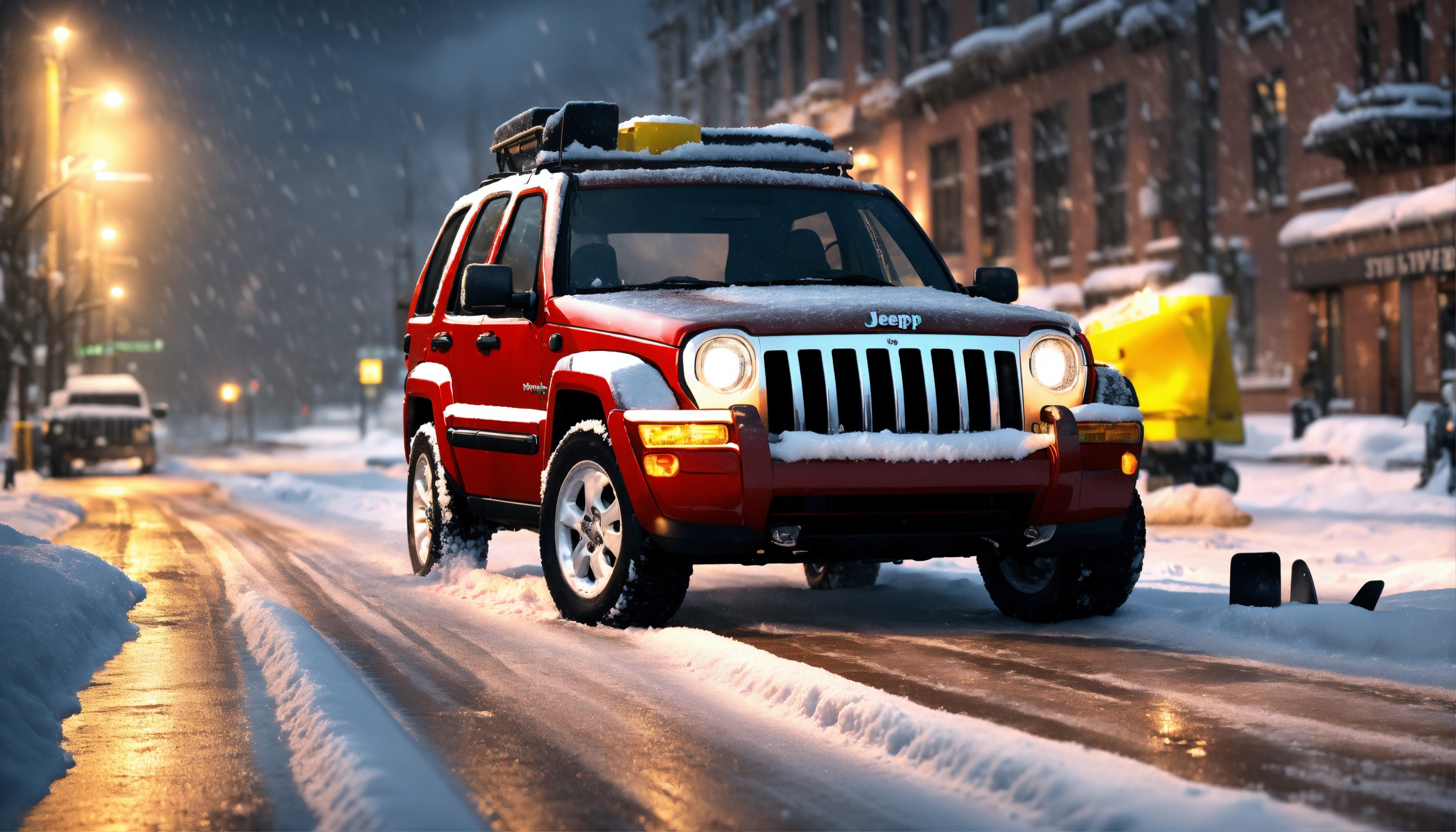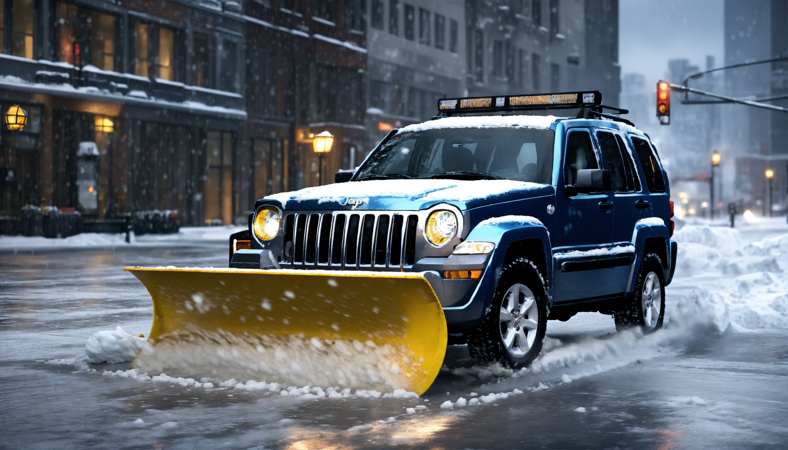 Jeep liberty 2006 with snow plow in front on it