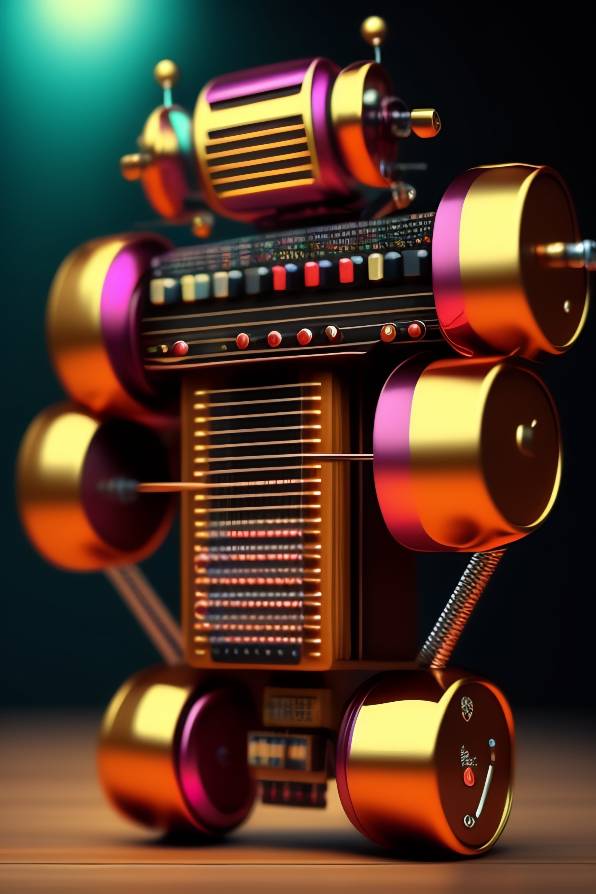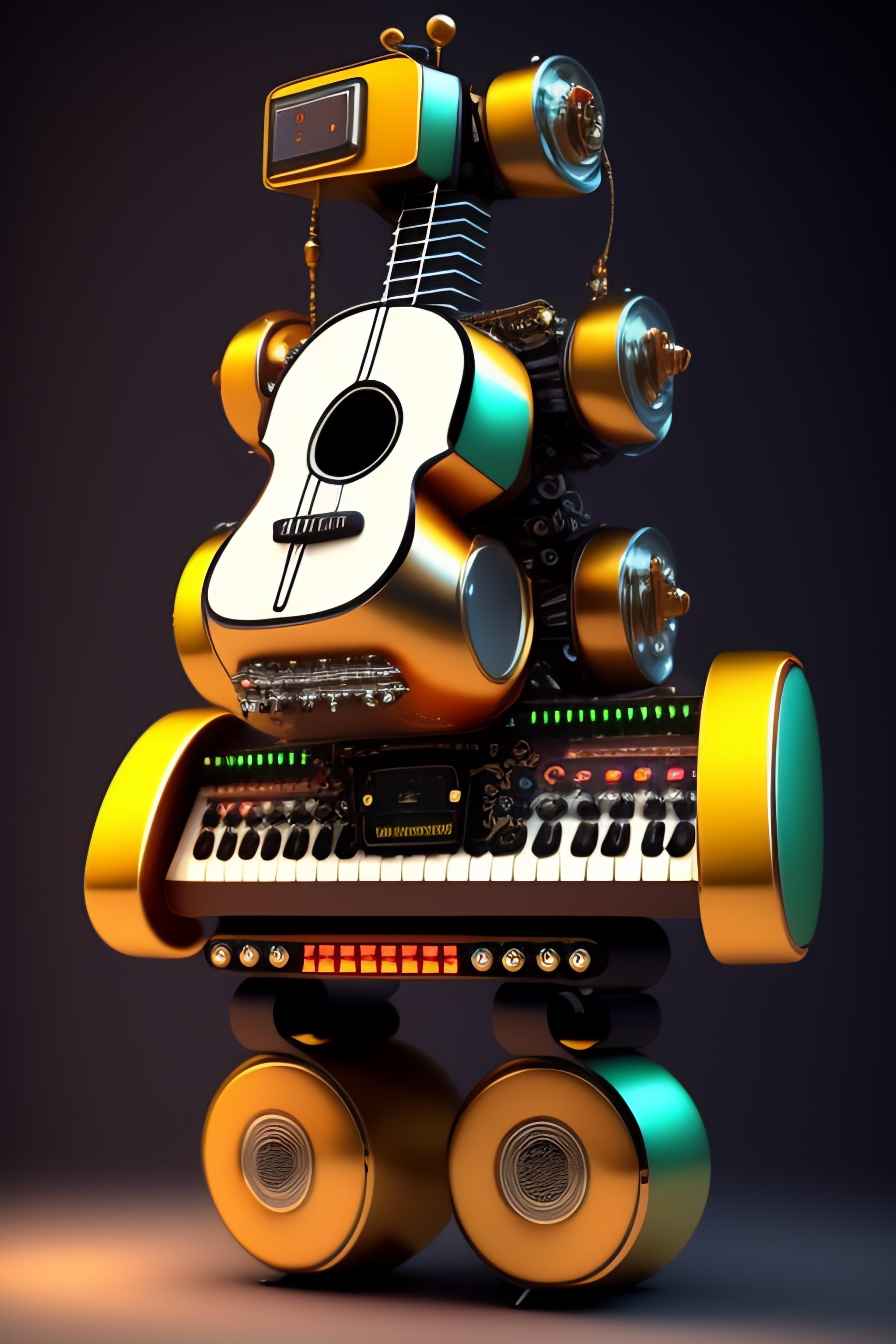 A musicpunk robot made entirely out of music instruments