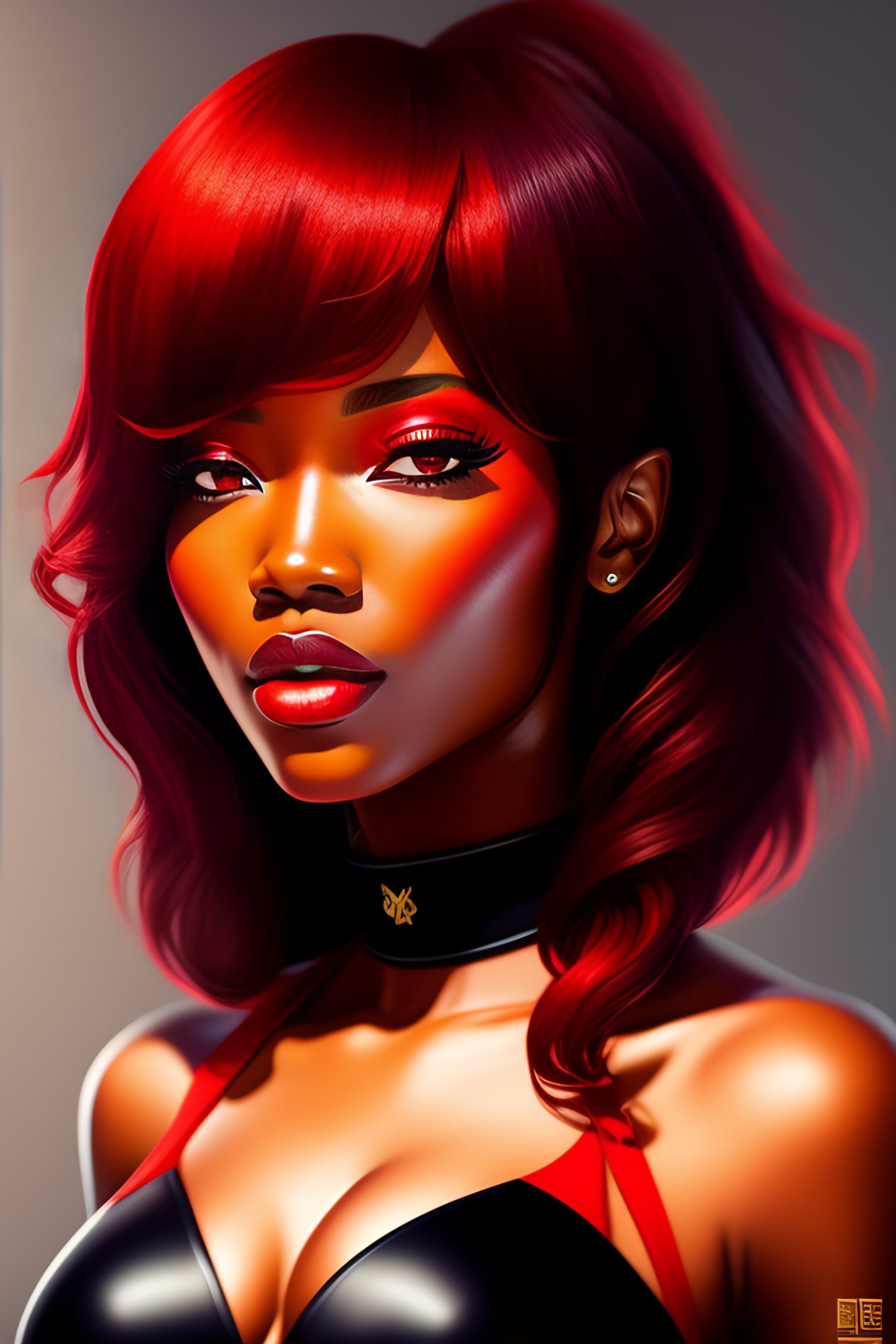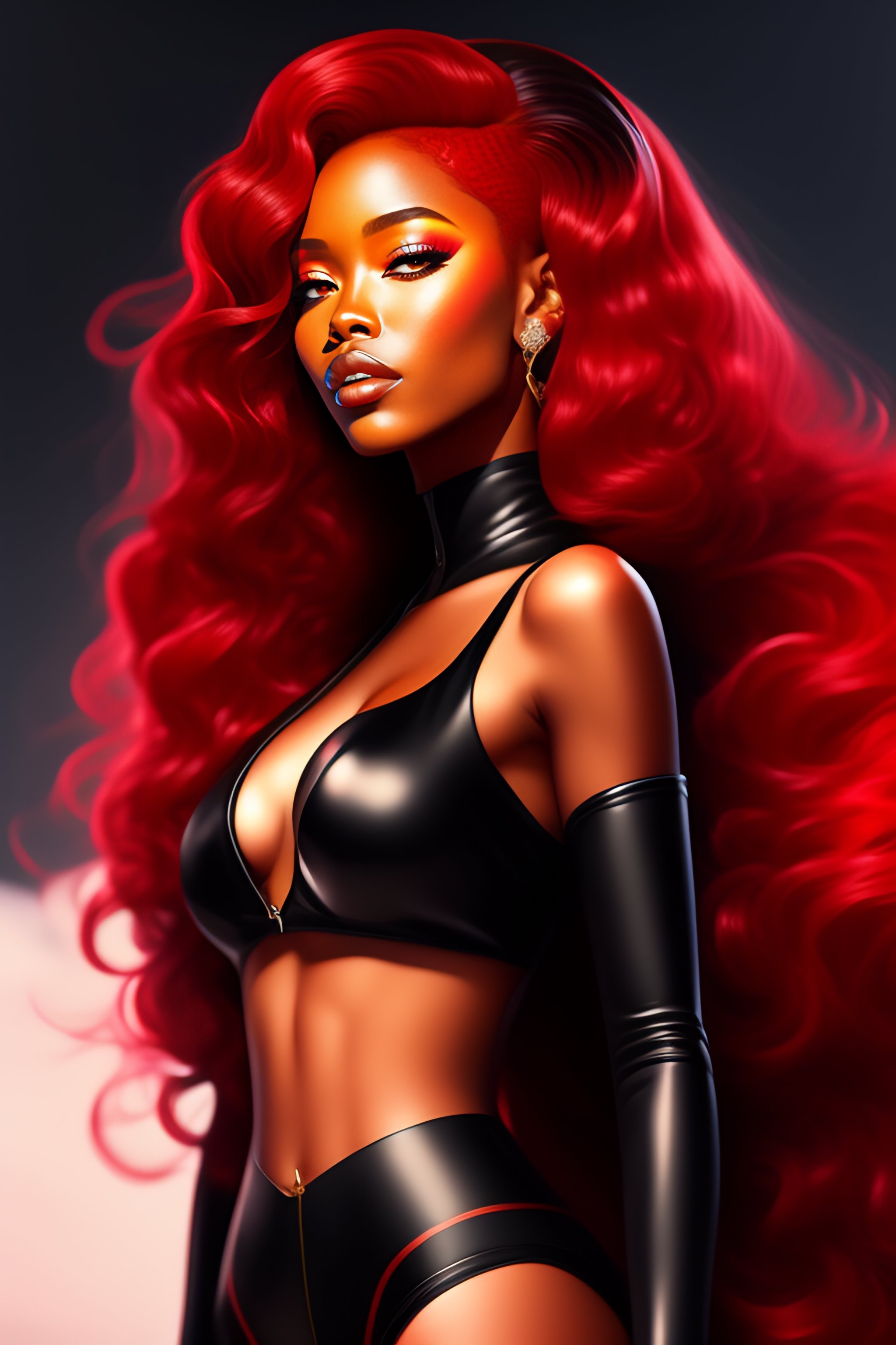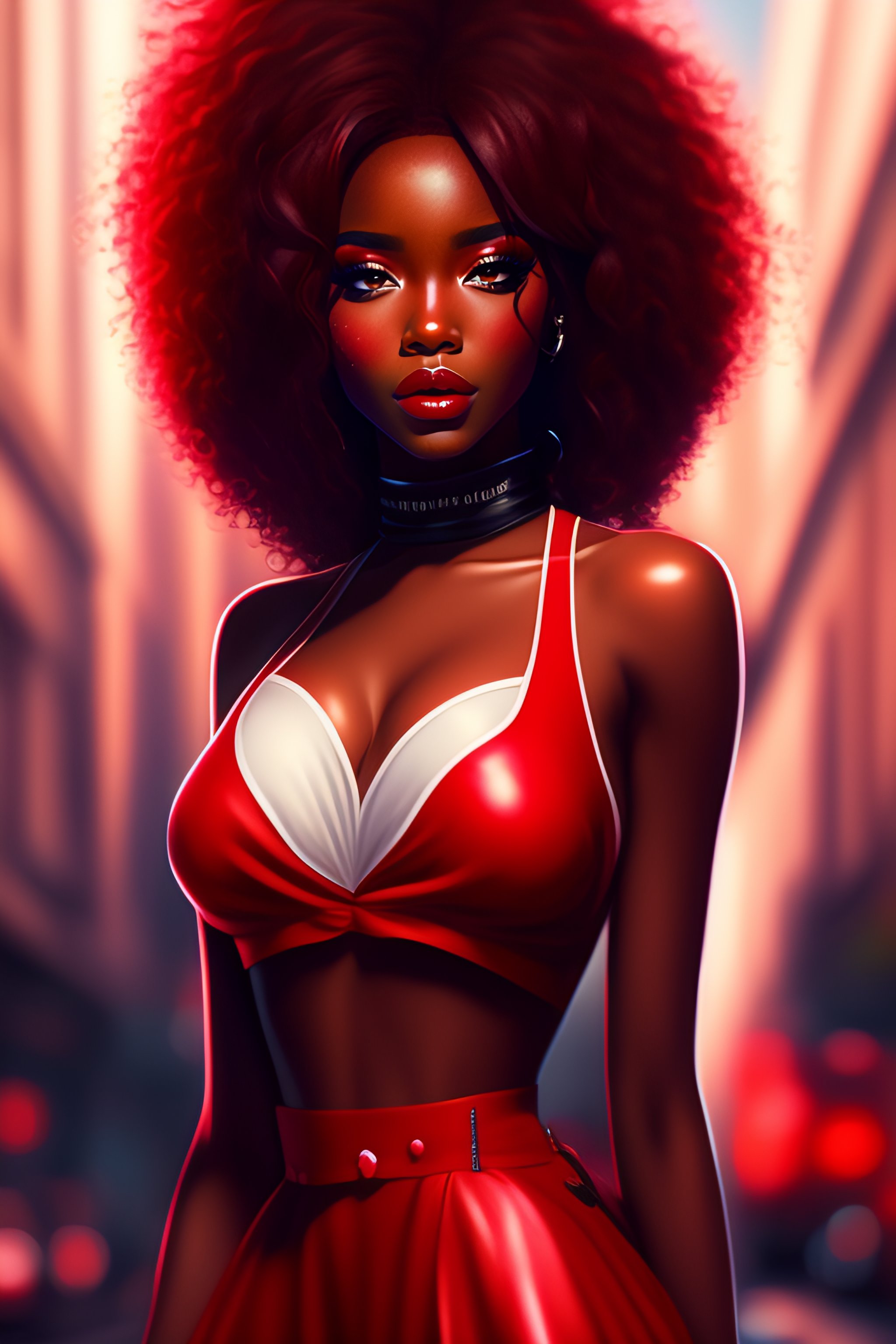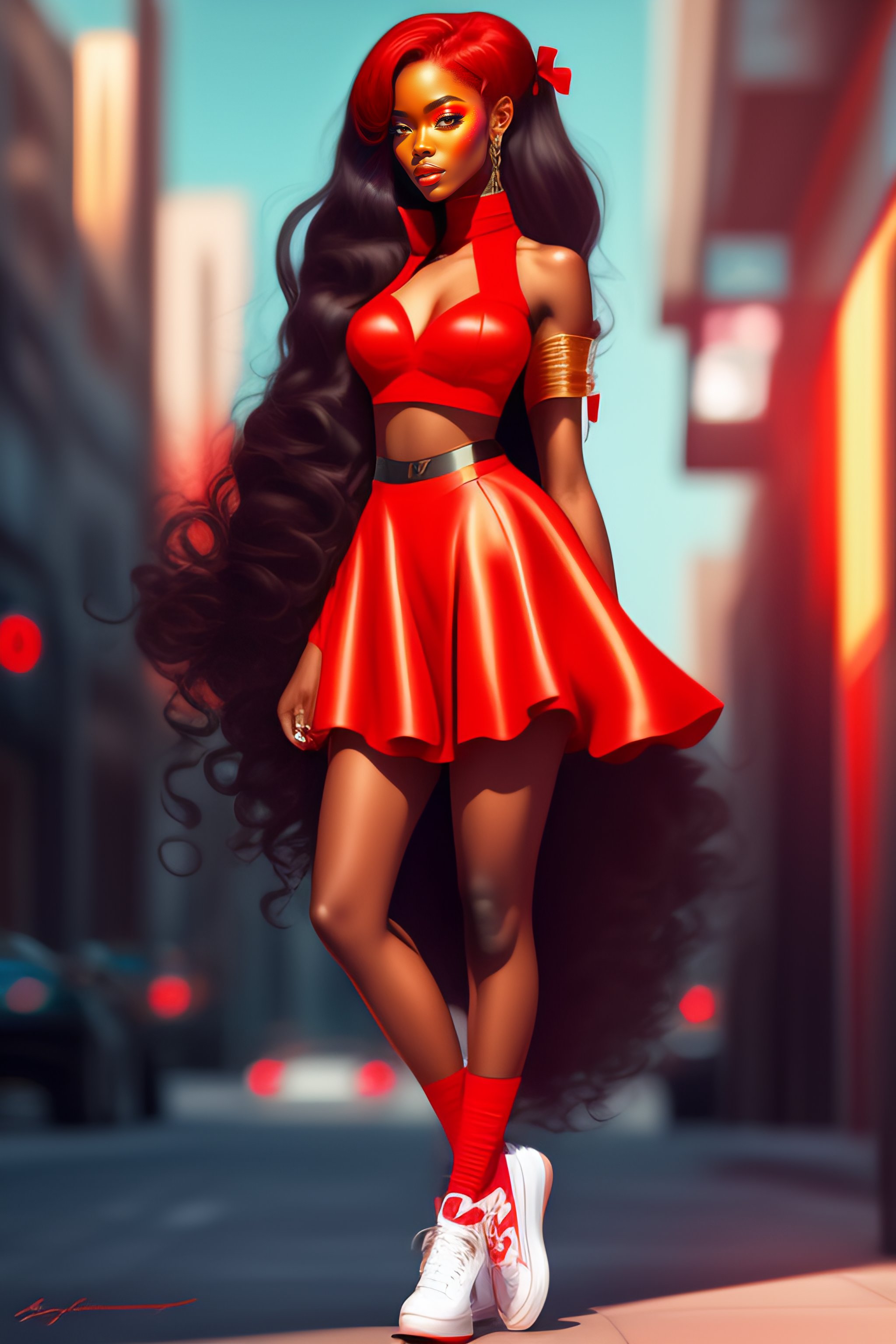 Full body anime style black model girl red hair picture painting, realistic detailes, 2d illustration, glamour, fashion style, 8k