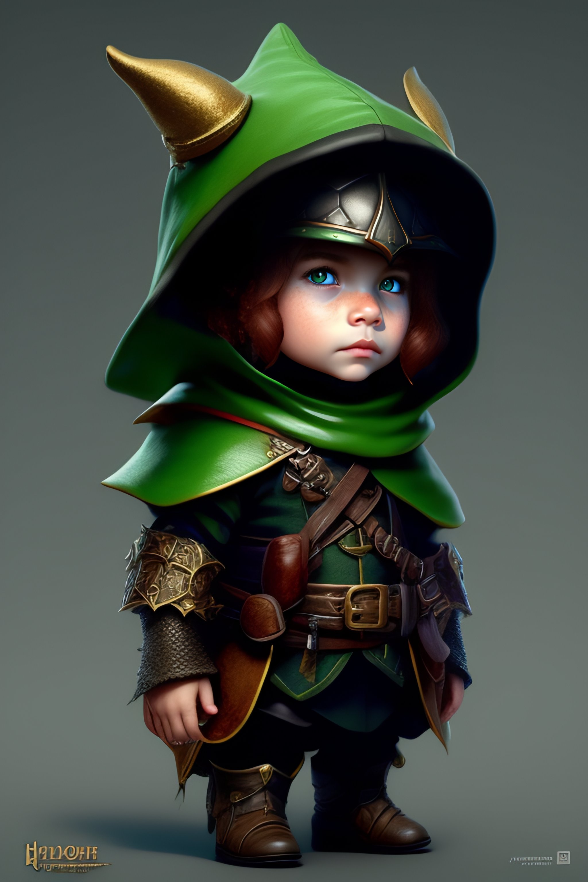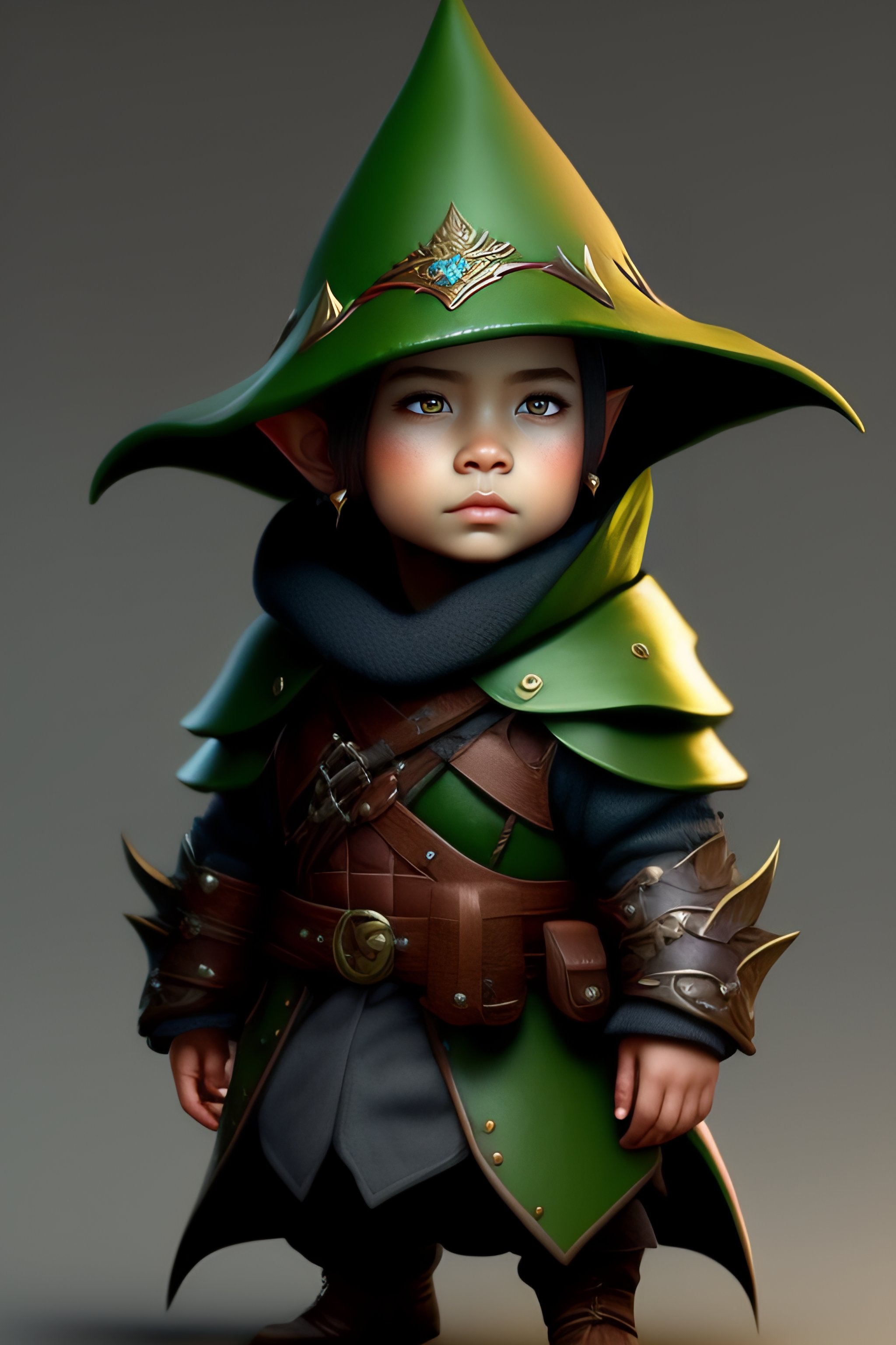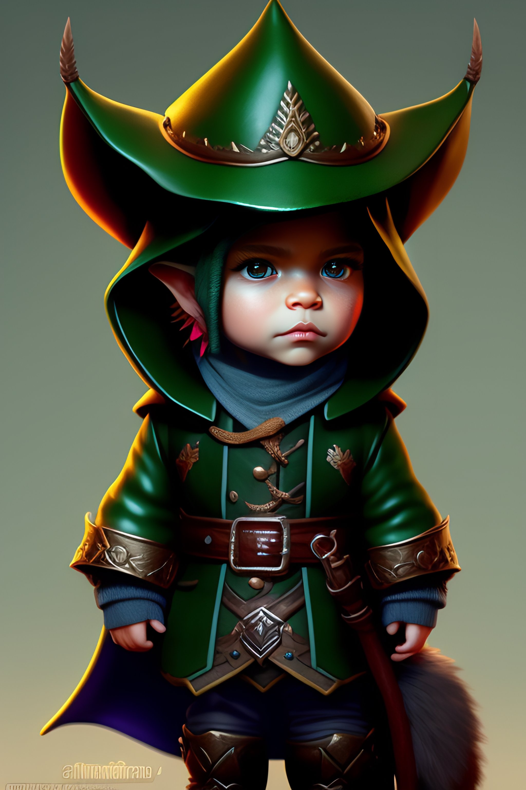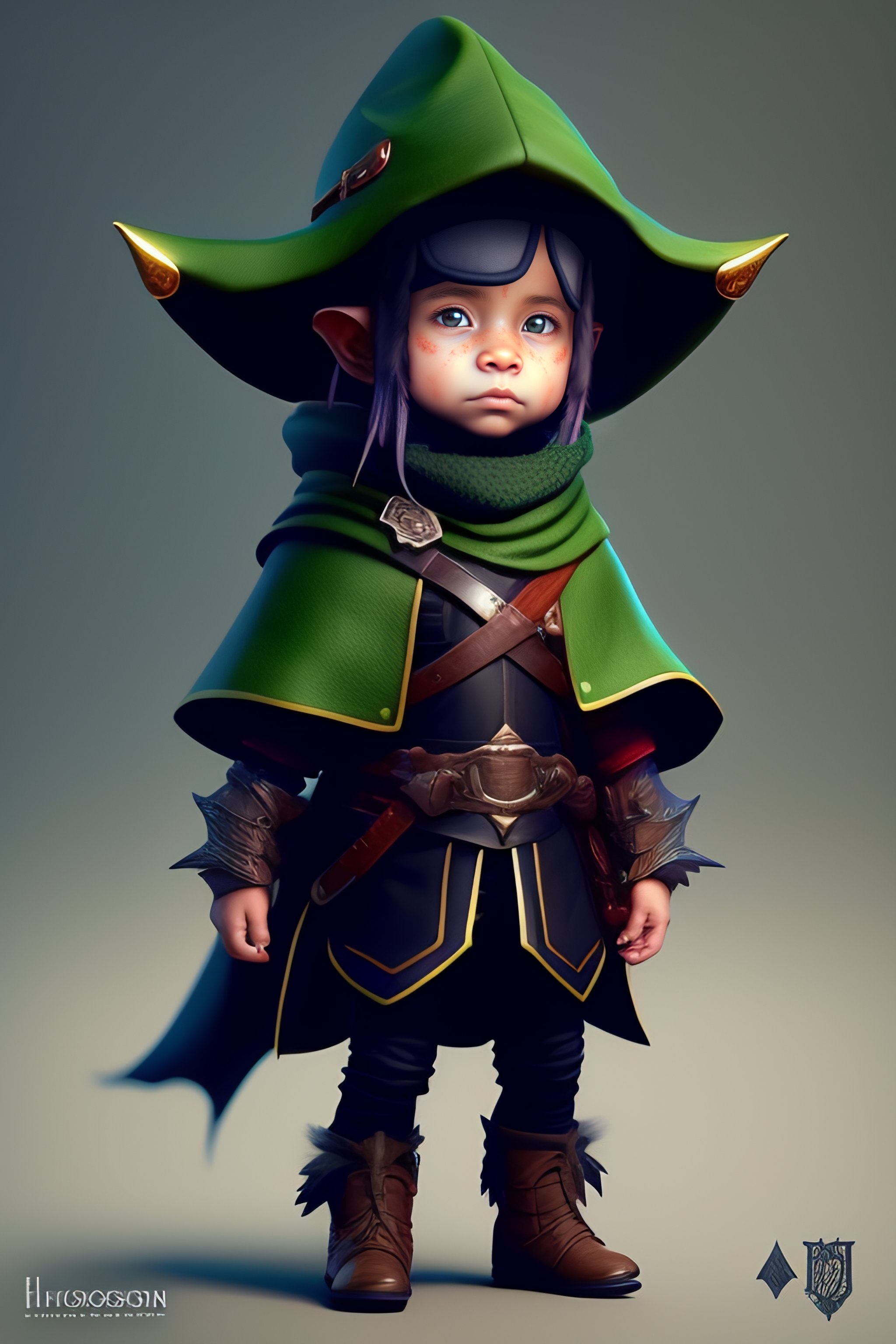 Cute tiny goblin girl wearing hunter armor from bloodborne and a wizard hat, geeen skin, d&d, trending on artstation