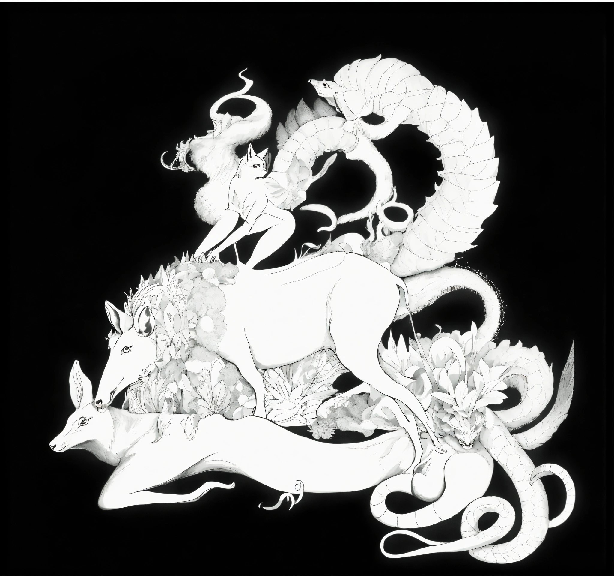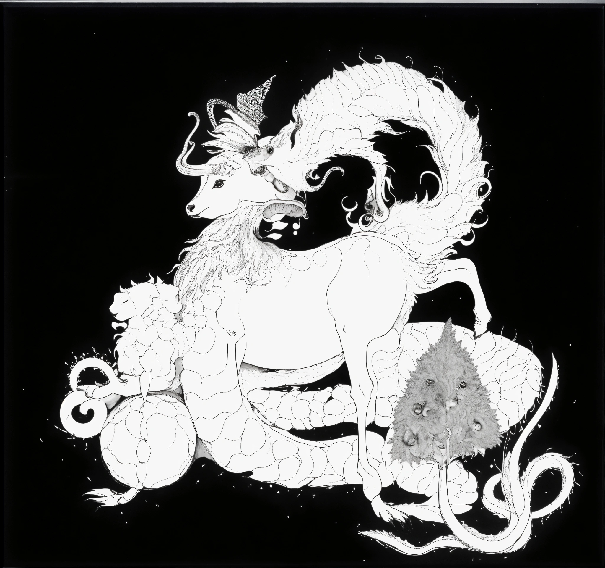 A surrealistic fantastical being assembled from different animal components, dwelling in an irrational reality of fusion and surrealism.